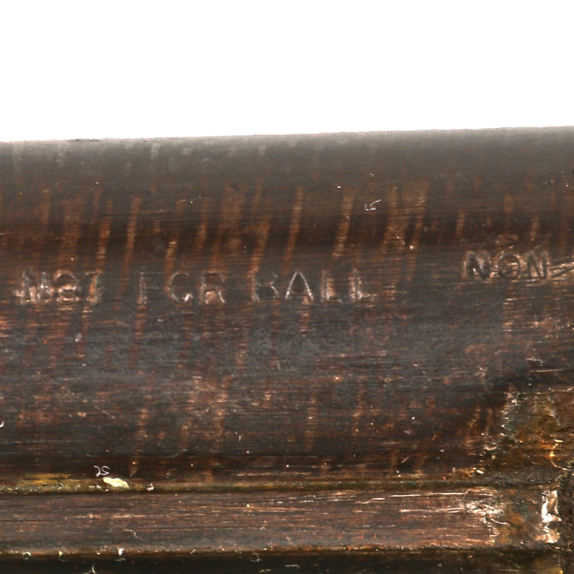 Removing the forestock allows the barrels to be removed from the receiver. This reveals the markings of both the E / L G / * in a "Crowned" oval on the end of both barrels, indicating manufacture and inspection in Liège, Belgium. We believe the shotgun to be a 16 gauge example, with 17.0 / 17.0 on one barrel and 17.0 on the other, which should be the bore measurement in millimeters, which we have confirmed with a caliper. This indicates that it is chambered for 16 bore / gauge shells, and the NOT FOR BALL - NON POUR BALLE indicates that the bore is "choked", so using a 16 gauge ball would destroy the barrel, and be very dangerous. The use of a "choke" in the barrel was intended to help with the spread of shot, and came into use during the last decade of so of the 19th century.