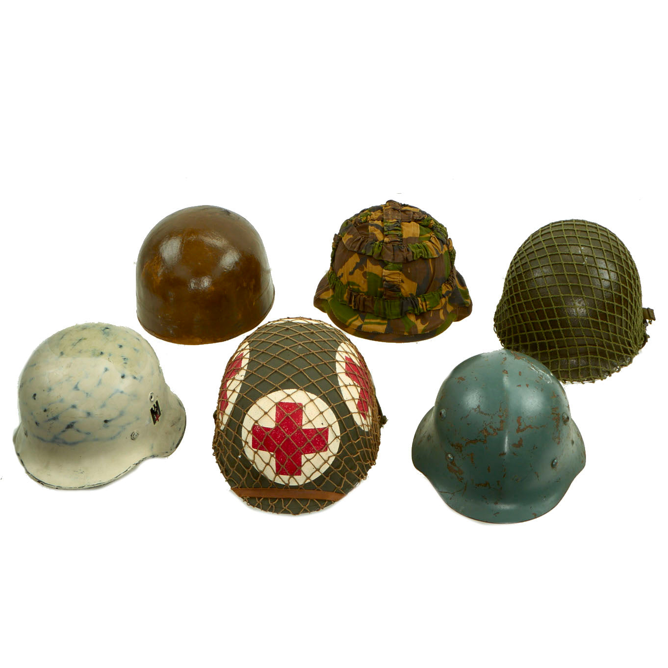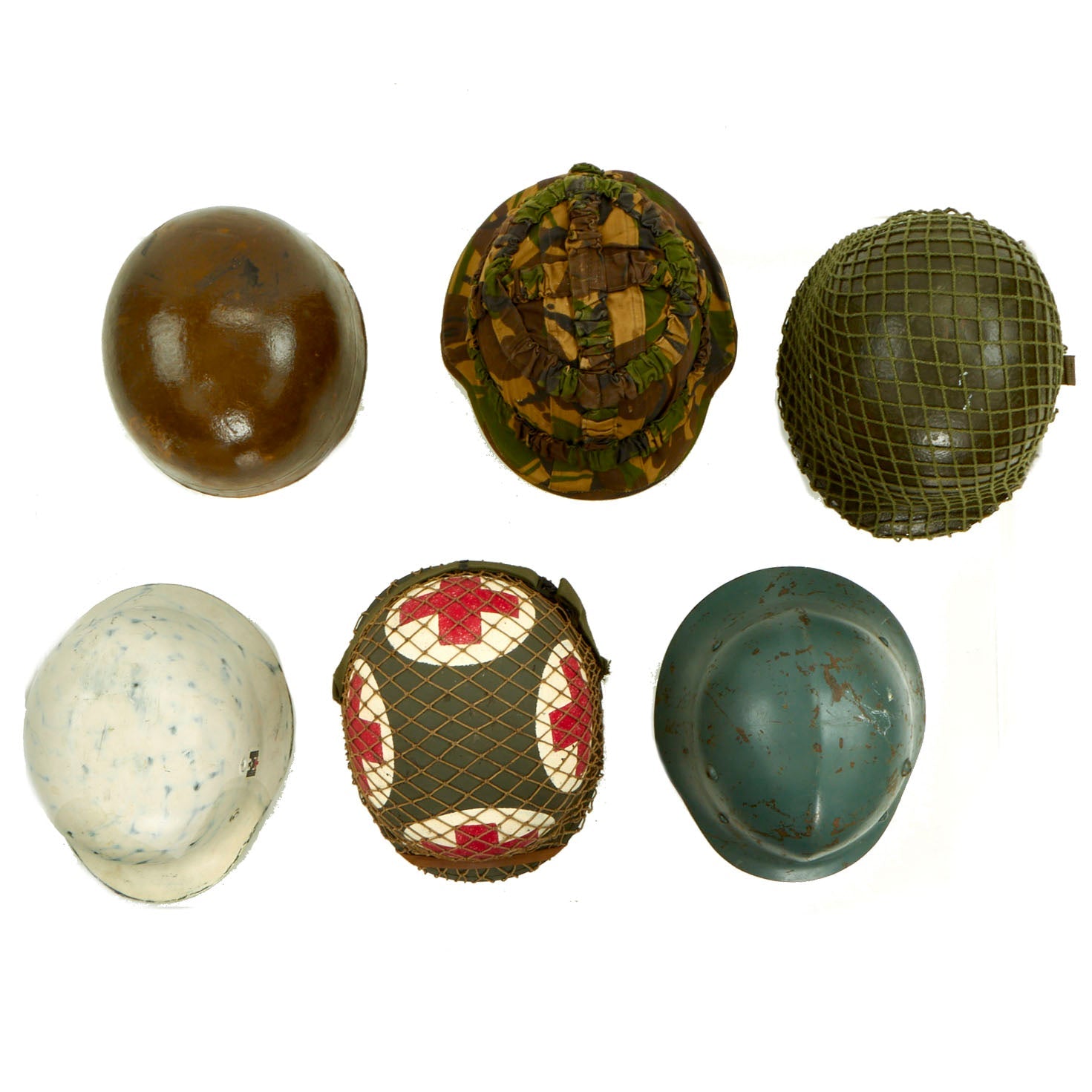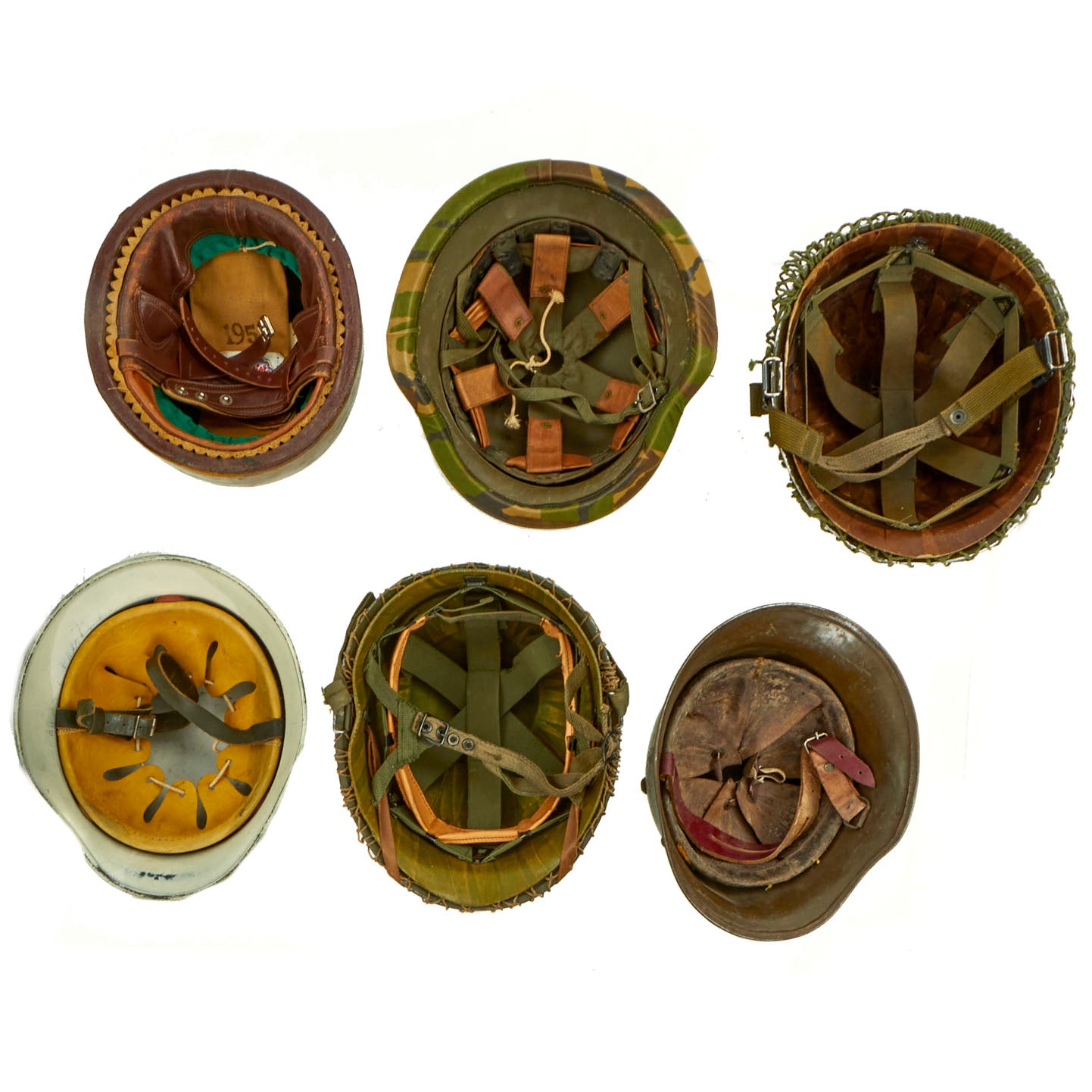 Original Items: Only One Set Available. This is a very nice collection of helmets from various time periods and countries. All helmets are complete with liners and are offered in great condition. This is a wonderful lot to pick up if you are looking to either start collecting helmets or are just wanting to add these really nice examples to your already existing ones.