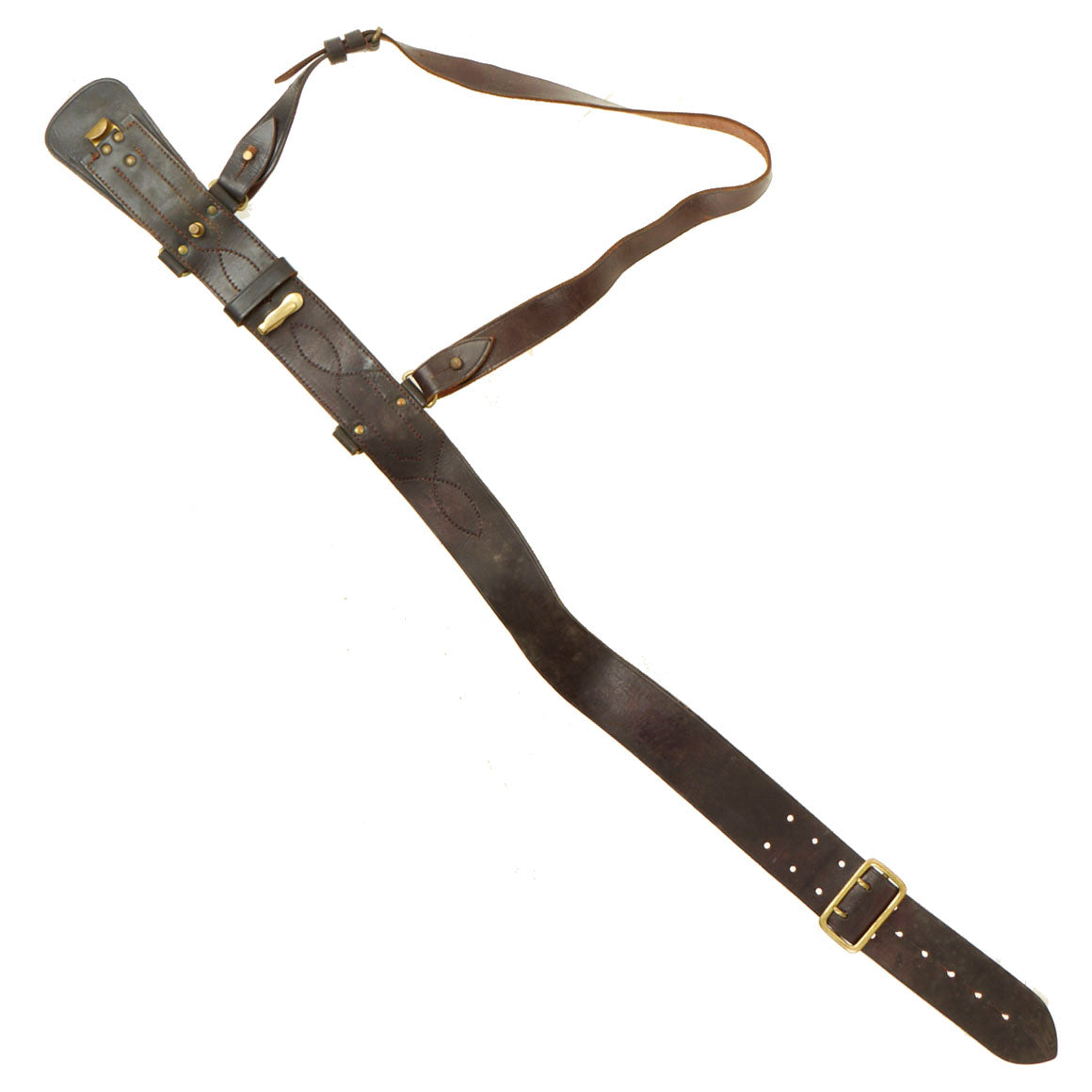 Browne came up with the idea of wearing a second belt which went over his right shoulder to hold the scabbard steady. This would hook into a waist belt with D-rings for attaching accessories. It also securely carried a pistol in a flap-holster on his right hip and included a binocular case with a neck-strap. Other officers began wearing a similar rig and eventually it became part of the standard uniform. During the Boer War, it was copied by other troops and eventually became standard issue.