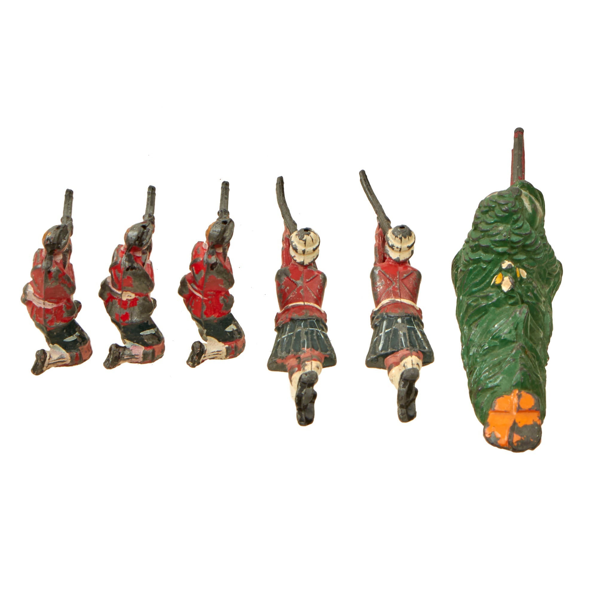 - Five Victorian British soldiers, likely Highlanders based on their kilts, holding and aiming rifles in different positions, on one knee and laying down.