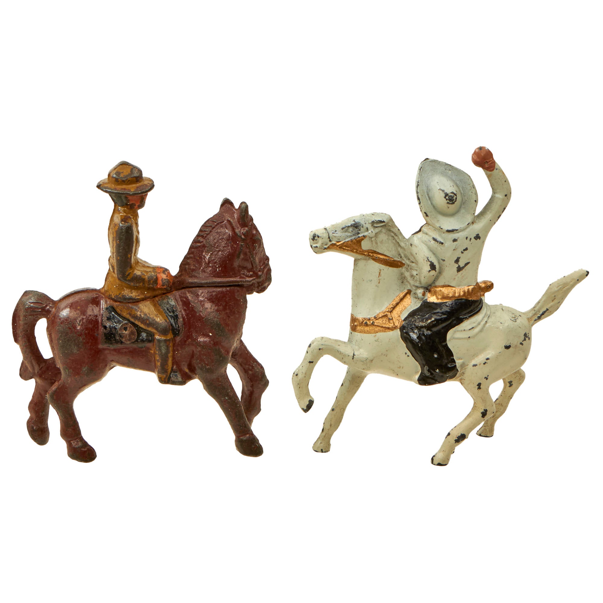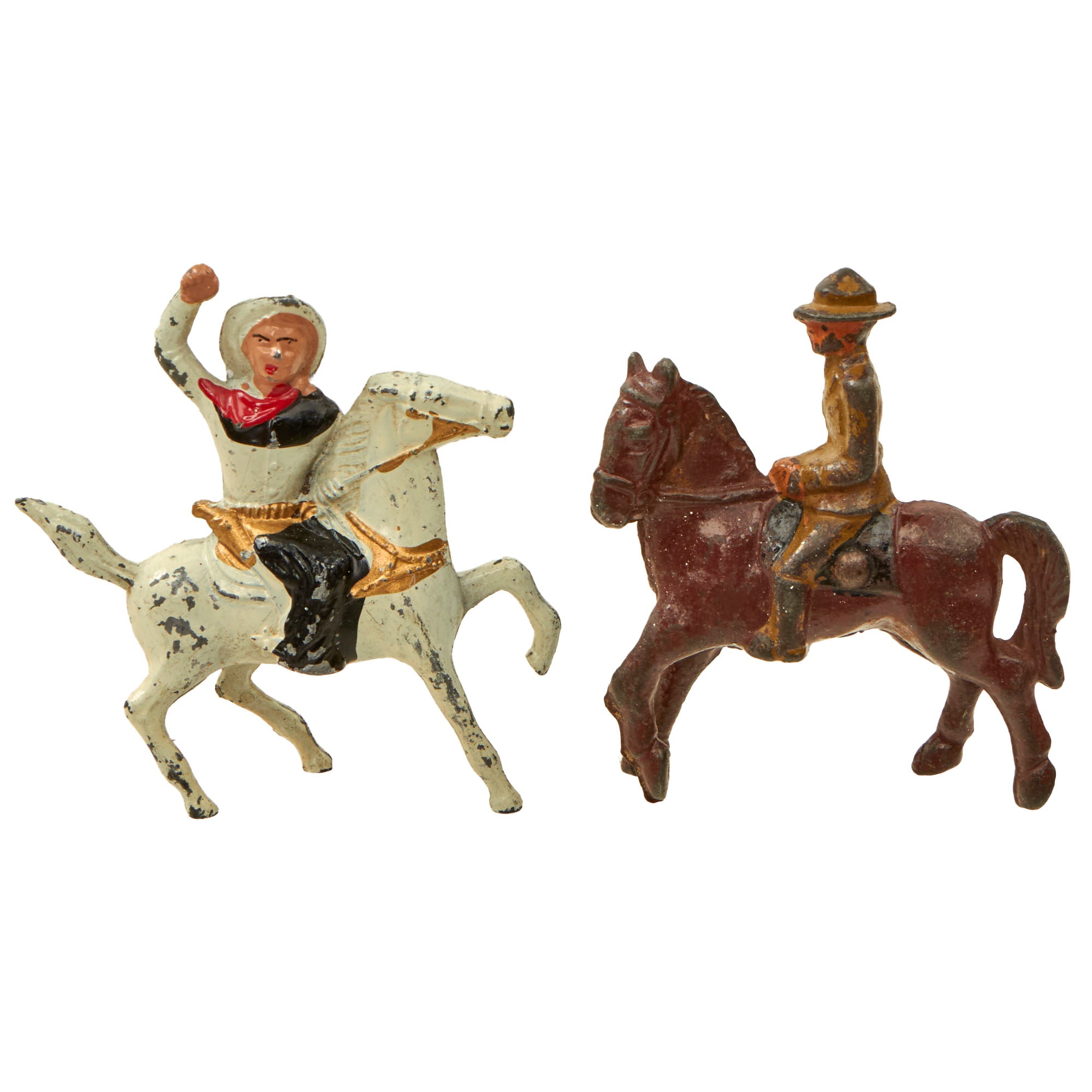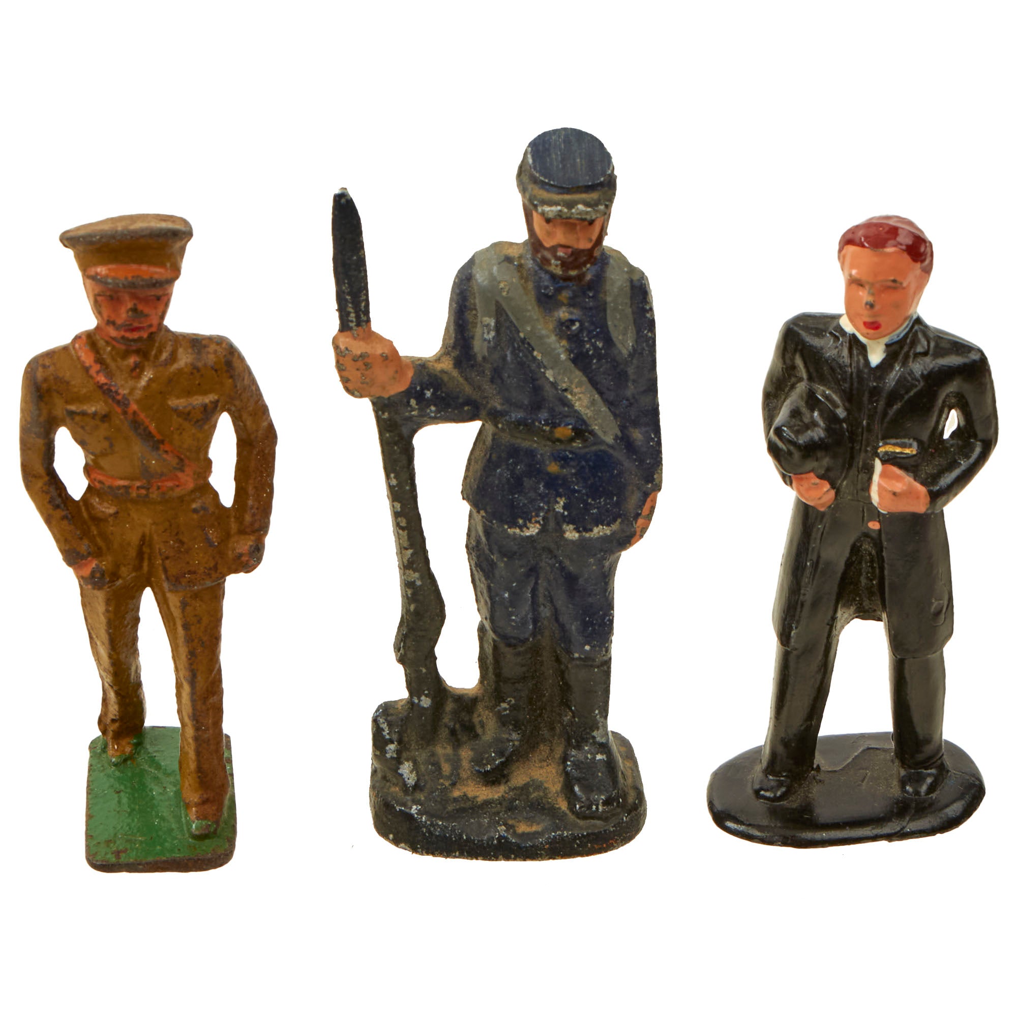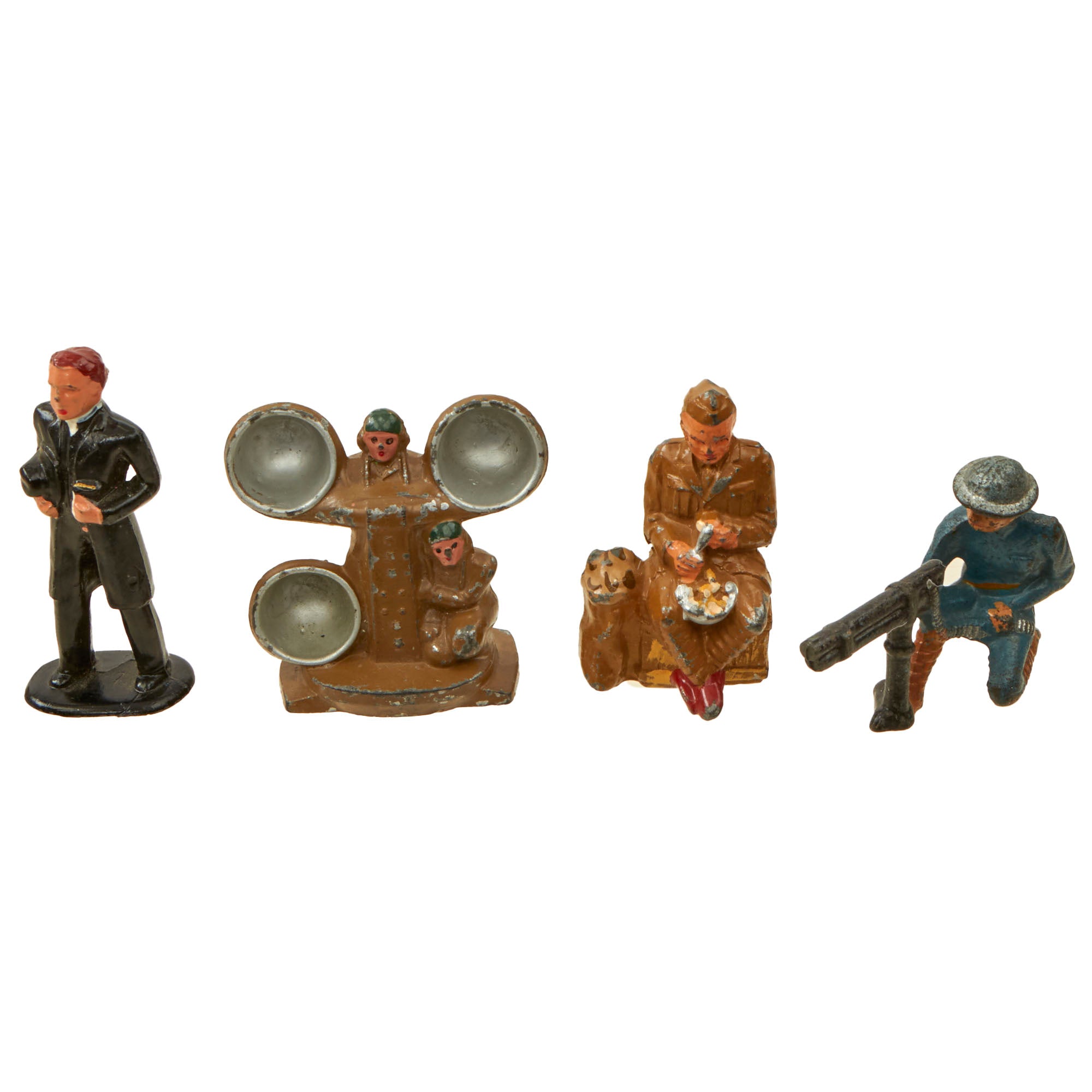 Original Items. Only One Available. This is a fantastic collection of 25 WWI Era toys depicting American soldiers in various positions and situations, with a few British soldiers mixed in as well. There’s also a single Civil War soldier that was mixed in. Most of the toys are of the well-known Barclay Manoil maker but there may be a few outliers. The figures are all about 3 inches tall but they vary depending on the position and context. The set also comes with a toy “mess hall”. Many of the toys have heavy paint loss, so please take a close look at each example.