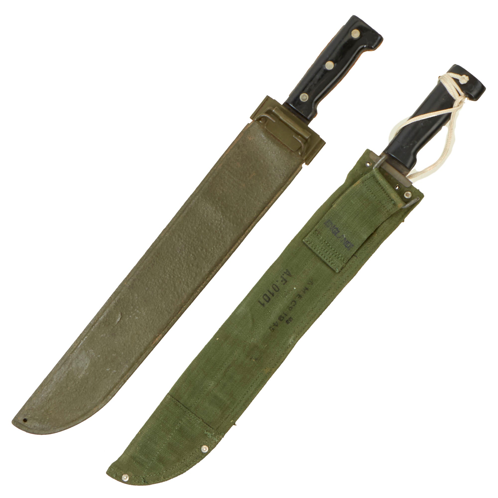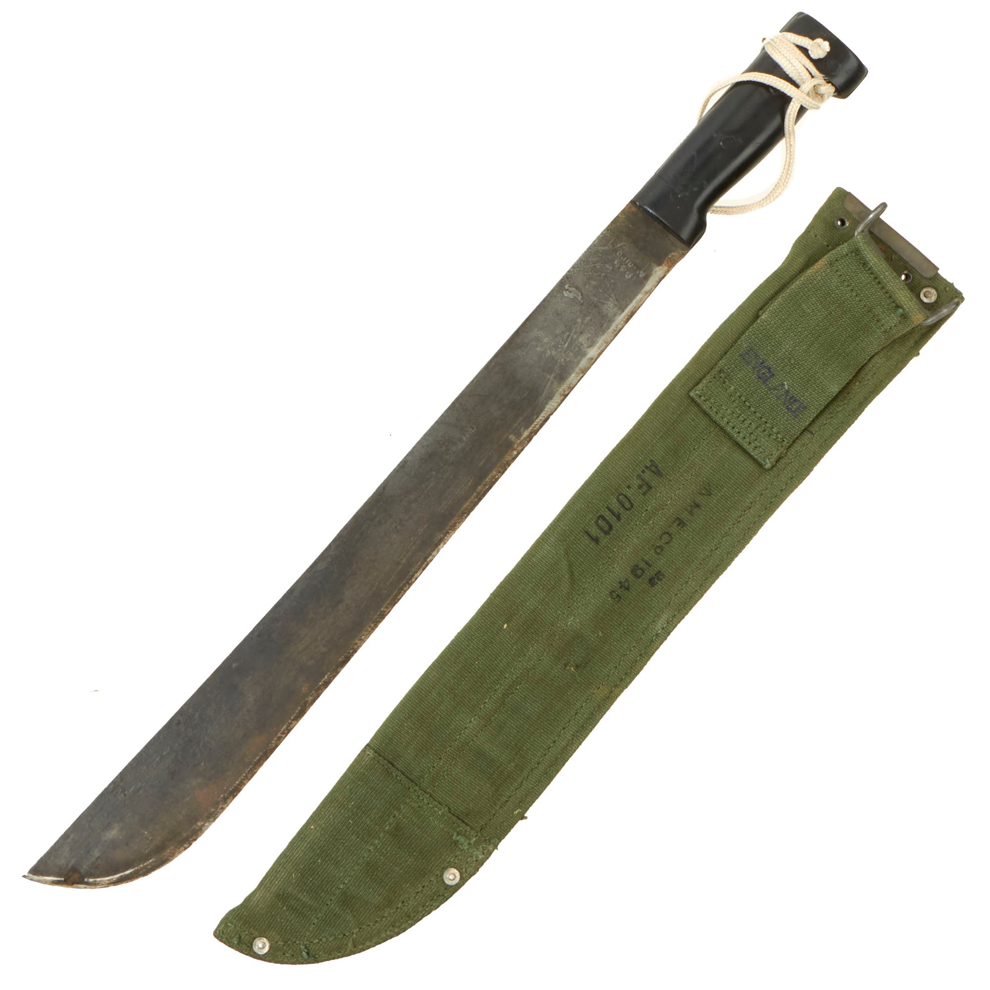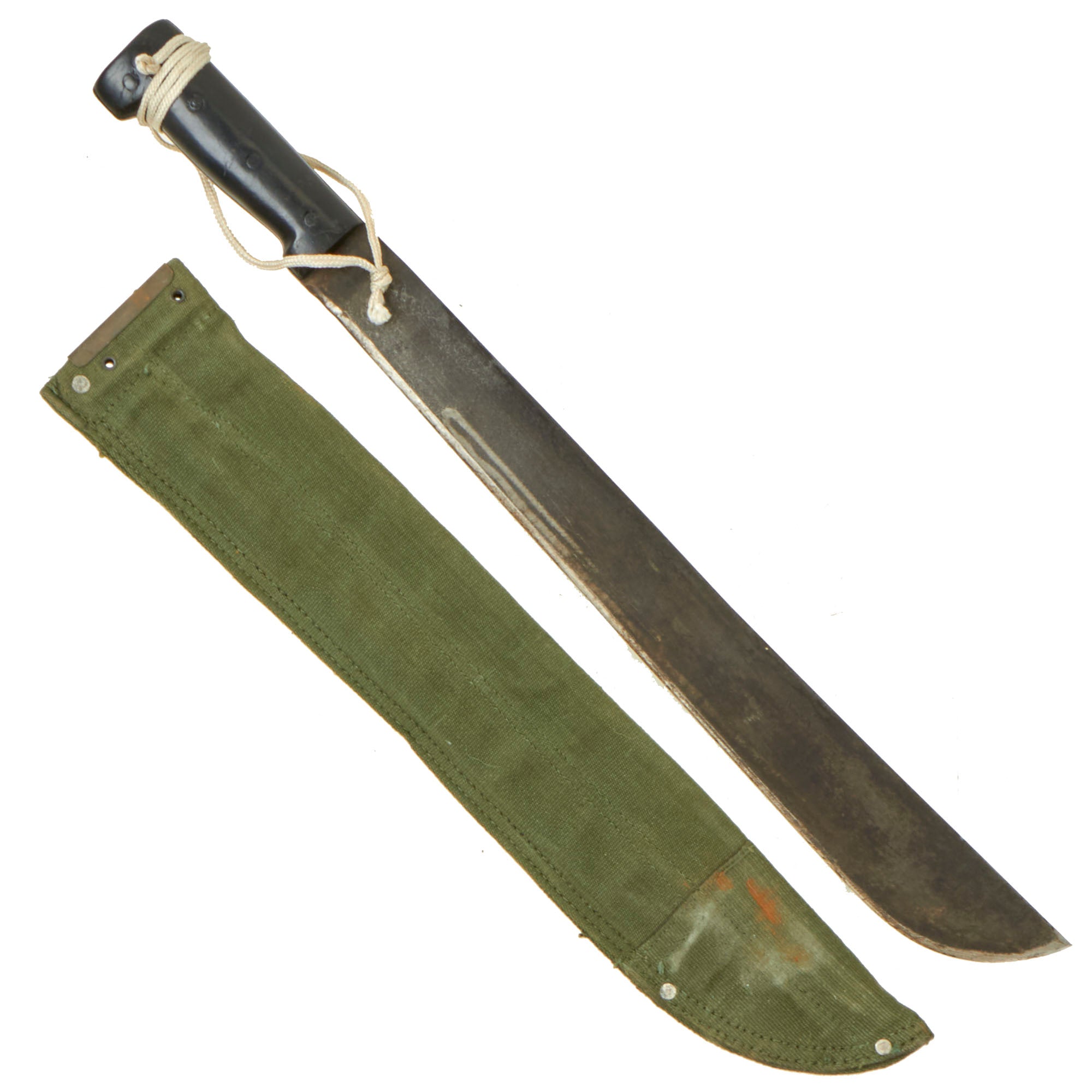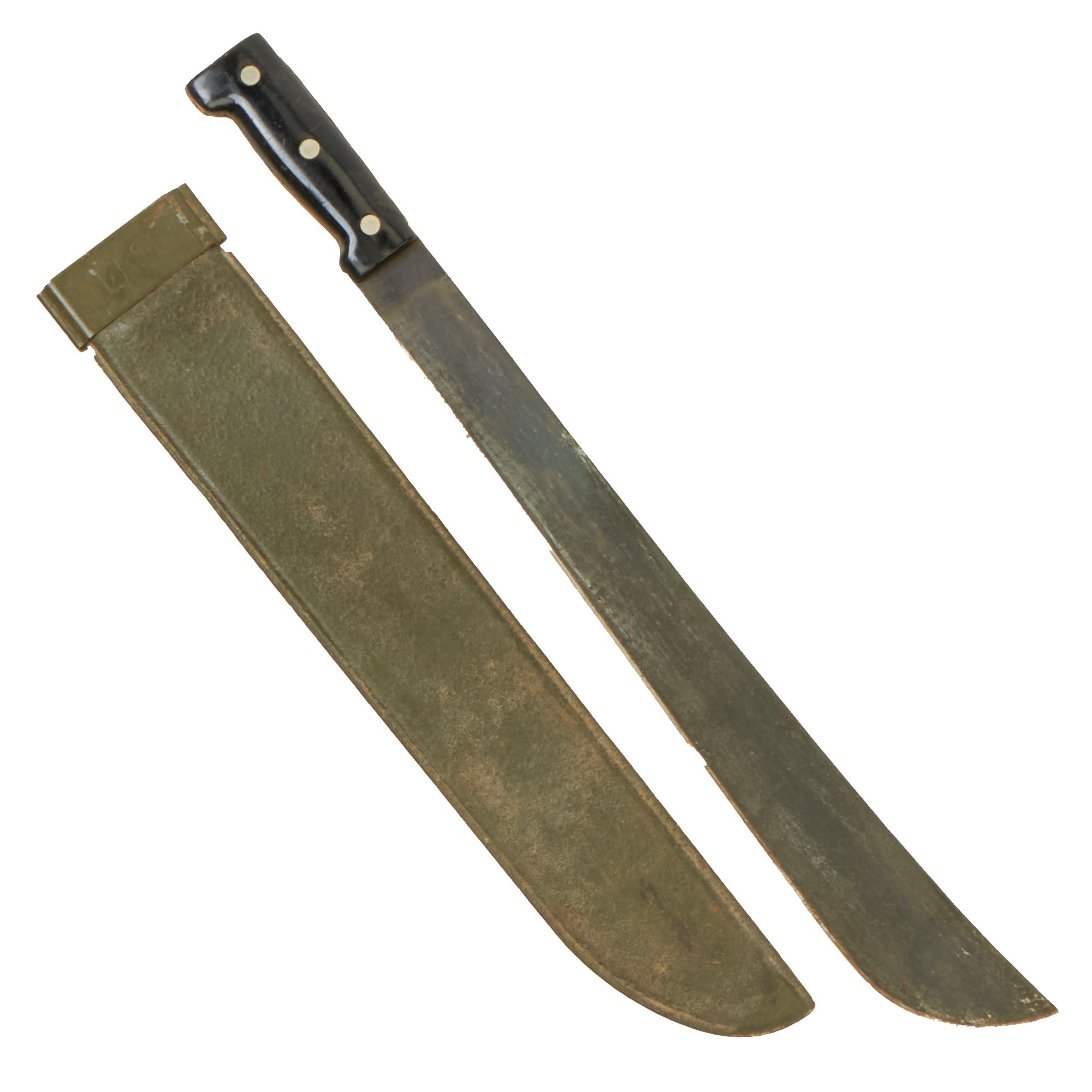 Original Items: Only One Lot of 2 Available. This is a fantastic pair of a rather important edged weapon in the toolbox of the WWII soldier. One of the most famous knife types in the world, the machete, which was quite capable of cutting its way through the dense jungles of Burma and many other jungle battlefields during WWII. Its lengthy blade could also deliver a devastating blow to an enemy when the need arose.