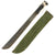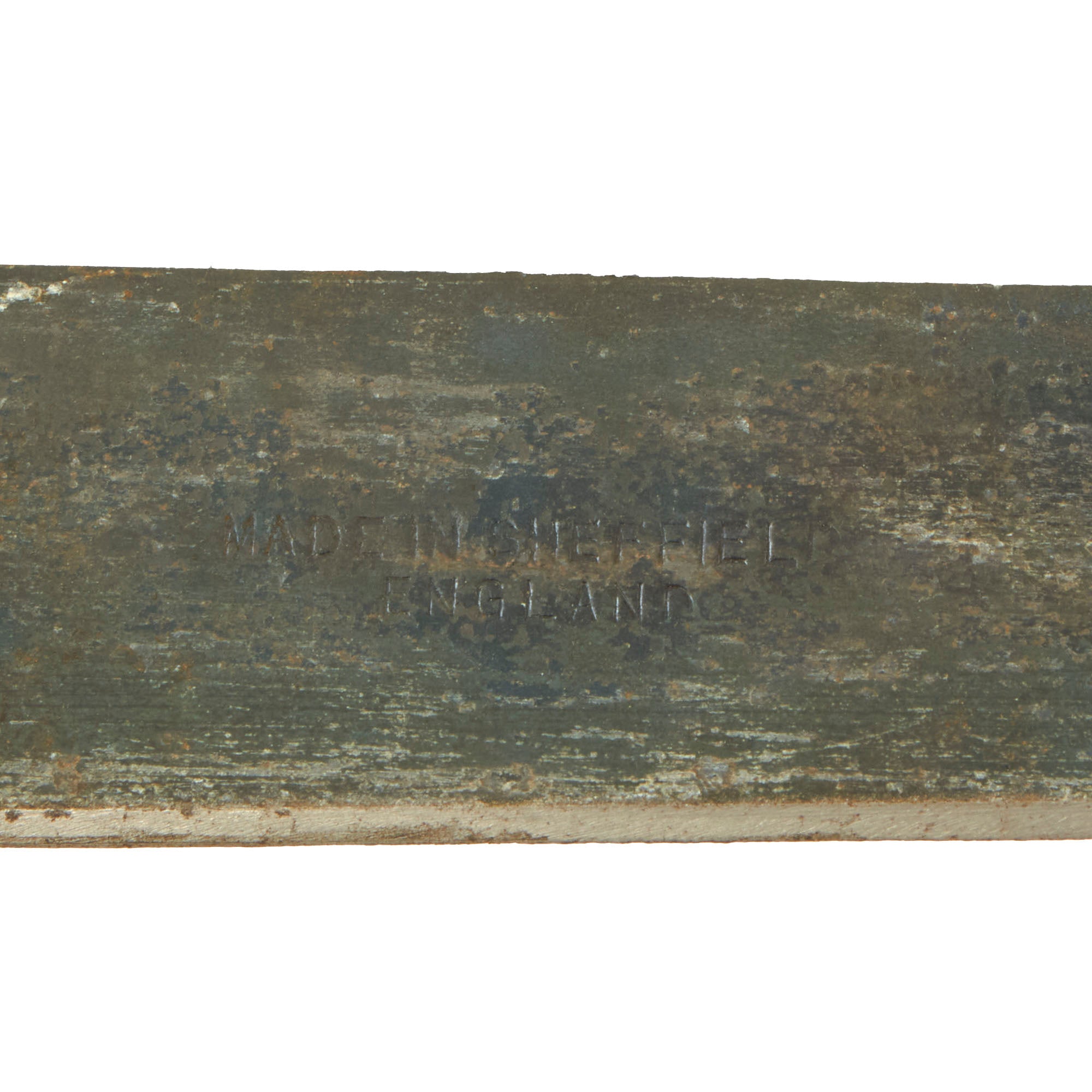 Both machetes have blades that measure approximately 17 inches. They both have very faint Sheffield, England markings on the blades. The one machete is paired with an American made Victory PLastics scabbard. This was not uncommon as soldiers/Marines would often acquire items or trade for them, so this very well could have been American carried.