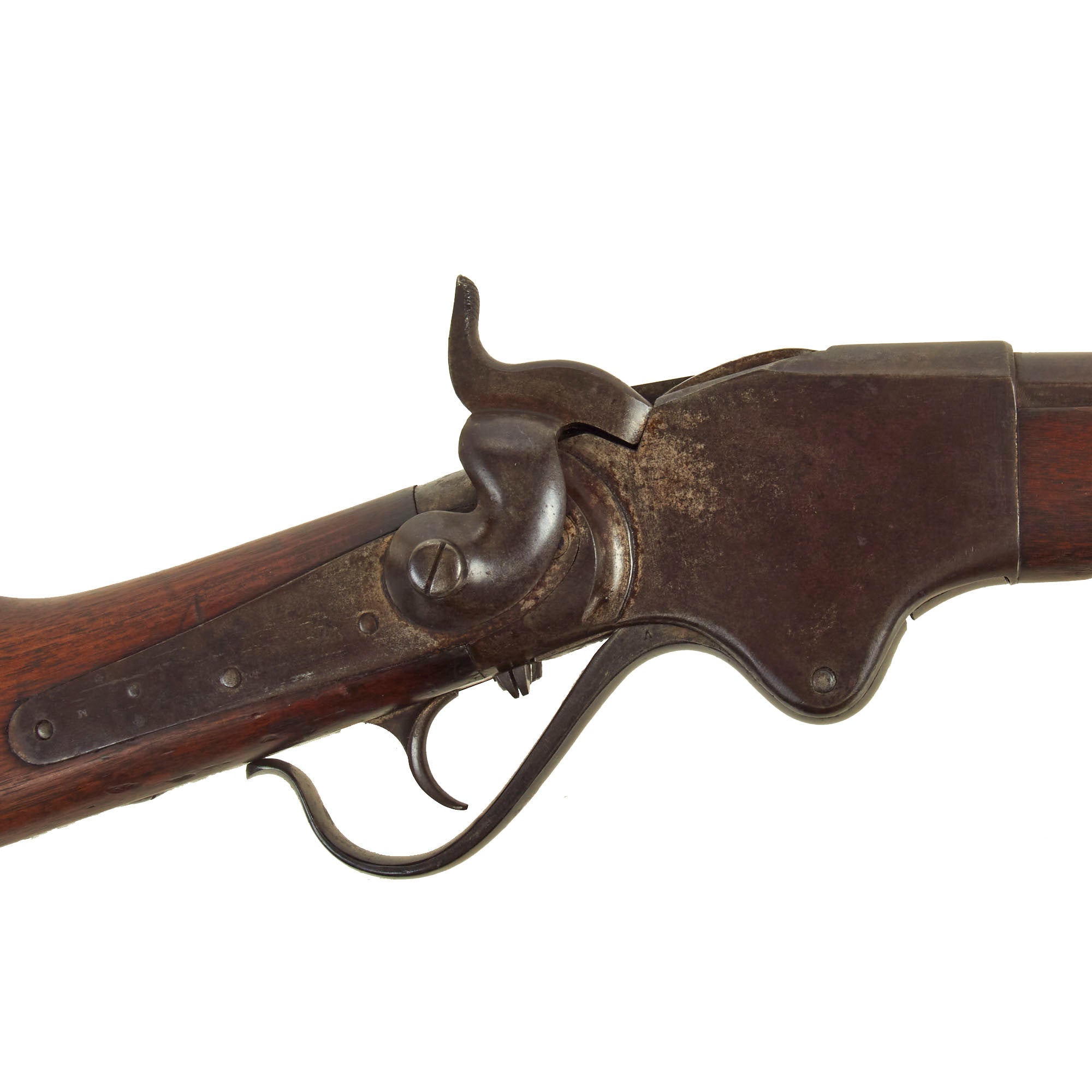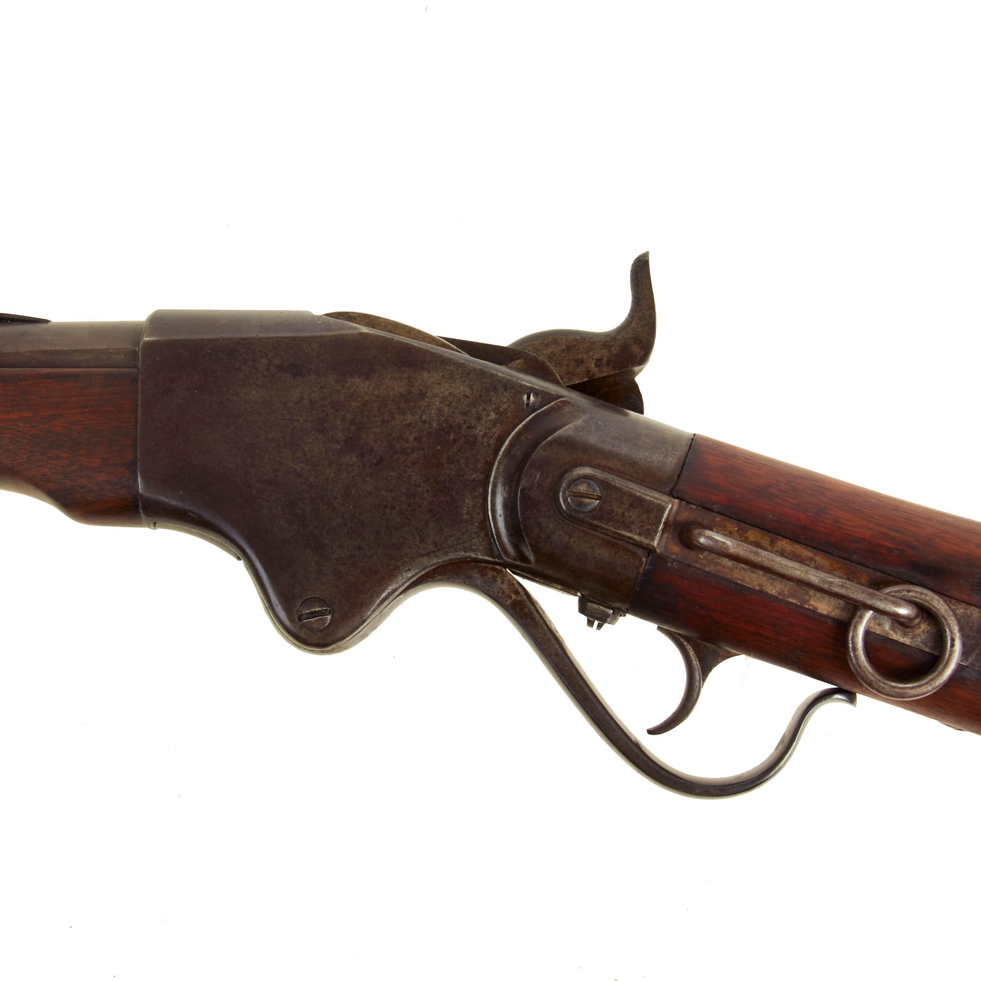 Original Item: Only One Available. This is a very good condition genuine Burnside Rifle Company Model 1865 Spencer Repeating Carbine, one of the best we have seen in some time. It shows honest wear consistent with service, and looks to have been well taken care of. On June 27, 1864, the Burnside Rifle Co. entered into a contract with the Ordnance Dept. to manufacture 30,500 .52-cal. M1860 Spencer carbines with deliveries completed by Aug. 31, 1865. With the changes directed to be made to the carbines, deliveries did not start until April 15, 1865, and they continued until the end of October, with a 30,496 M1865 Spencer carbines being delivered. Six additional carbines were delivered as samples, prototypes and models.
