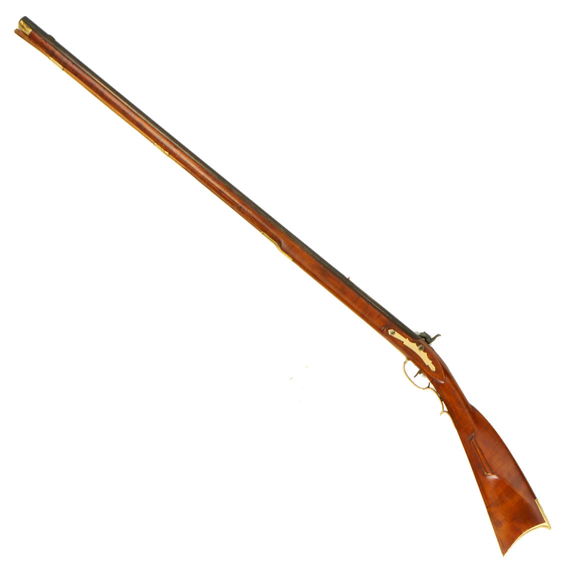 Original Item: Only One Available. Just purchased at a recent military auction! Here is a very nice octagonal barreled "Pennsylvania" style rifle, often referred to as a "Kentucky" Rifle. The design developed in Pennsylvania, and then spread down the Ohio River Valley to Kentucky, where it was very popular. The stock of this example is in fact just a bit more curved than typical, and gives it a lovely profile. It has an octagonal barrel in .50" caliber, which shows much use. It may have originally been a smaller caliber and bored out when the rifling became worn to make it a very nice fowling piece.