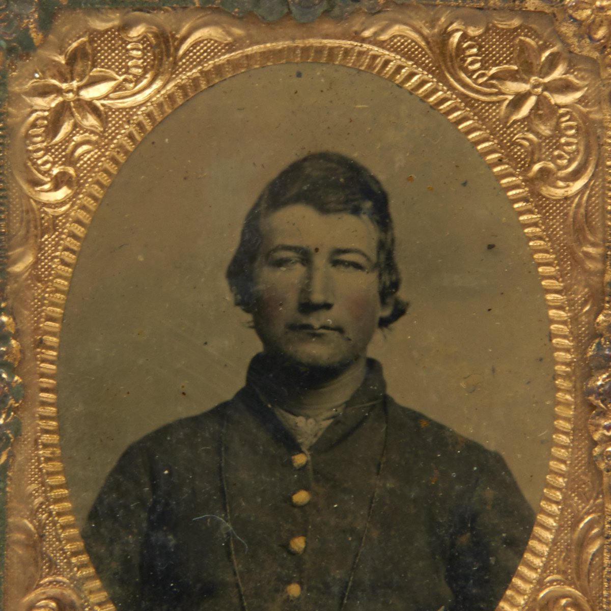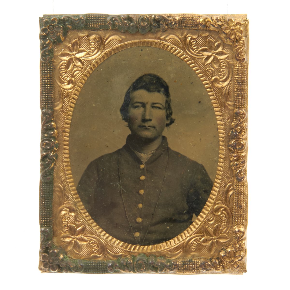 Also included is a sixth plate tintype of Blaisdell in Uniform. This Civil War cased "Sixth Plate" tin type portrait measures 2.75 x 3.25 inch. The tintype enjoys excellent surfaces with only slight emulsion crazing that do not interfere with image is viewed head on. Overall very nice condition.