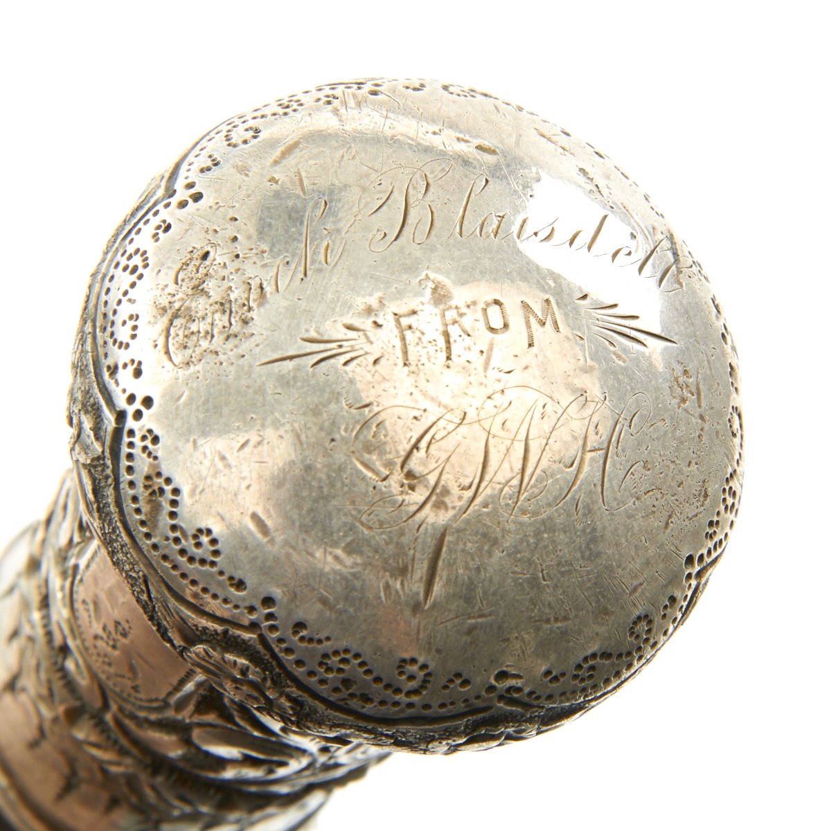 Original Item: One-of-a-kind. This is a wonderful Civil War era Silver topped presentation walking cane with wood haft that measures 34 inches in total length.The top of the can is engraved: