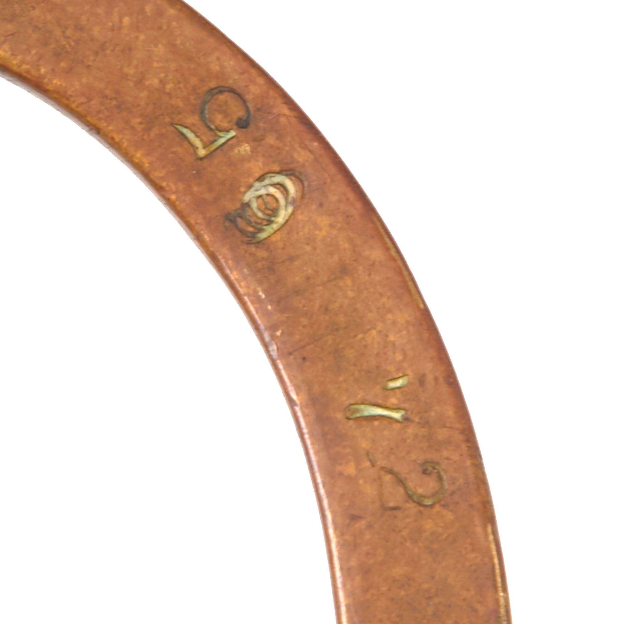 The saber comes complete with its original all steel scabbard with two hanging rings and the original black leather hanging straps attached to a brass hook belt hanger! The hanger is stamped R.I.A. for manufacture by Rock Island Arsenal. The scabbard does have some bends and dents from service, mostly towards the drag.