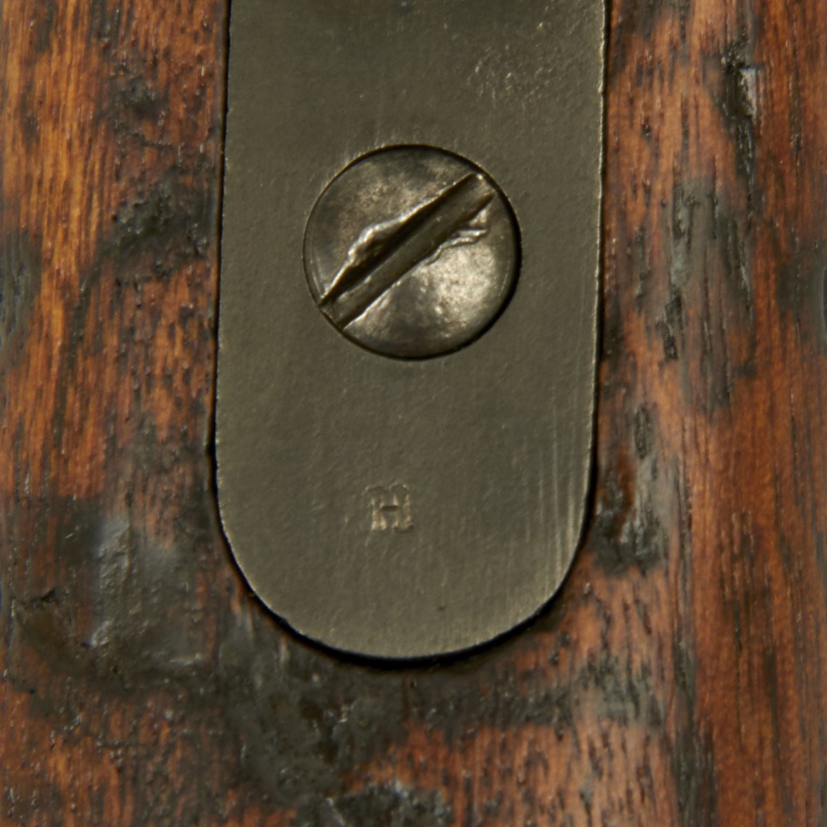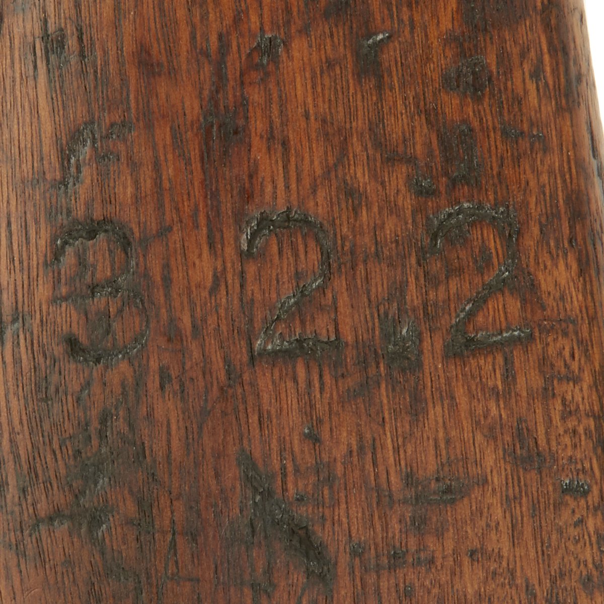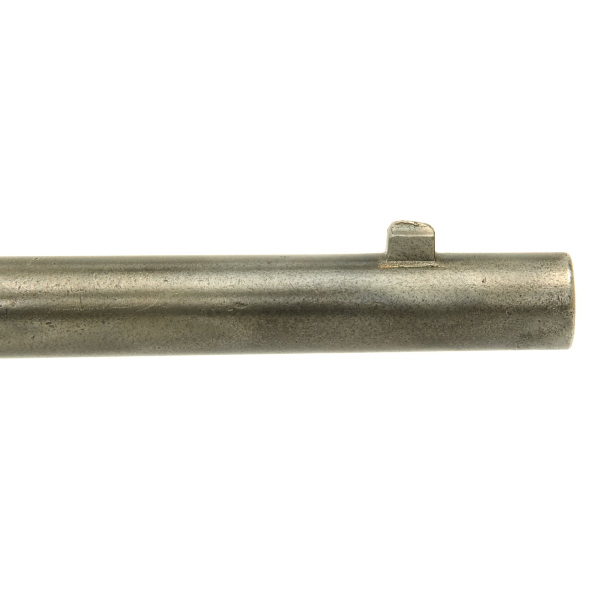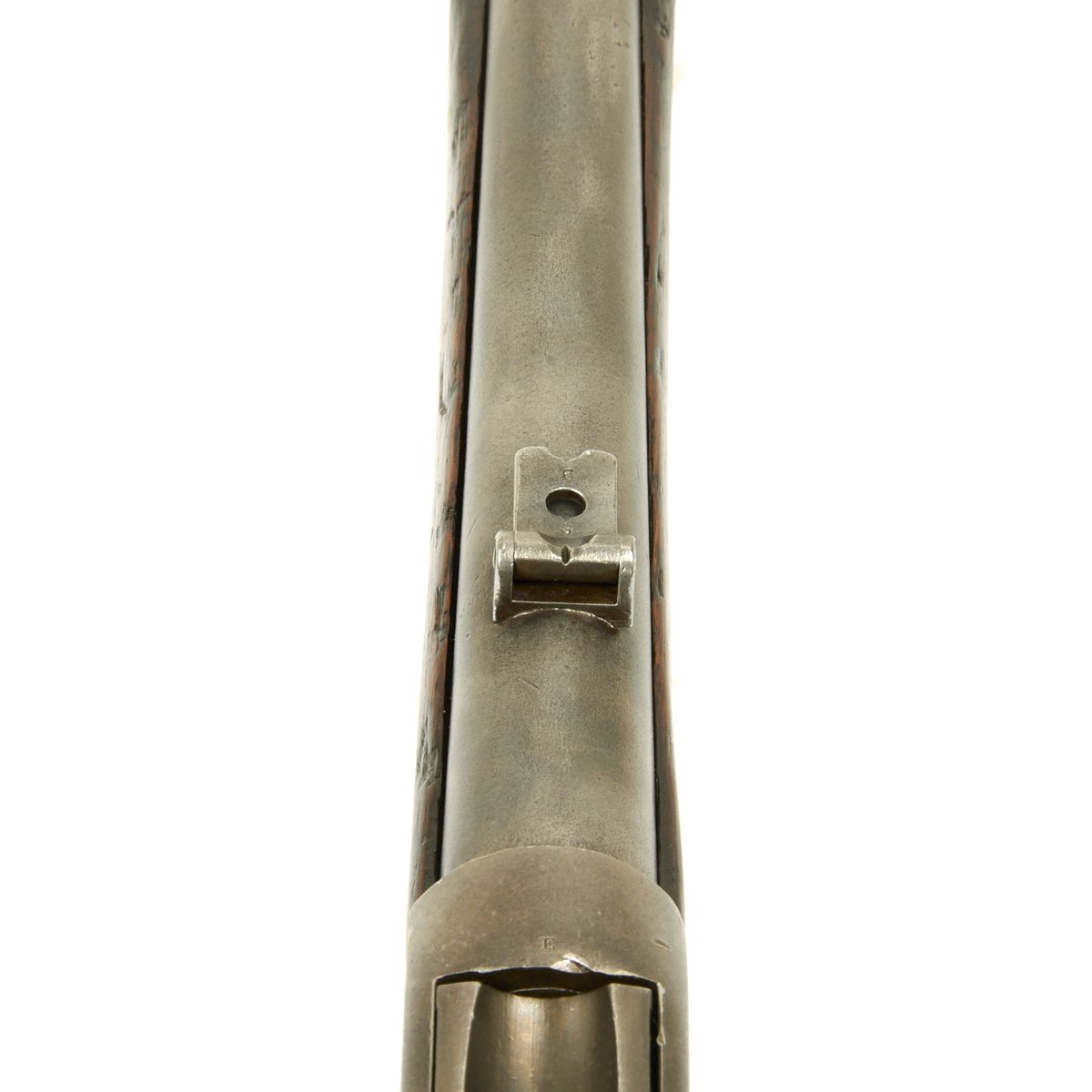 This Peabody carbine is in very good, complete condition and features a 20 round barrel secured to its walnut stock via a single barrel band. Walnut stocks are free of any blemishes. The butt stock has carved soldier's initials J.N.R. and the number 322 is stamped into the opposite side. A small cartouche from a Providence Company inspector shows on the left wrist area of the stock.