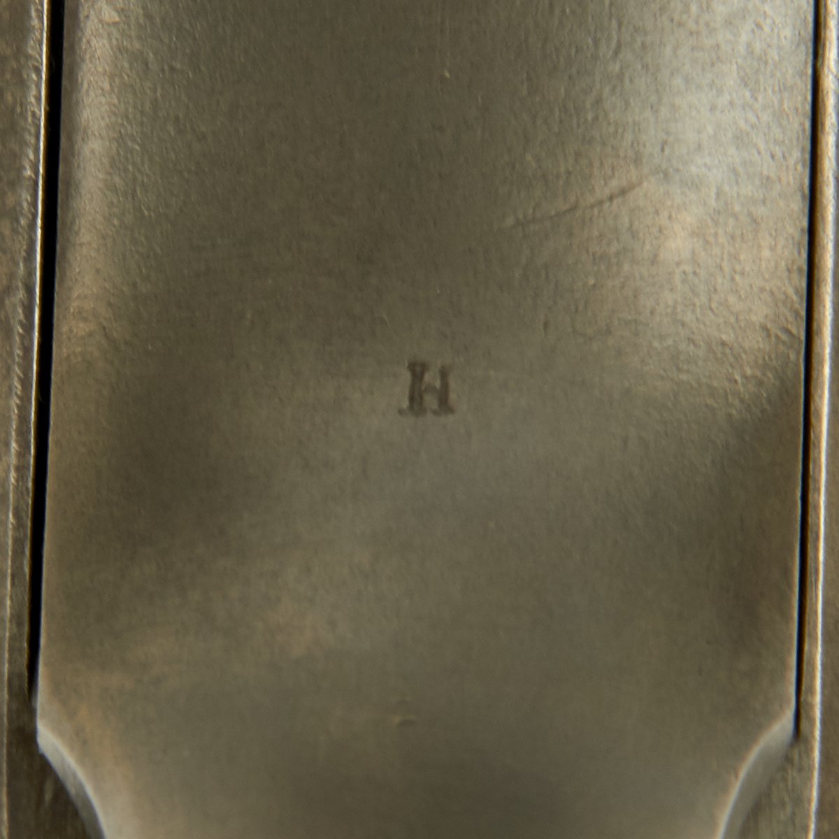 Receiver wears a gray patina overall and shows traces of original case colors also on the hammer. Left side of receiver has the maker’s stamp in small clear markings as follows: