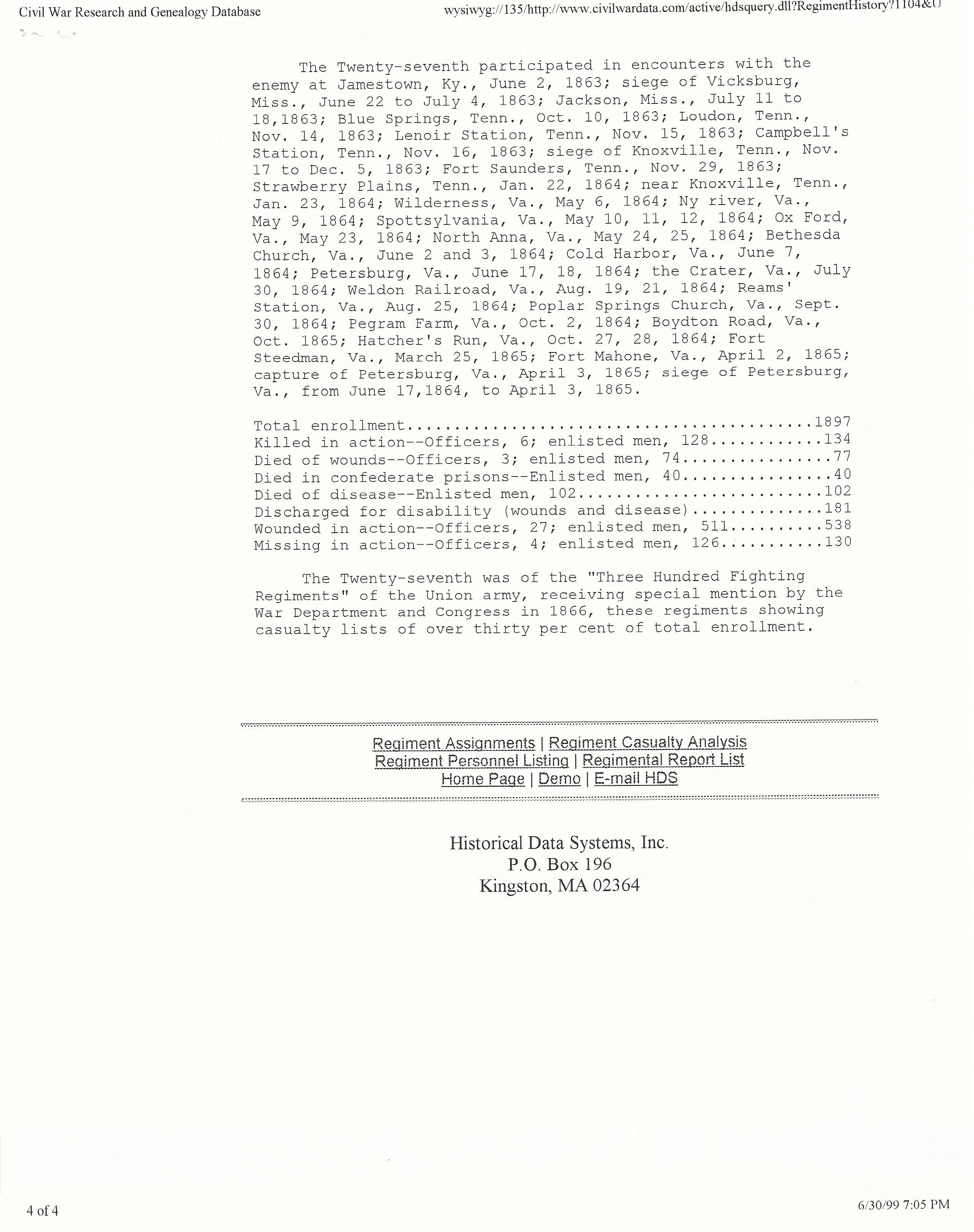 The Twenty-seventh suffered the hardships and severities