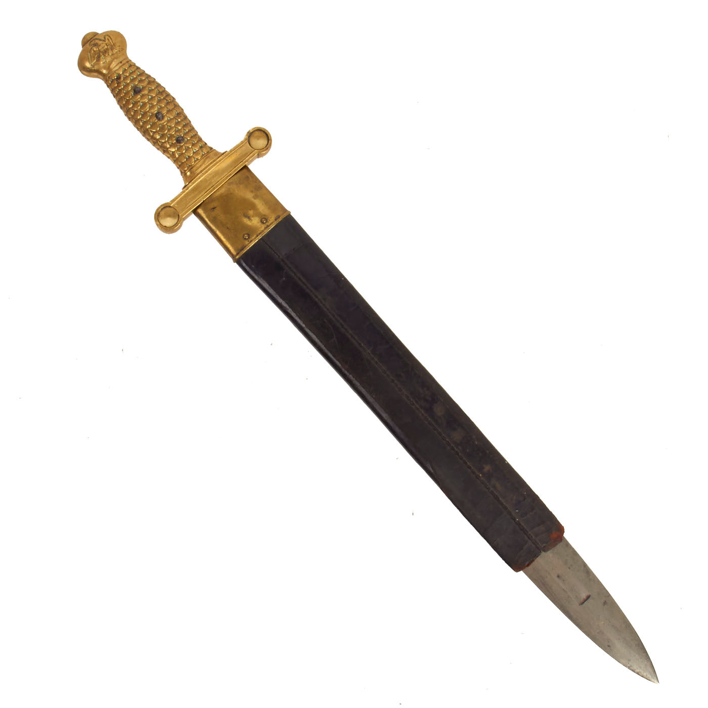 Original Item: Only One Available. This is a great example of an Ames Model 1832 Artillery Short sword. This design of foot artillery sword has a straight, heavy double-edged steel blade. There are two side-by-side fullers, starting just below the hilt. Then, after a space of 11/16", there is a single center fuller that extends toward the blade's spear shaped point. The overall blade length is approximately 19 1/4''.