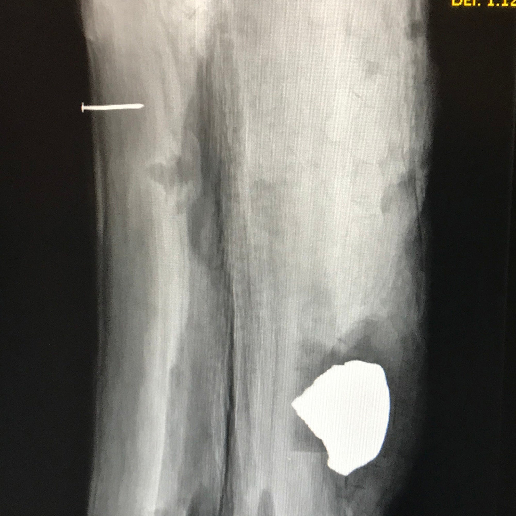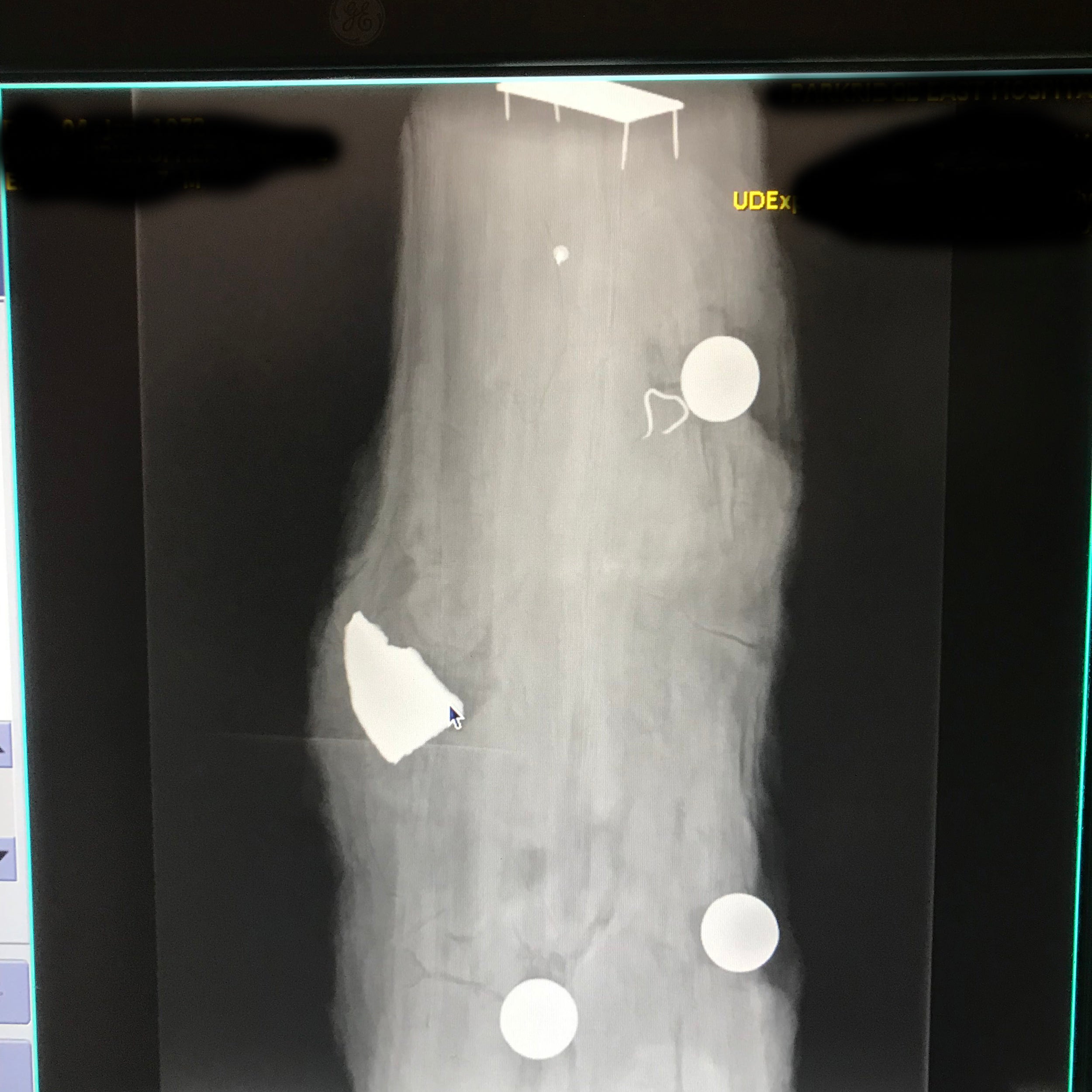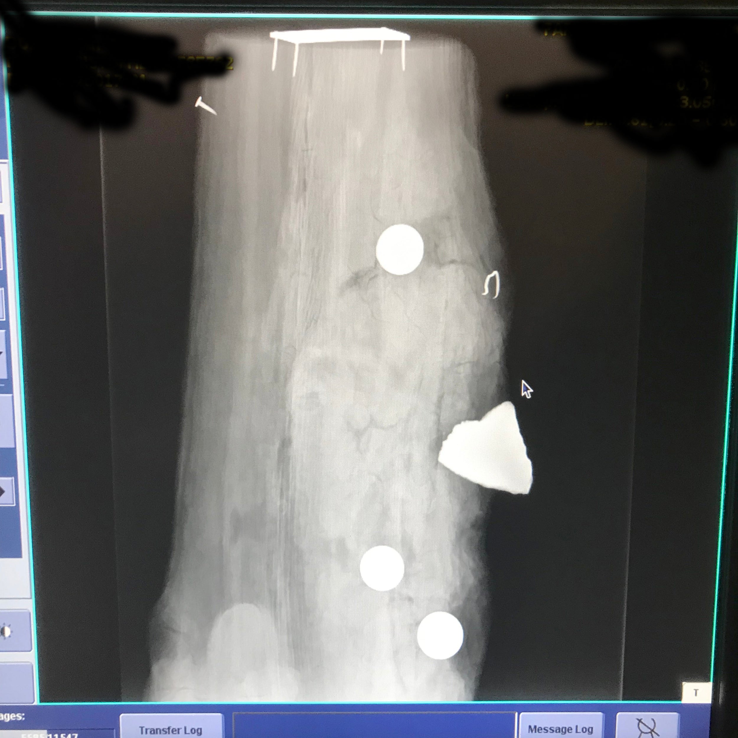 Our War Log was once part of the collection of well-known collector Dr. Michael “Doc” Colella, and was recently sold from his collection. The log is a section of White Oak Tree, which is common on the Gettysburg Battlefield. The log was struck by three iron canister balls, and two large fragments from twelve pound spherical shells. Upon having the log X-Rayed (Yes, we really went that far!) a small iron shrapnel fragment was found to be embedded into the log as well! On the top of the log is an old brass tag (of approximately 1890s vintage we would guess), secured with nails. According to “Doc”, this particular War Log was once on display in a G.A. R. Hall ( and then town hall) in the village of Holland Patent, Oneida County, New York. This Upstate New York Village is just a few miles due north of Utica, New York. The log measures 25.5” tall, and 8” in diameter at it’s widest point. The log stands up on it own with the Gettysburg plaque clearly displayed. Also included are printed copies of X-rays taken of the log which show all the internal pieces of shrapnel and projectiles.
