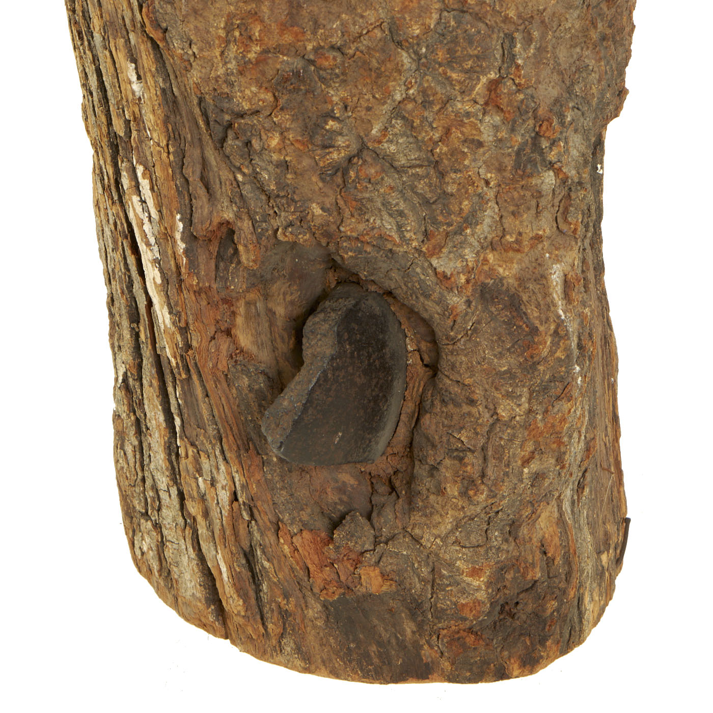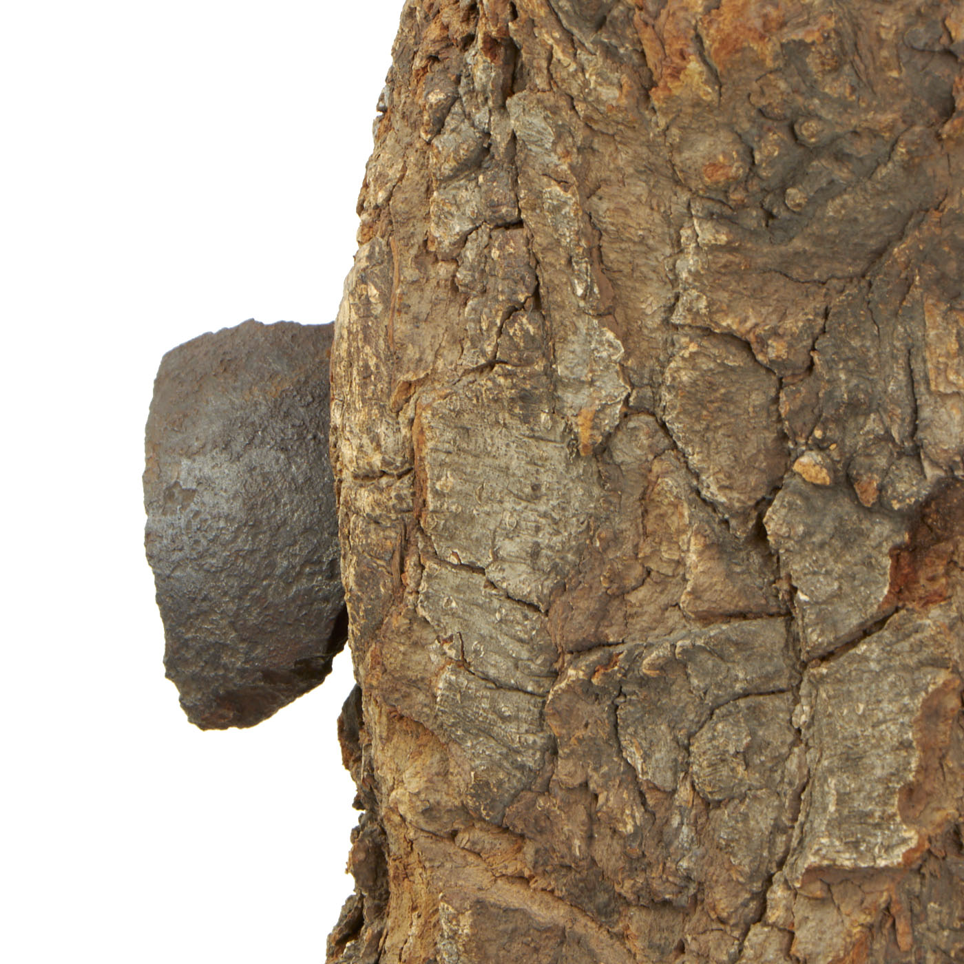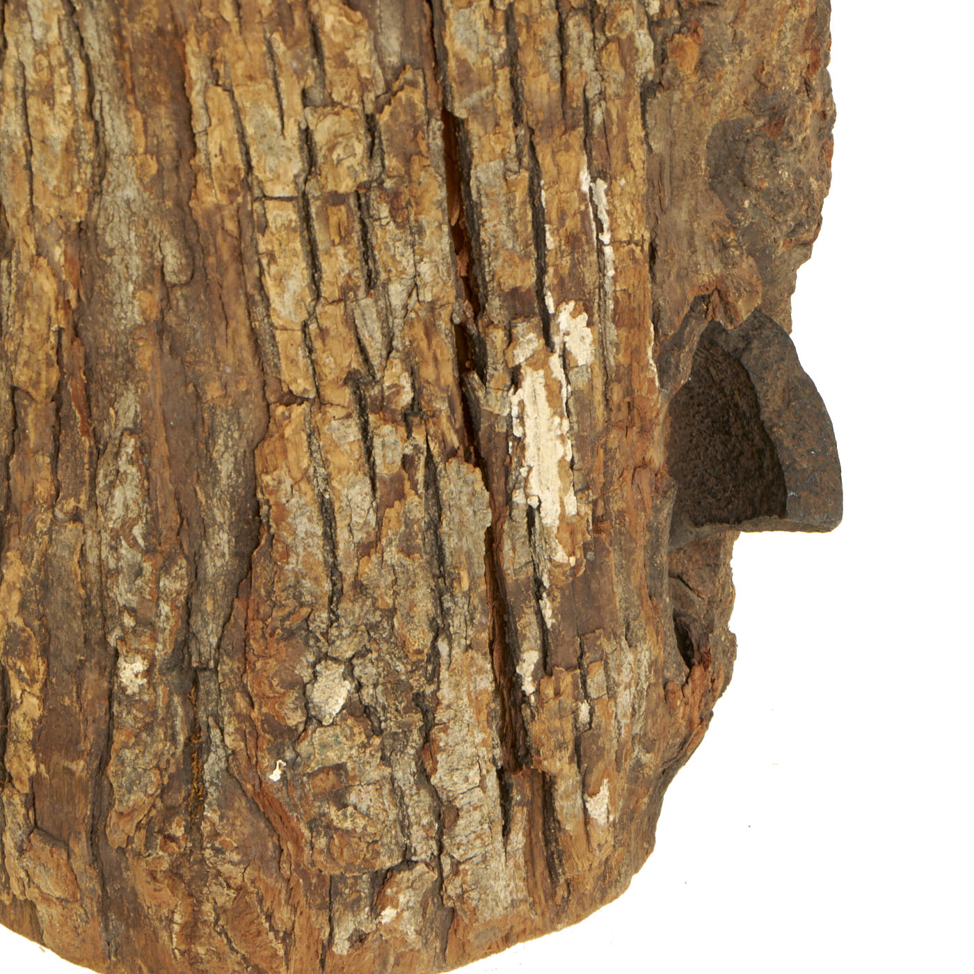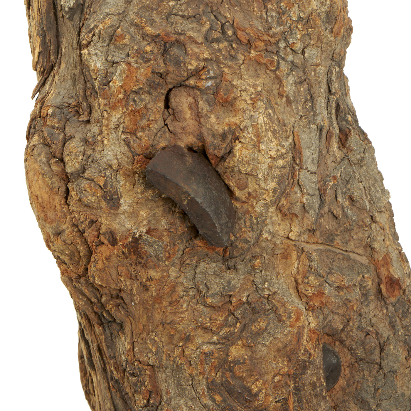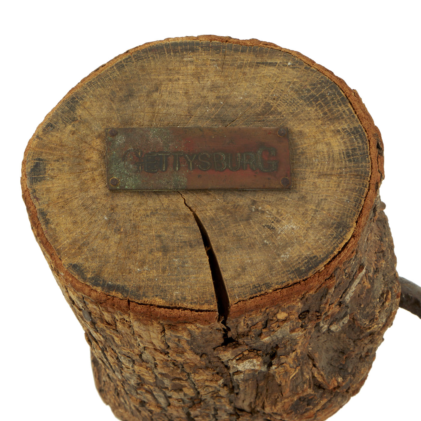 Original Item: One of a Kind. This is an incredible Civil War Artifact hailing from the battlefields of Gettysburg, Pennsylvania, the site of the most decisive battle of the war. “War Logs” were highly sought after relics in the decades following the American Civil War. These logs started to become popularized by veterans who harvested them after returning to the areas in which they had fought. By the 1870s-1880s, the battle damaged trees, now having healed and continuing to grow, made for rather dramatic display pieces with the iron projectiles being absorbed into the wood.