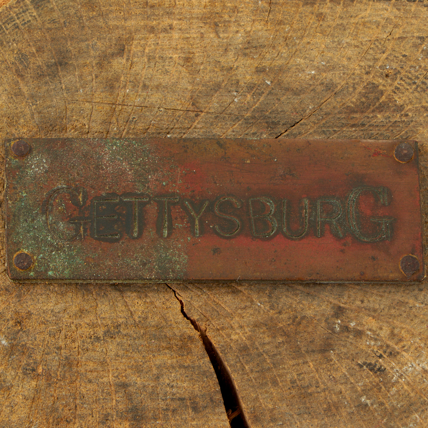 There is unfortunately no way to clearly determine what portion of the battlefield our log originates. We do believe, based on similar war logs, with similar damage, and of the White Oak species, that it came from the “Valley of Death” which extends from the area adjacent to Devil’s Den and Little Round Top, and extends up to the Trostle Farm. However, there are also similar segments of White Oak hailing from the “Copse of Trees” at the High Water Mark on Cemetery Ridge (site of Pickett’s Charge). These areas were under incredible fire from musket and artillery fire. We cannot say for certain, however, which area this particular War Log we are offering originated, other than the Gettysburg Battlefield itself.