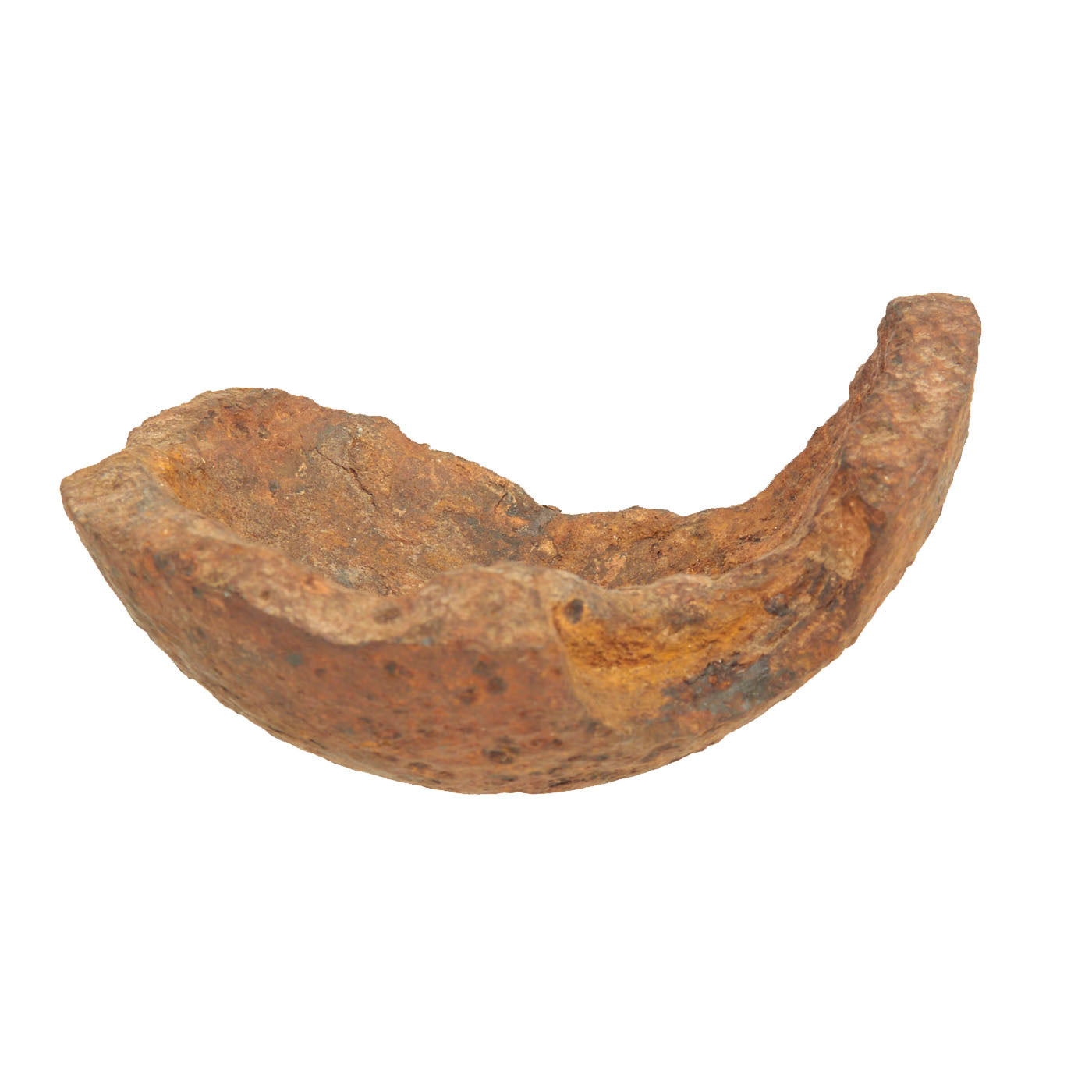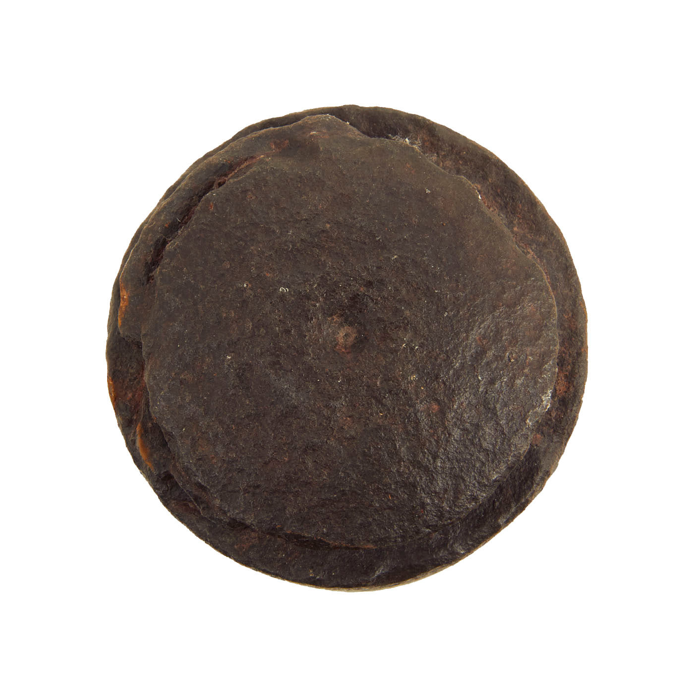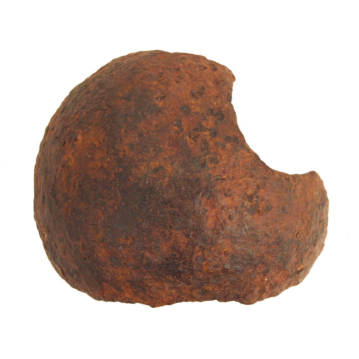 - 12 Pdr Cannonball Fragment For Use With a Bormann Timed Fuse: This is a lovely example of a ground dug Federal 12pdr cannonball that would have been used with the Bormann time fuse. The Bormann fuse is named after its inventor, Belgian Army Captain Charles G. Bormann. The Bormann time fuze was employed by the United Stated Ordnance Department as early as 1852. The time fuze is contained in a tin and lead disk. This disk had time markings indicated in seconds and quarter-seconds graduated up to 5 1/4 seconds. The artillerist used a metal punch to pierce the thin metal at the desired time marking. This exposed a section in the horseshoe-shaped horizontal mealed powder train, which is covered by a thin sheet of tin. When the cannon discharged, the flame from the explosion ignited this powder train. It would burn in a uniform rate in both directions, but one end would terminate in a dead-end just beyond the 5 1/4 second mark (Confederate copies are 5 1/2 seconds).
