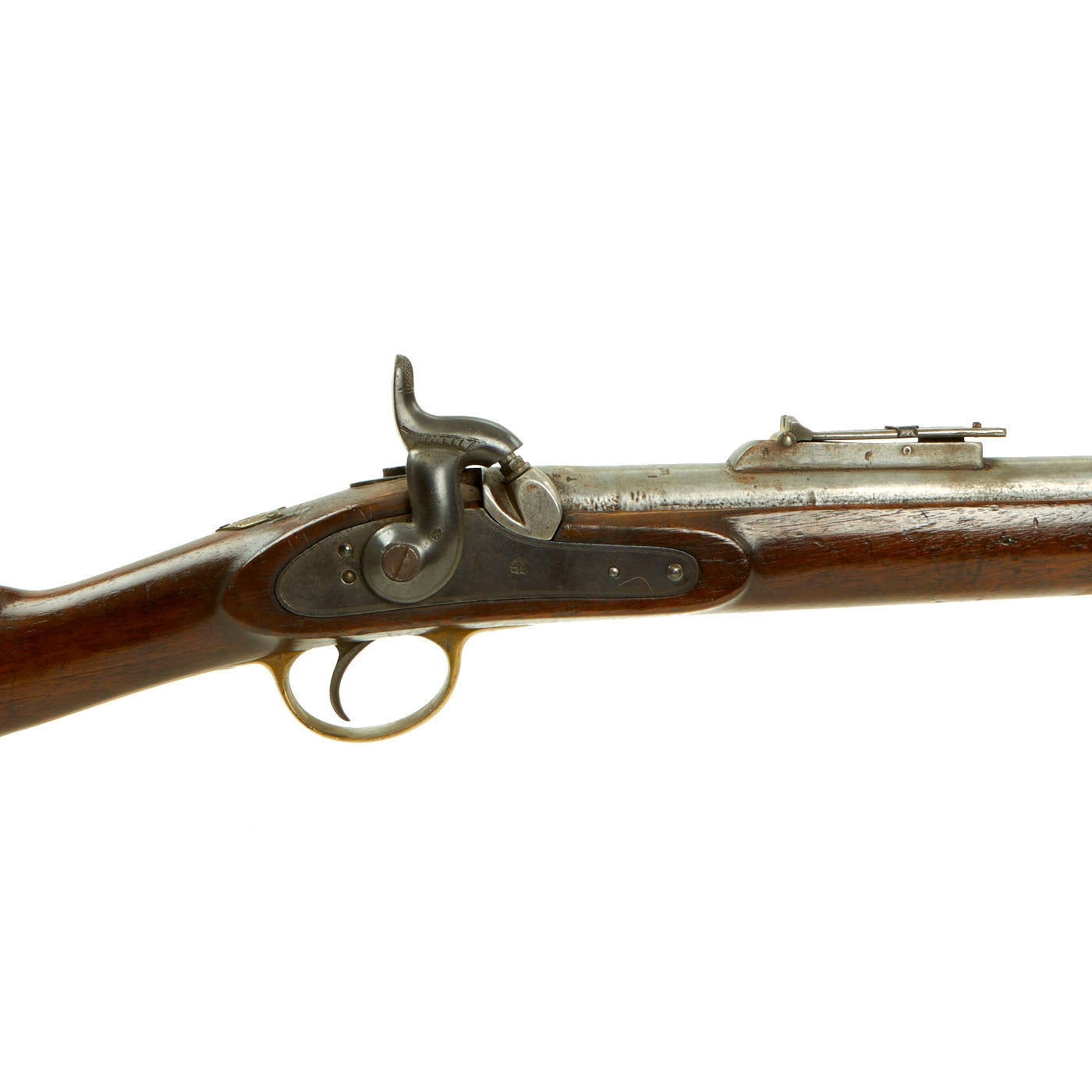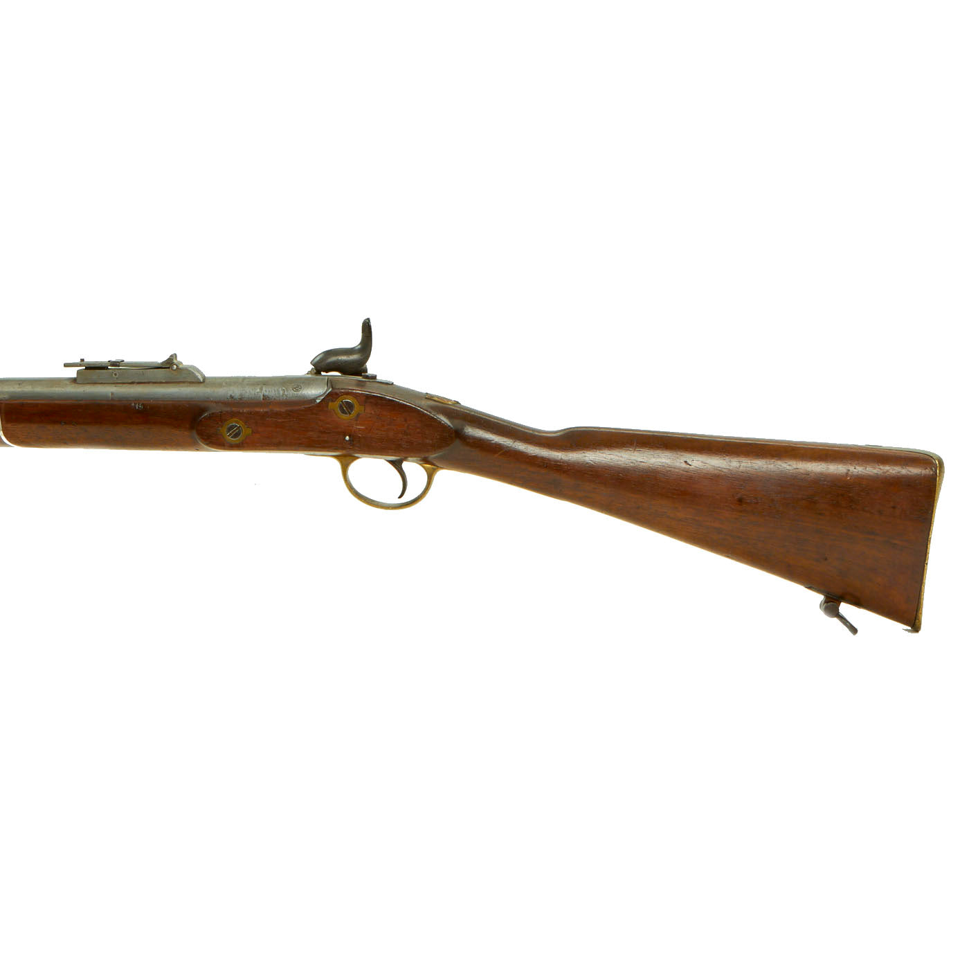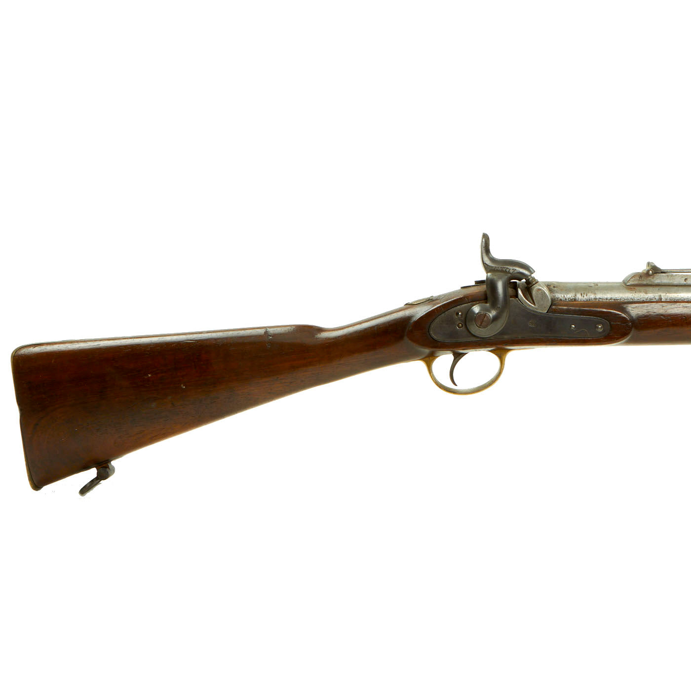 Original item: Only One Available. This is a very nice example of rare Imported Civil War rifle. Usually referred to as the "Brazilian Contract Light Minié Rifle", research has shown that these are more correctly called the "Brazilian Model 1855 Naval Rifle". These were essentially a Belgian made percussion rifle very similar to the British P-1856 two band Enfield rifle, made utilizing the Belgian Minié ball rifled system. Approximately 6,000 of these rifles were imported by Herman Boker and sold in New York City in early 1861. The States of New York and Ohio purchased many of these, though we unfortunately cannot find any state markings on this rifle.