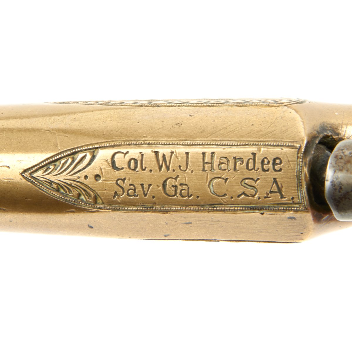In 1861 with the War between the States, Hardee joined the Confederacy as a Colonel later becoming a Lieutenant General in command of the 1st. CORP of the Army of Tennessee. He fought in many Campaigns including the Battle of Atlanta. In April of 1865 he surrendered to General William Tecumseh Sherman, the famous Union General. After the war he returned to private life and died in 1873.