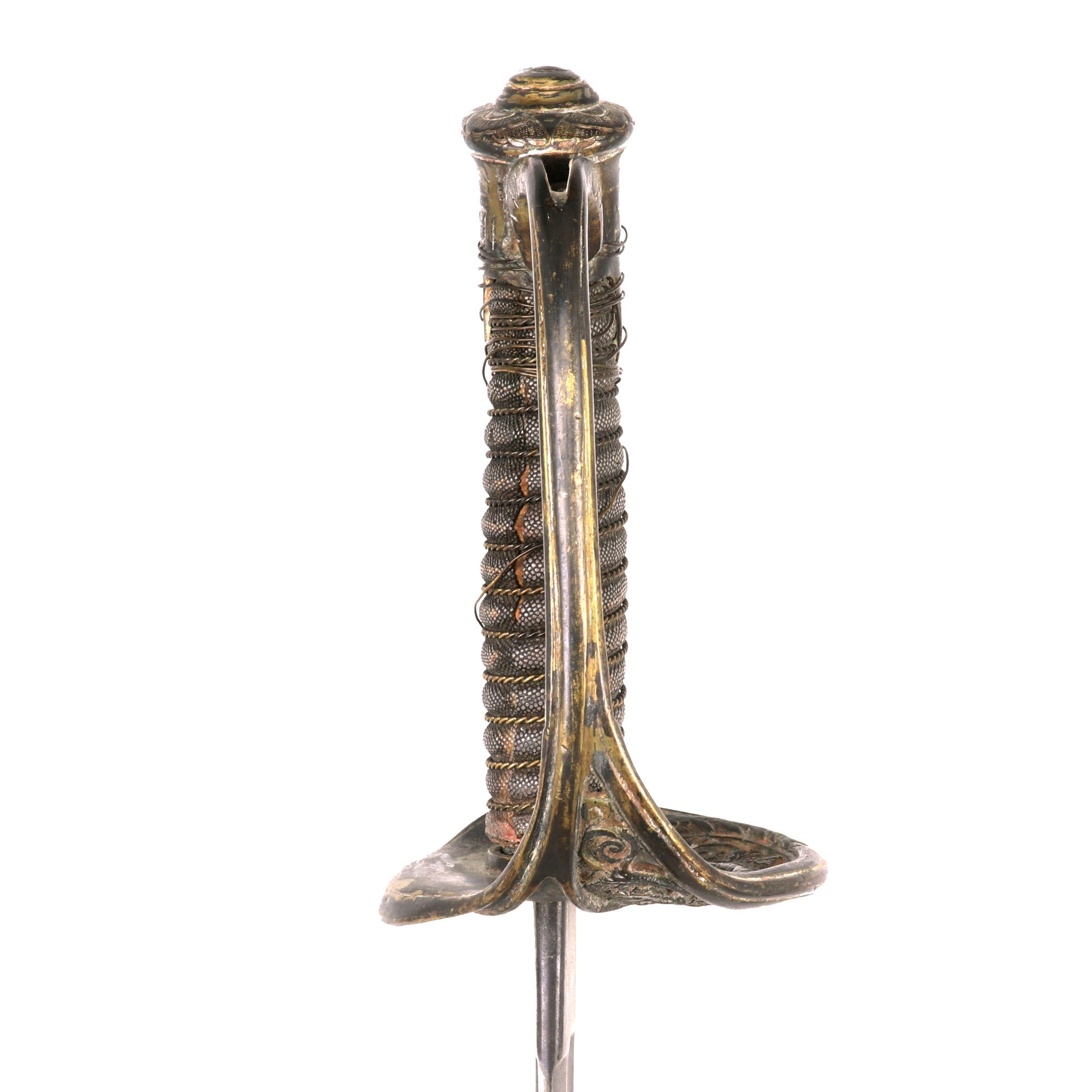 The Model 1850 Army Staff and Field Officer's Sword was carried by all members of staff departments, Field Grade officers of Artillery and Infantry, Company Grade Officers of Light Artillery, Staff Officers and Aides-de-Camp between 1850 and 1872. It was based on a French pattern. Though other swords were by regulation allowed, this model was by far the most popular sword carried by officers during the American Civil War. The Staff and Field Officers' Sword is distinct from the Model 1850 Army Foot Officer's Sword.