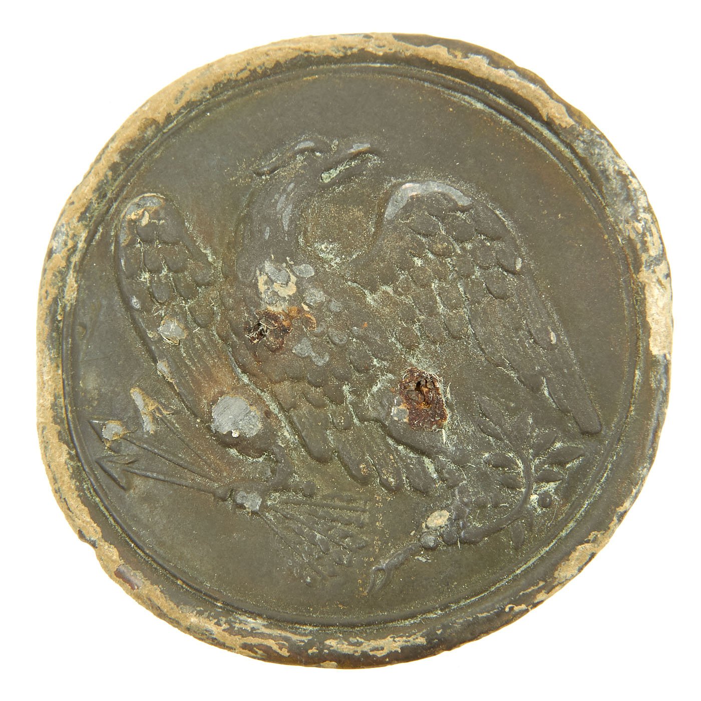 Original Item: Only One Available. This Pattern 1826 Eagle Breast Plate with lead filled back was ground dug (excavated) in the 1960s at Lookout Mountain, Chattanooga, Tennessee.