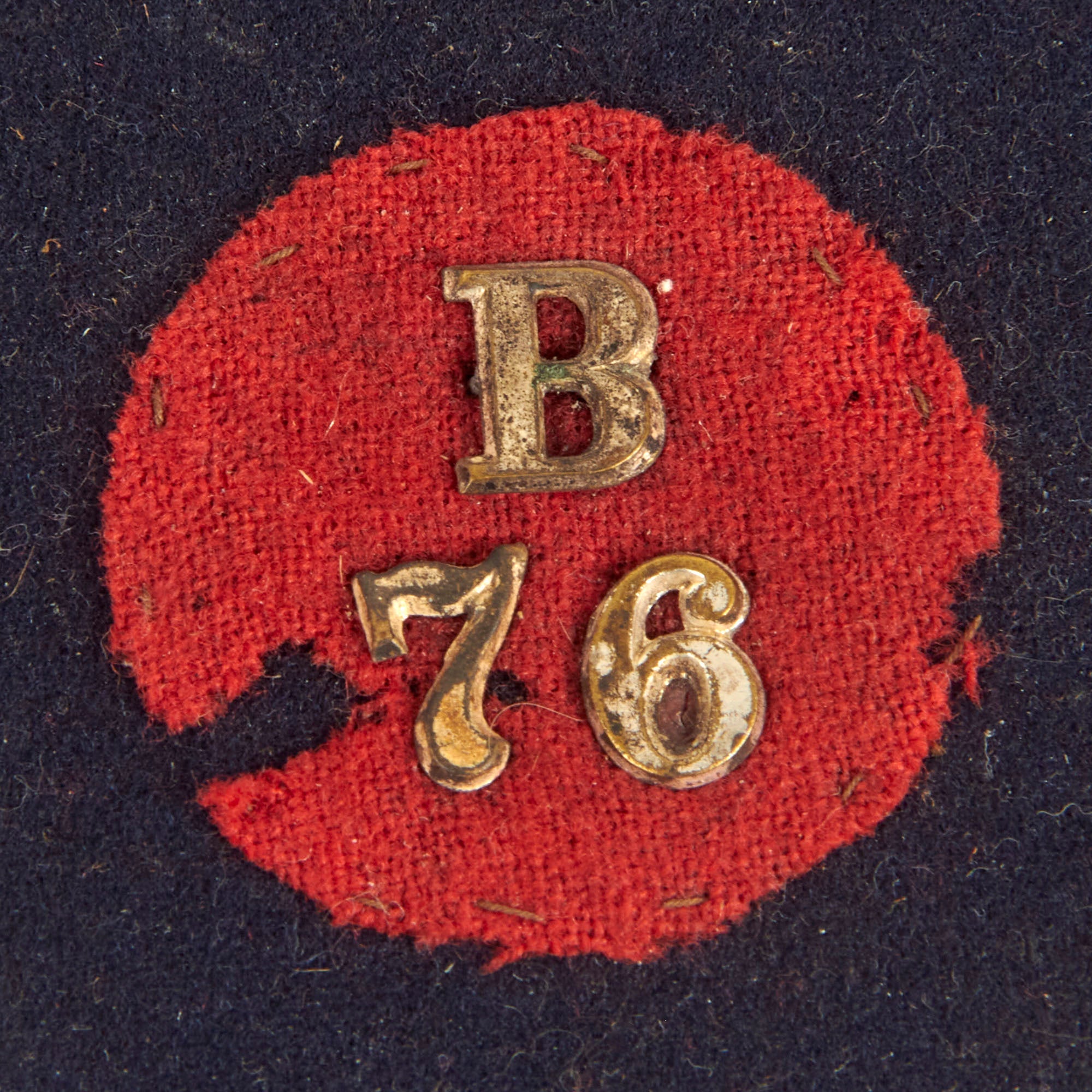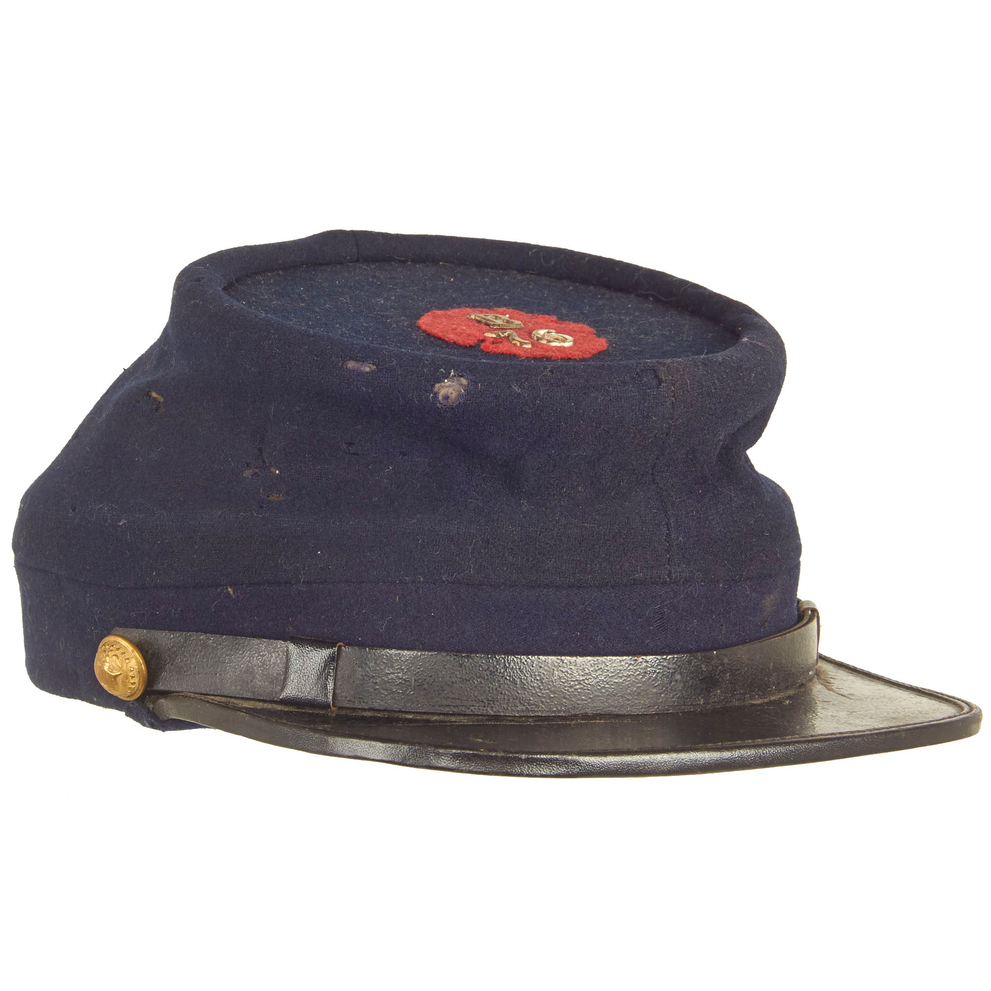 The patch on top of this Kepi is rather simple in design, but these are the types of patches that started it all and what we know today. The insignia is simple, it's a small red circle with the number 76 in the center for the 76th New York Infantry Regiment.
