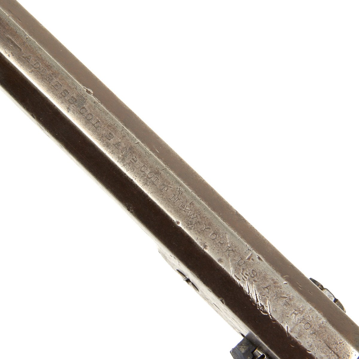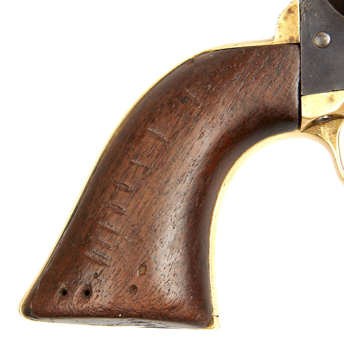 ADDRESS COL SAM L COLT NEW YORK U.S. AMERICA Being produced in wartime it is safe to say this revolver saw a lot of use. The original finish is well used but the revolver is still quite presentable. Of possible interest the right side of the wood grip bears eight hash marks with another four on the left side. Totaling twelve, one rather gets the impression that the Civil War owner may well have been keeping score, something we can never know for sure.