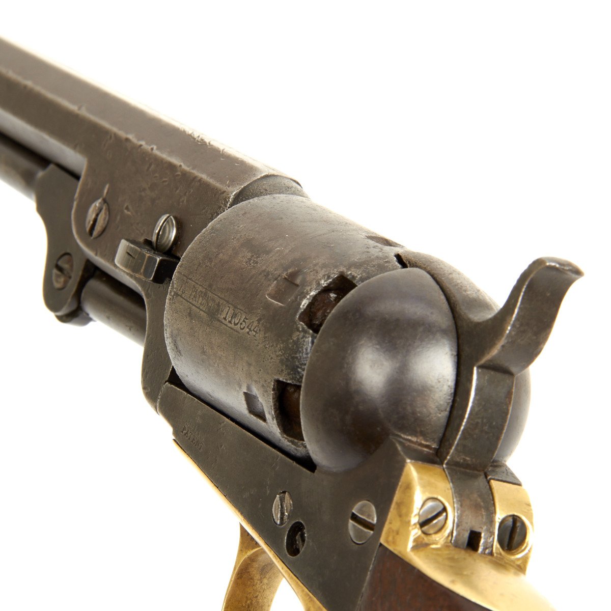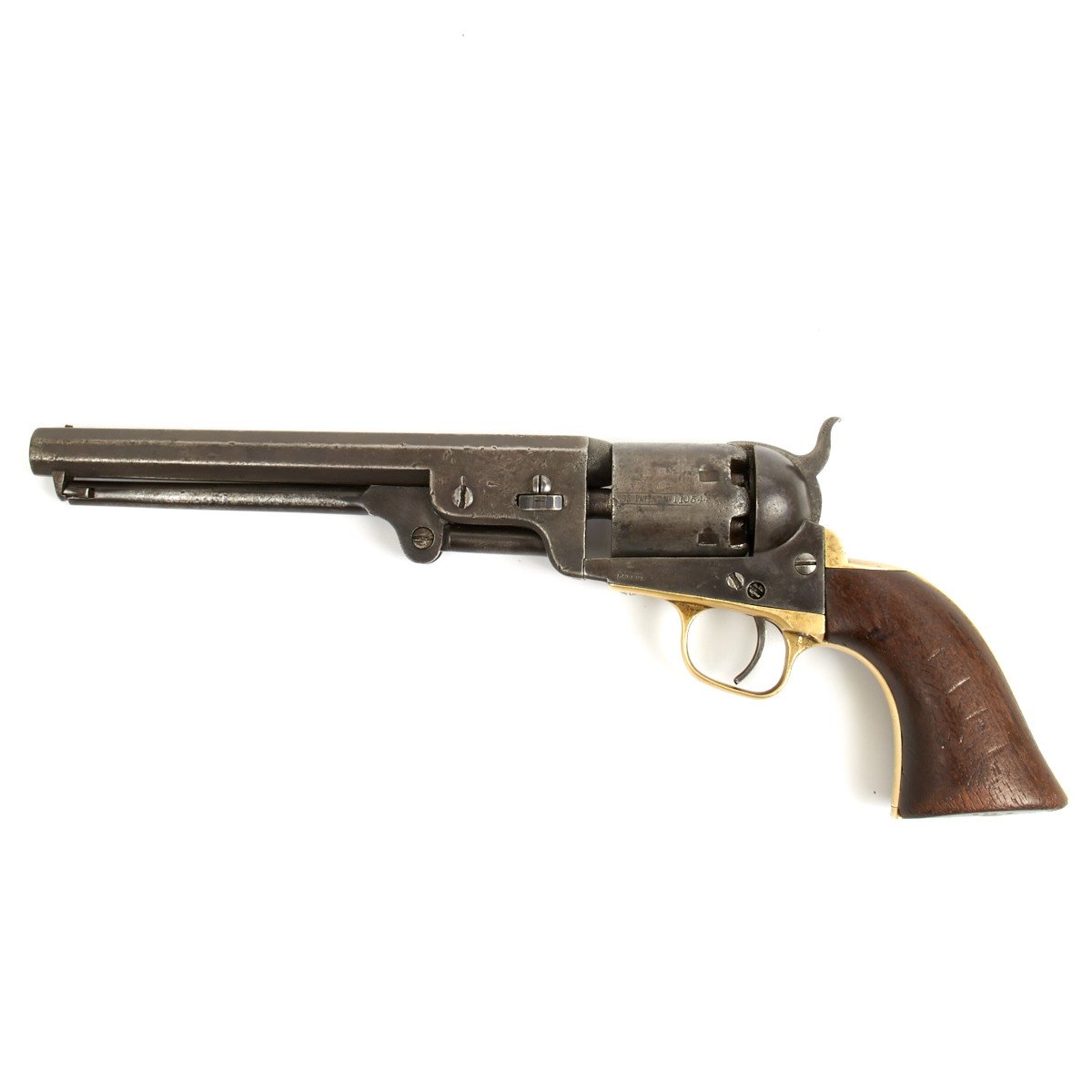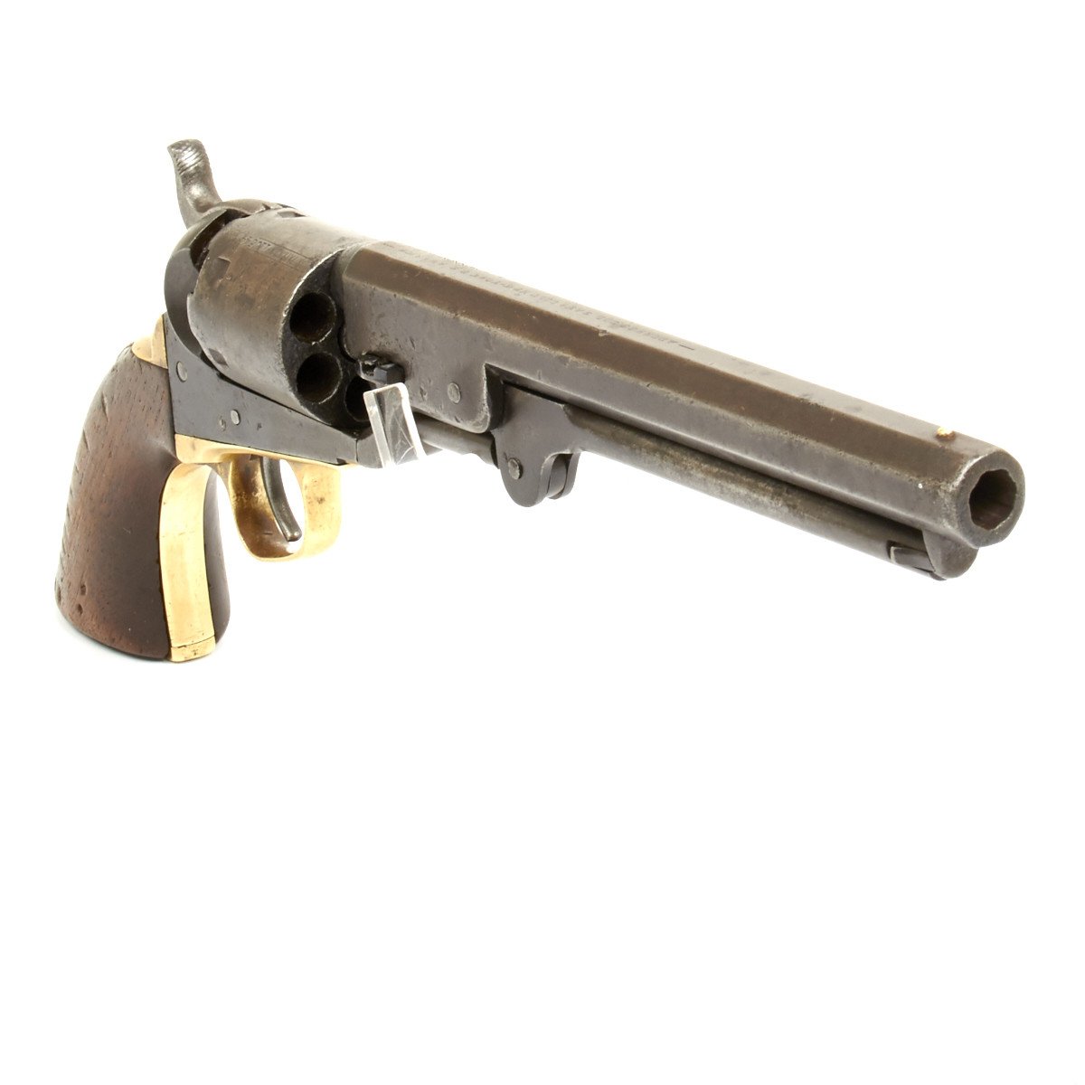 Original Item: Only One Available. This Colt Navy Model 1851 Percussion Revolver in .36 caliber was widely used by both sides in the U.S. Civil War. The Colt Revolving Belt Pistol of Naval Caliber (i.e., .36 cal), later known as the Colt 1851 Navy or Navy Revolver, is a cap and ball revolver that was designed by Samuel Colt between 1847 and 1850. Colt first called this Revolver Ranger model; but the designation Navy quickly took over. It remained in production until 1873, when revolvers using fixed metallic cartridges came into widespread use.