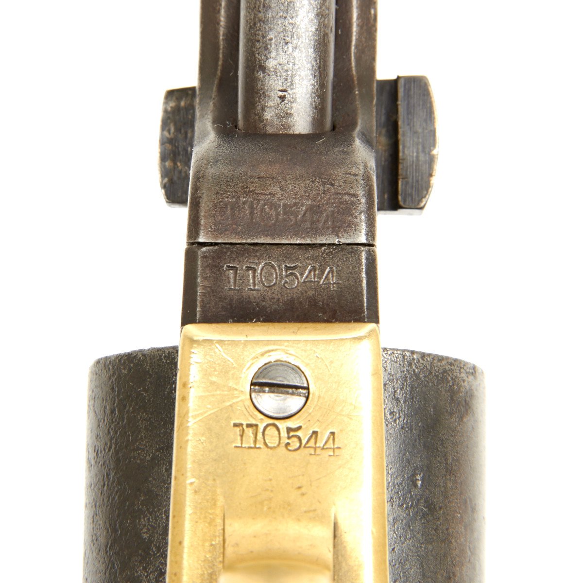Dating from the outbreak of the Civil War in 1861 this Navy Revolver is still in tight excellent working condition, shows use and retains it's matching numbers but what actual part it played in the war we shall never know. If only it could speak!