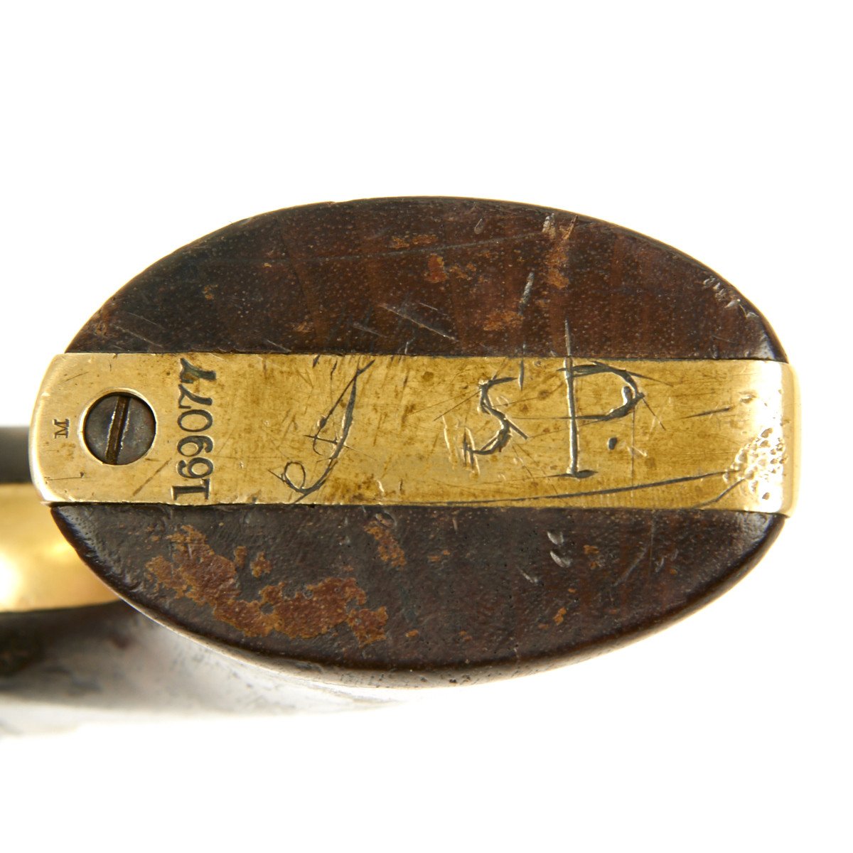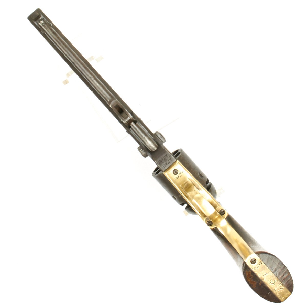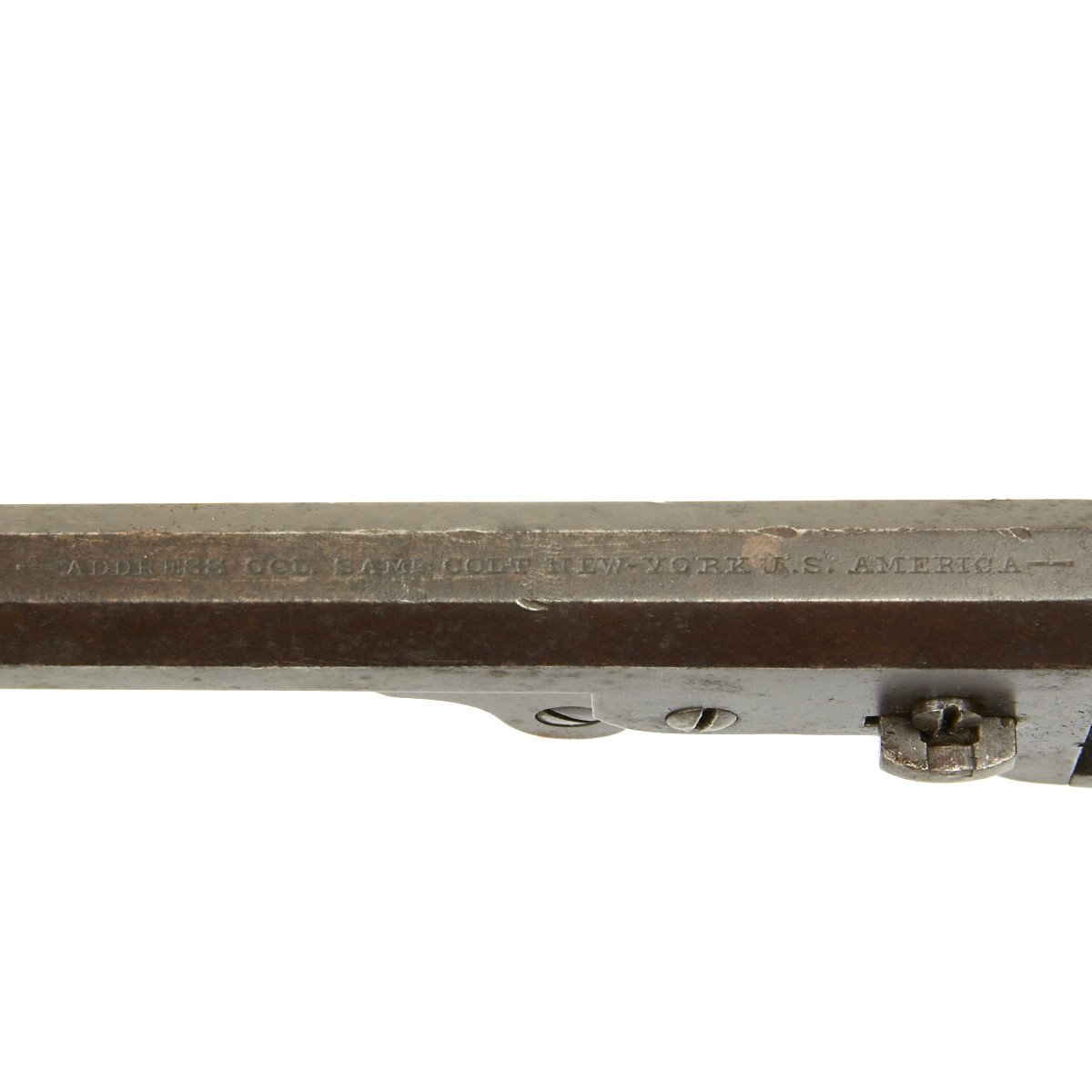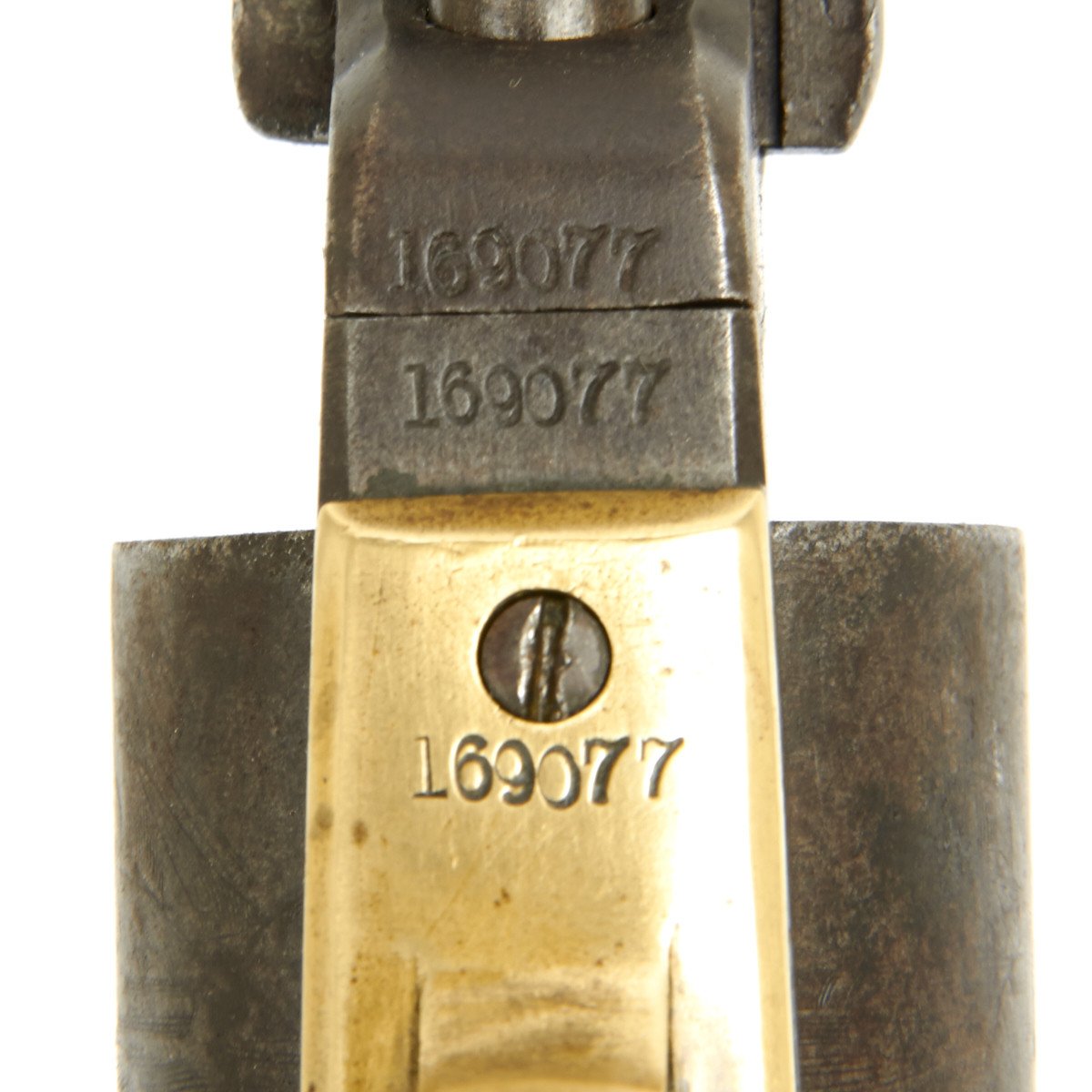 This very nice example features a 7½ barrel and all matching serial numbers of 169077 indicating manufacture in 1863 and bears the bears on the top of the barrel: