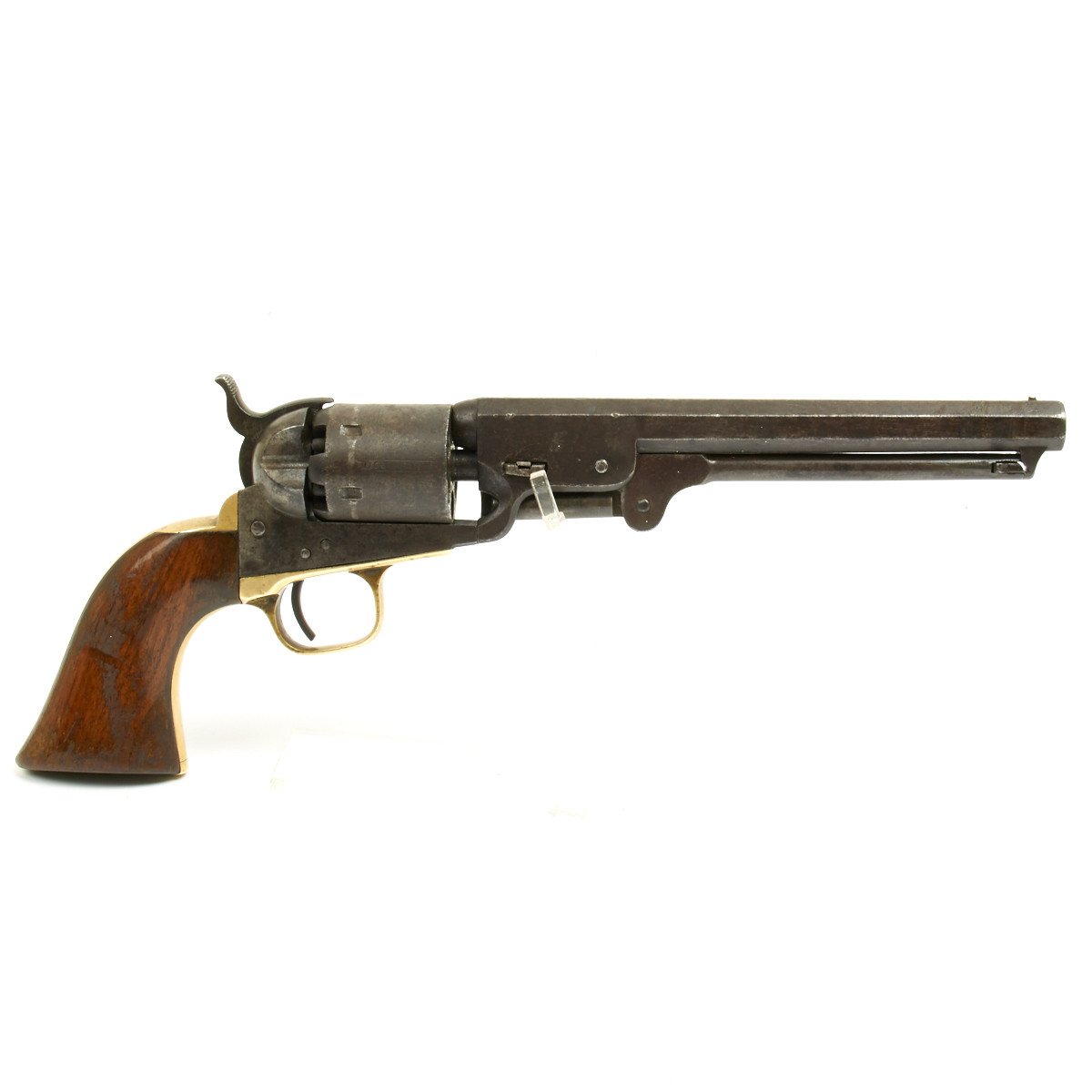 Original Item: Only One Available. This Colt Navy Model 1851 Percussion Revolver in .36 caliber was widely used by both sides in the U.S. Civil War. The Colt Revolving Belt Pistol of Naval Caliber (i.e., .36 cal), later known as the Colt 1851 Navy or Navy Revolver, is a cap and ball revolver that was designed by Samuel Colt between 1847 and 1850. Colt first called this Revolver Ranger model; but the designation Navy quickly took over. It remained in production until 1873, when revolvers using fixed metallic cartridges came into widespread use.