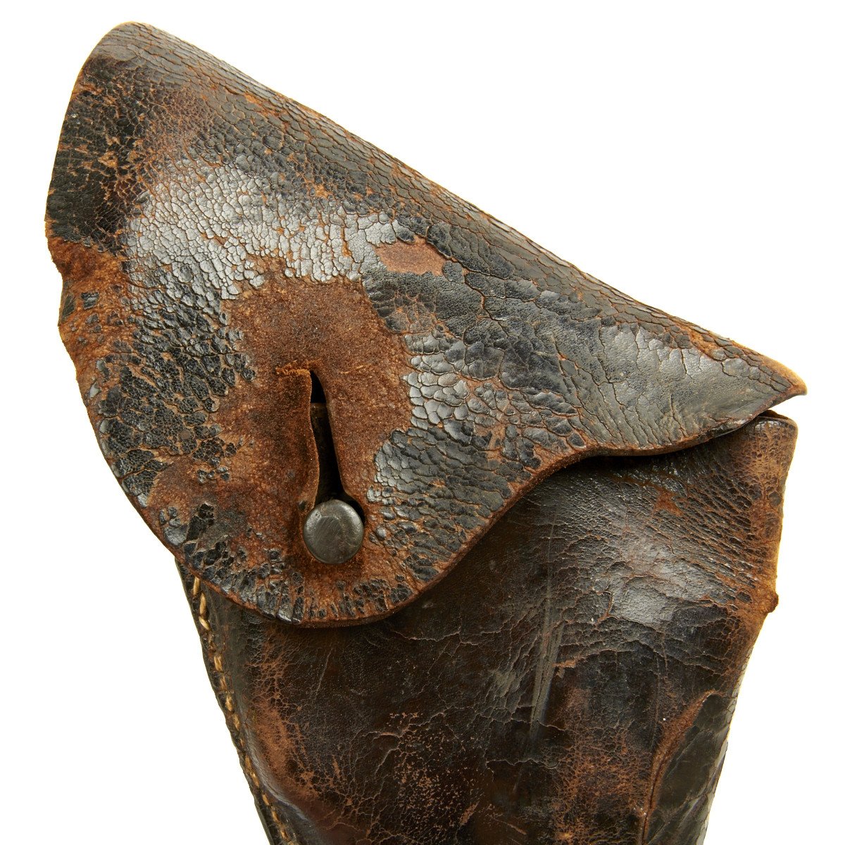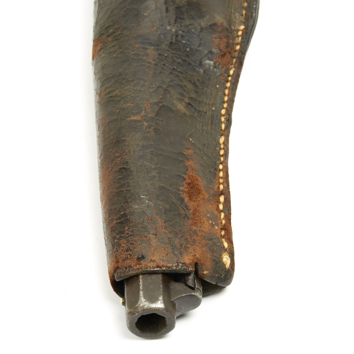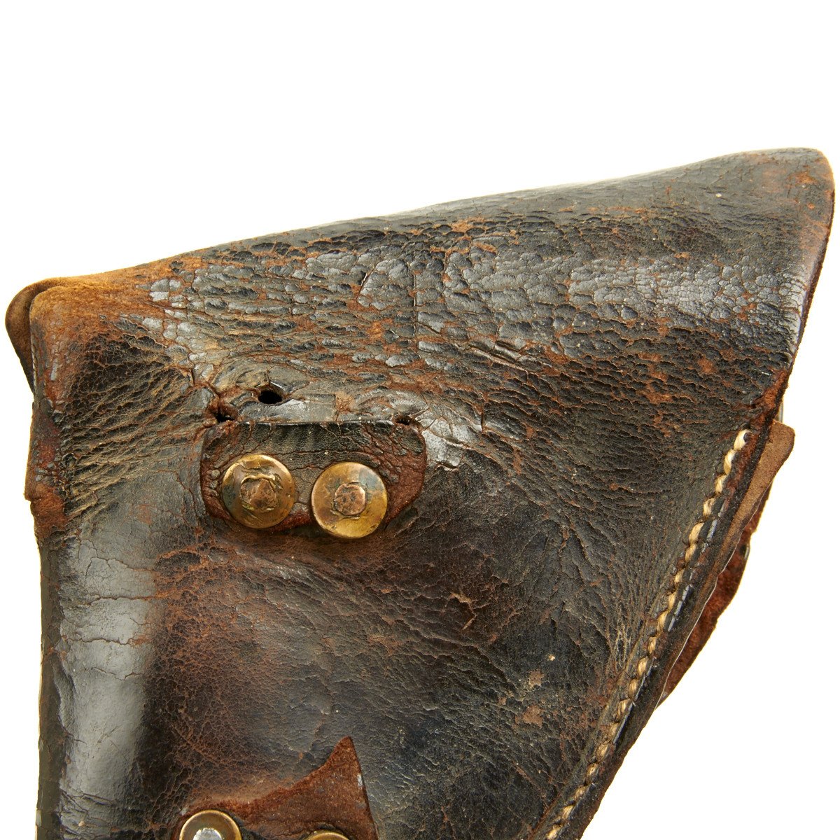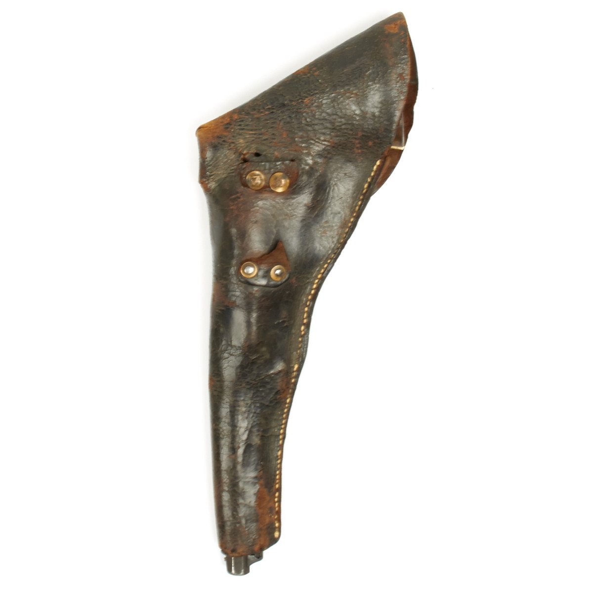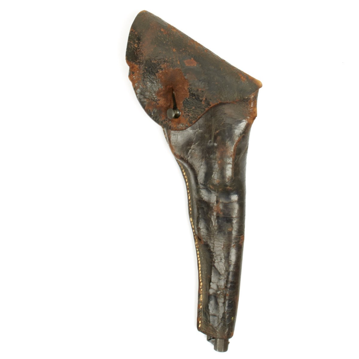 Also included is an original vintage military style holster, shows wear and minor damage but still very sturdy. This gun has been inside the holster a long time, which is exactly how we found it.