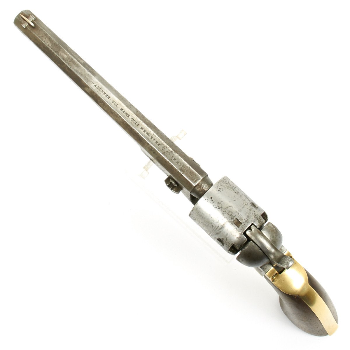 ADDRESS COL SAM L COLT NEW YORK U.S. AMERICA Being produced in wartime it is safe to say this revolver saw use. The original finish is well used but the revolver is very nice overall condition, the wood grips are solid, action is tight, very tight barrel/frame lockup, excellent mechanics and everything functions perfectly. If you are in the market for a Colt 1851 Navy, this is a wonderful option.