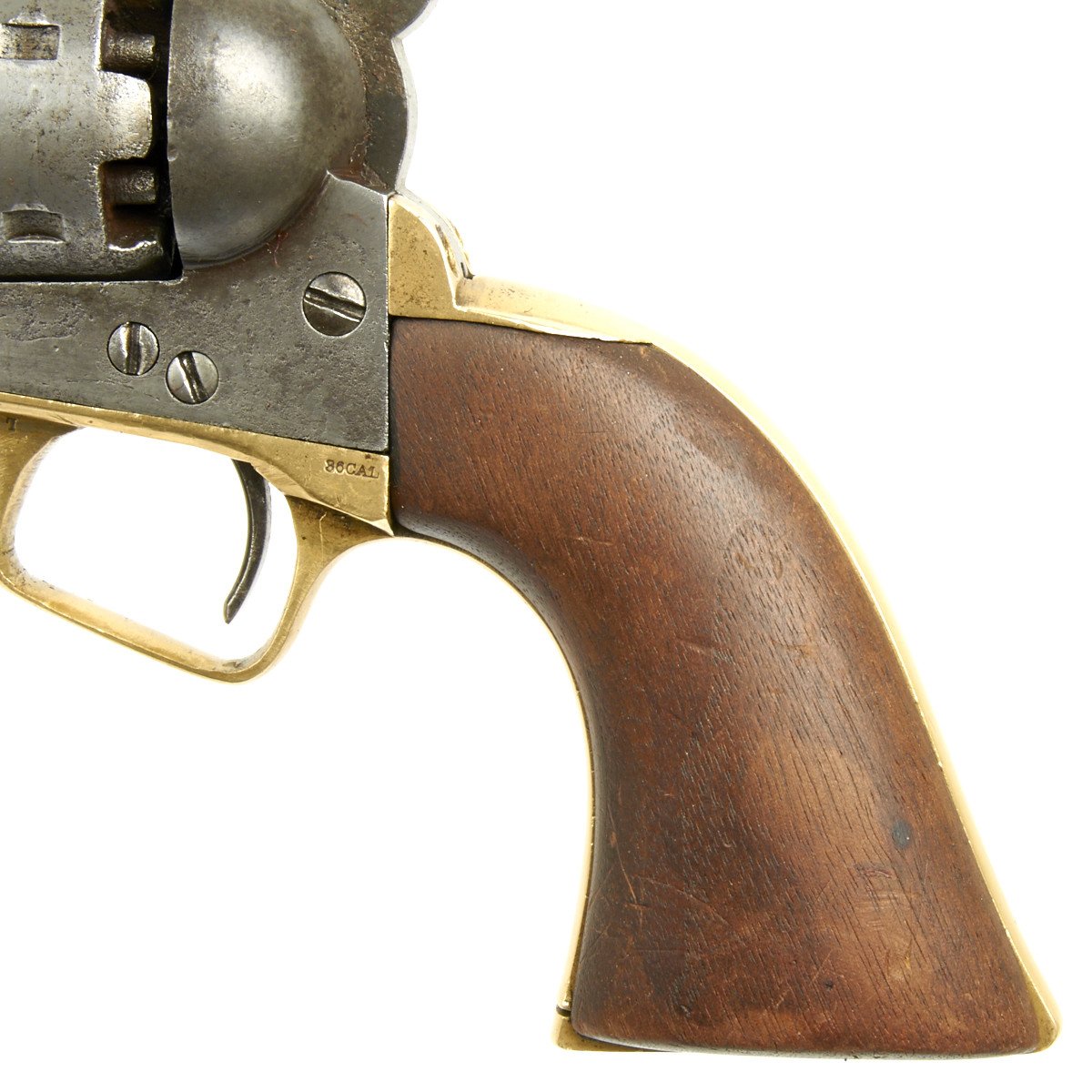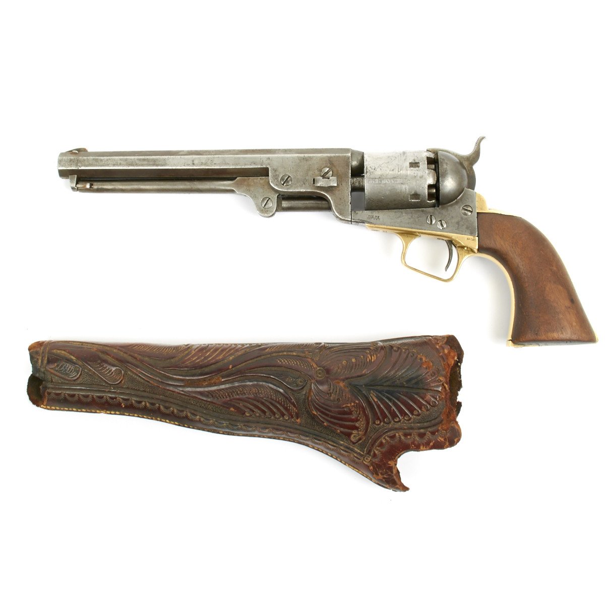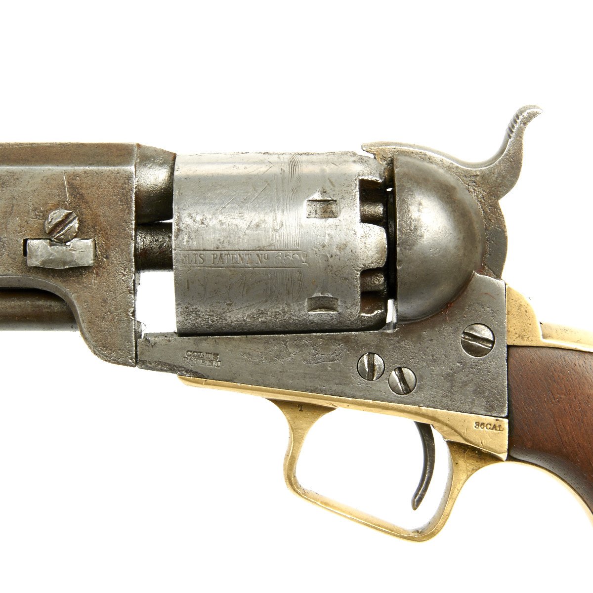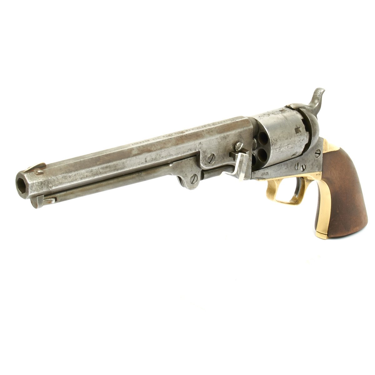 Original Item: Only One Available. This Colt Navy Model 1851 Percussion Revolver in .36 caliber was widely used by both sides in the U.S. Civil War. The Colt Revolving Belt Pistol of Naval Caliber (i.e., .36 cal), later known as the Colt 1851 Navy or Navy Revolver, is a cap and ball revolver that was designed by Samuel Colt between 1847 and 1850. Colt first called this Revolver Ranger model; but the designation Navy quickly took over. It remained in production until 1873, when revolvers using fixed metallic cartridges came into widespread use.