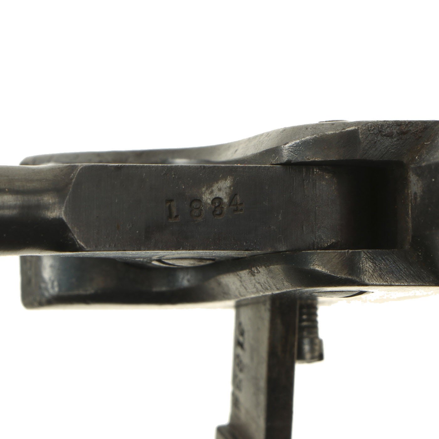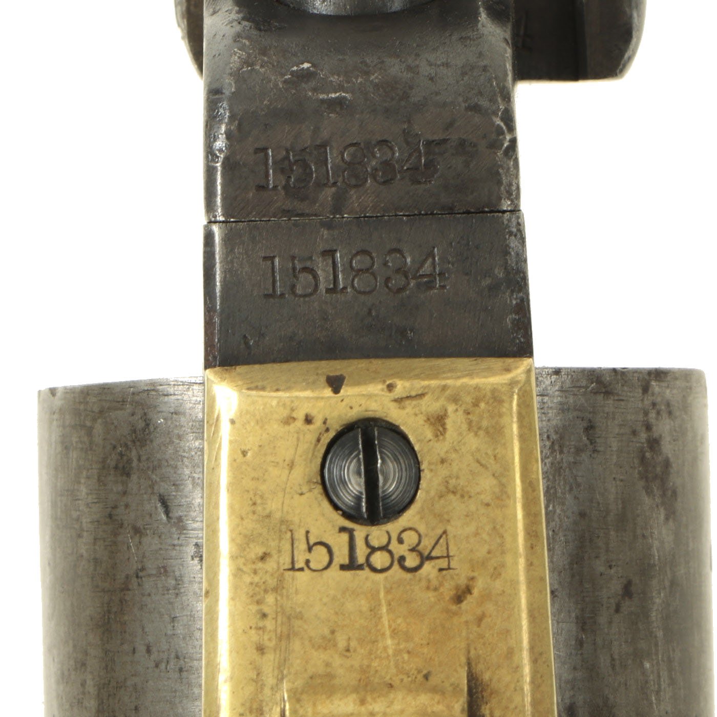 This very nice example features a standard 7 1/2" barrel and matching serial number 151834 on almost all parts including the barrel, frame, trigger guard, grip frame, barrel wedge, loading rammer, and cylinder axis pin! The cylinder unfortunately is quite worn, and all markings have been worn away. We do believe that it is the original cylinder that came with the revolver, but there is no way to tell definitively. Colt records indicate that this revolver was produced in 1863, right during the peak of the Civil War, and it doubtless saw service during the conflict.