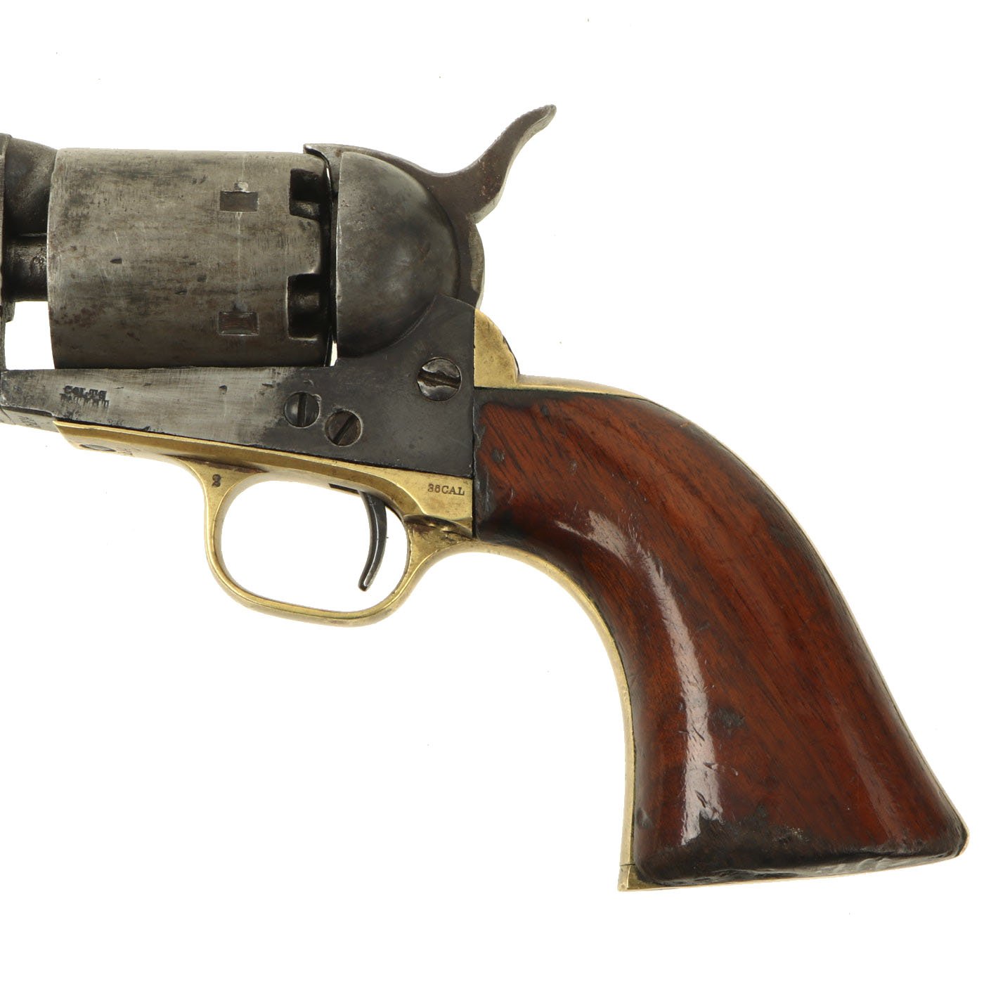 Original Item: Only One Available. The Colt Navy Model 1851 Percussion Revolver in .36 caliber was widely used by both sides in the U.S. Civil War. The Colt Revolving Belt Pistol of Naval Caliber (i.e., .36 cal), later known as the Colt 1851 Navy or Navy Revolver, is a cap and ball revolver that was designed by Samuel Colt between 1847 and 1850. Colt first called this Revolver Ranger model, but the designation Navy quickly took over. It remained in production until 1873, when revolvers using fixed metallic cartridges came into widespread use.