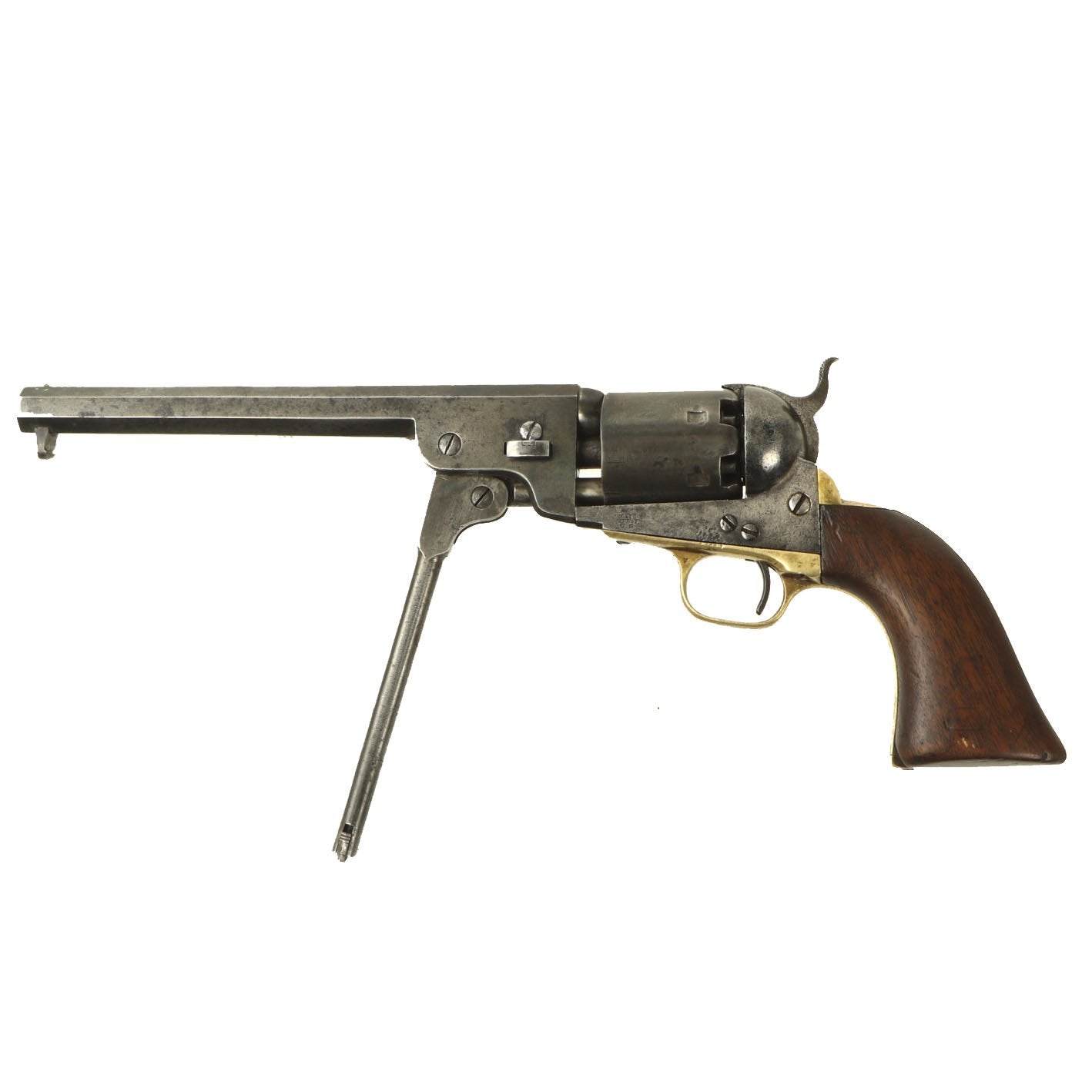 Original Item: Only One Available. The Colt Navy Model 1851 Percussion Revolver in .36 caliber was widely used by both sides in the U.S. Civil War. The Colt Revolving Belt Pistol of Naval Caliber (i.e., .36 cal), later known as the Colt 1851 Navy or Navy Revolver, is a cap and ball revolver that was designed by Samuel Colt between 1847 and 1850. Colt first called this Revolver Ranger model; but the designation Navy quickly took over. It remained in production until 1873, when revolvers using fixed metallic cartridges came into widespread use.