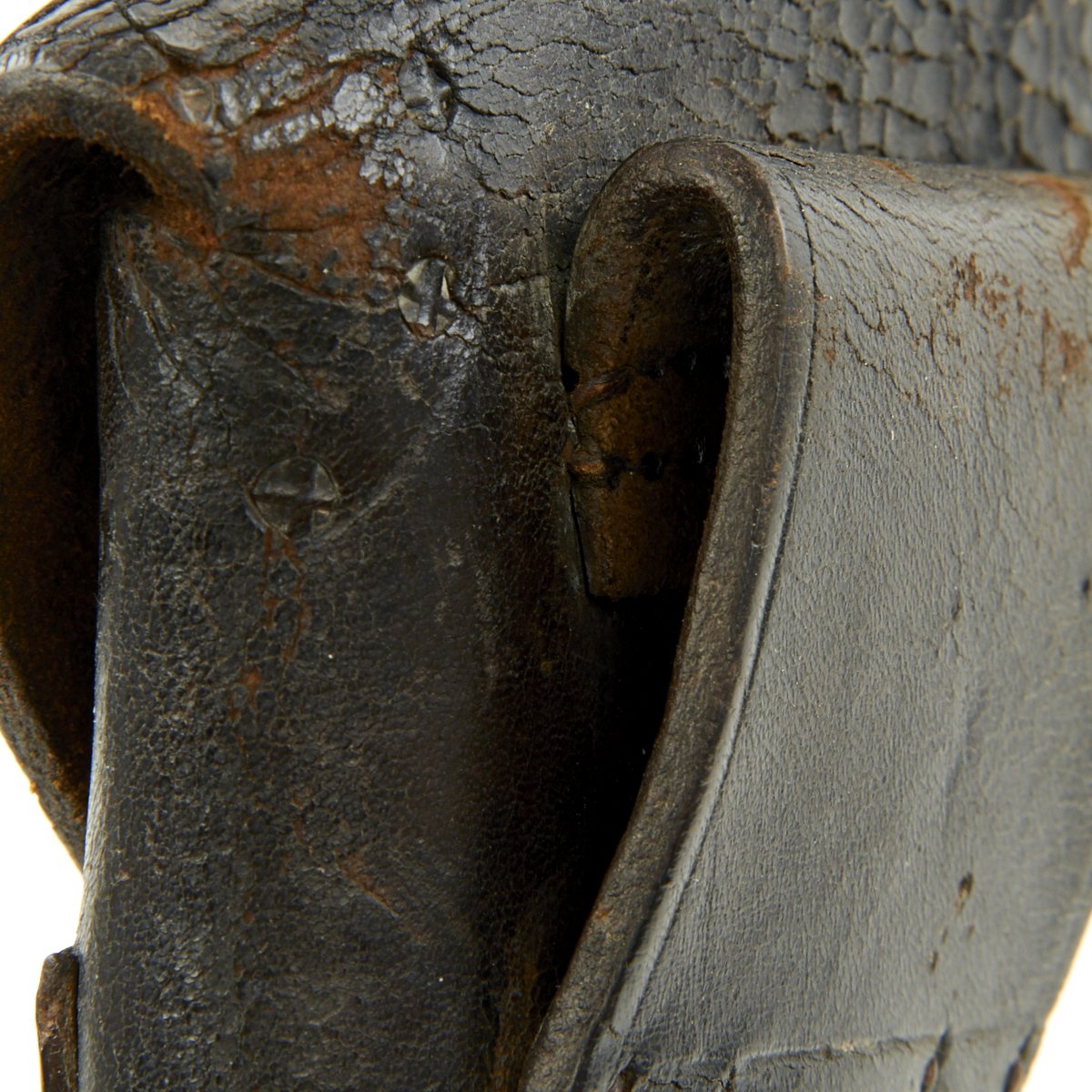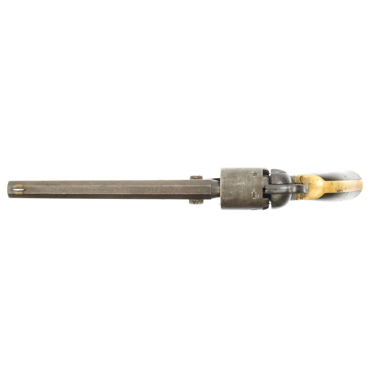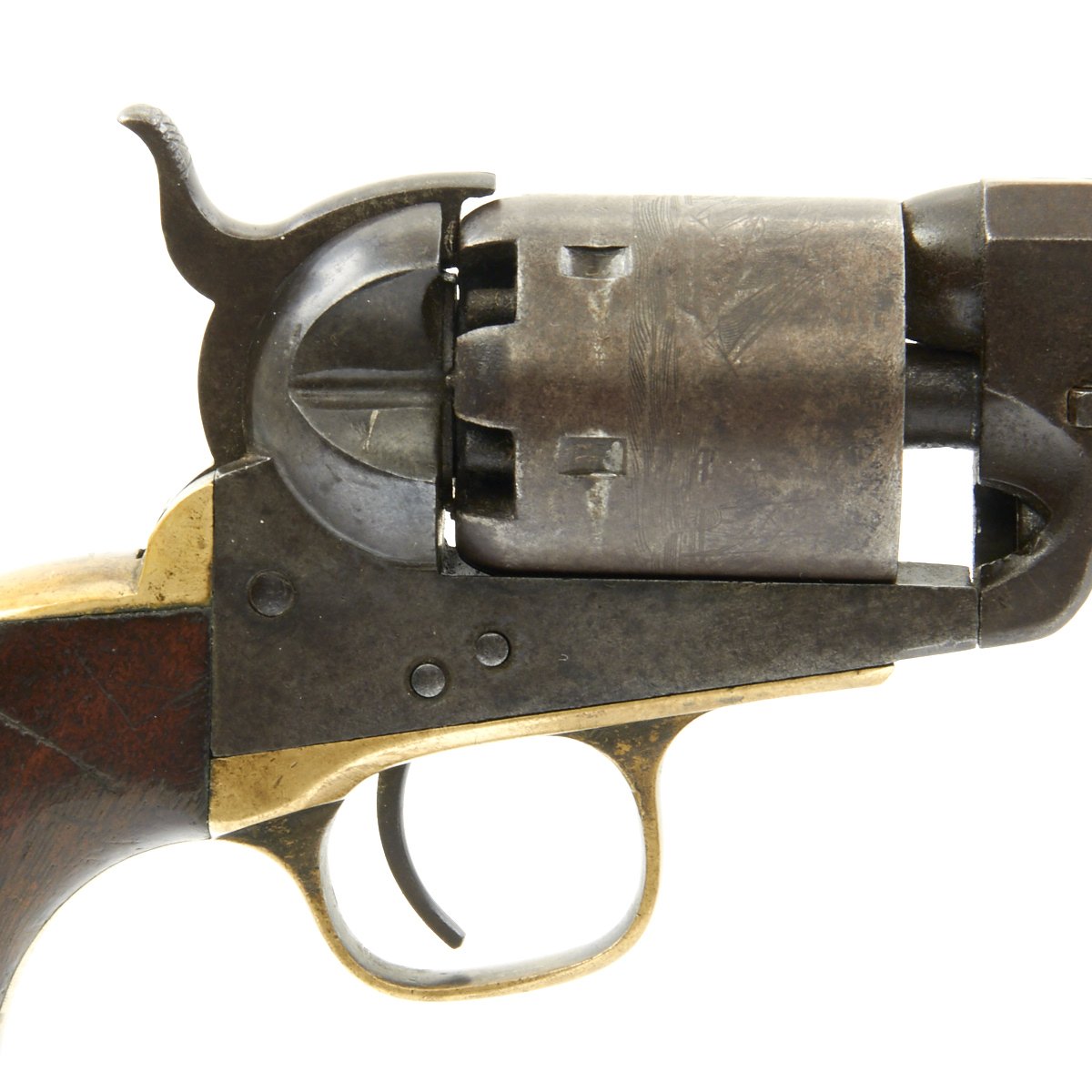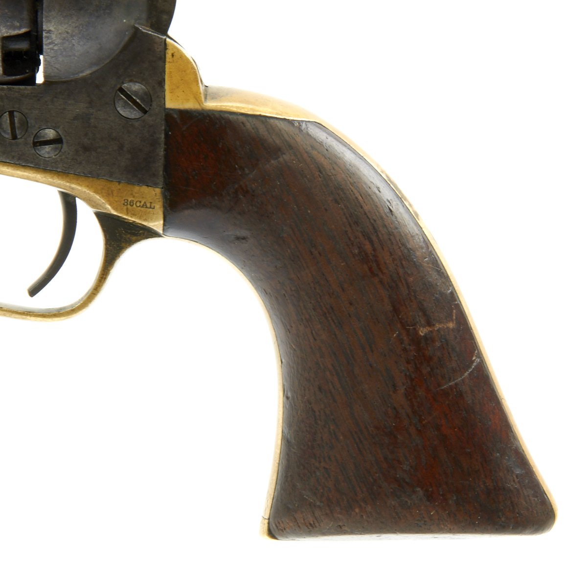 Original Item: Only One Available. This looks like it has come straight out of the attic! 156 years old with very low mileage and a great embossed tooled leather flap holster! The Colt Navy Model 1851 Percussion Revolver in .36 caliber was widely used by both sides in the U.S. Civil War. The Colt Revolving Belt Pistol of Naval Caliber (i.e., .36 cal), later known as the Colt 1851 Navy or Navy Revolver, is a cap and ball revolver that was designed by Samuel Colt between 1847 and 1850. Colt first called this Revolver Ranger model; but the designation Navy quickly took over. It remained in production until 1873, when revolvers using fixed metallic cartridges came into widespread use.