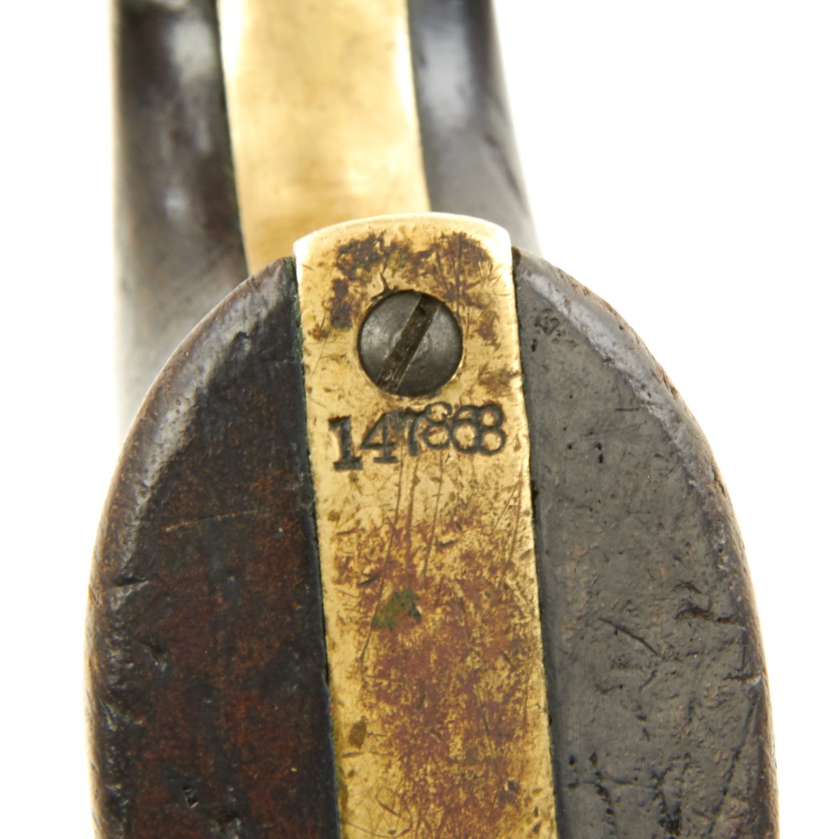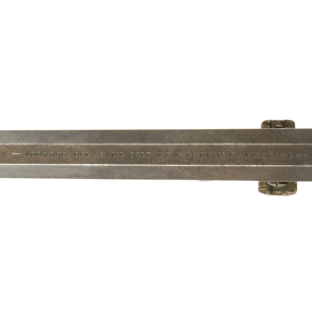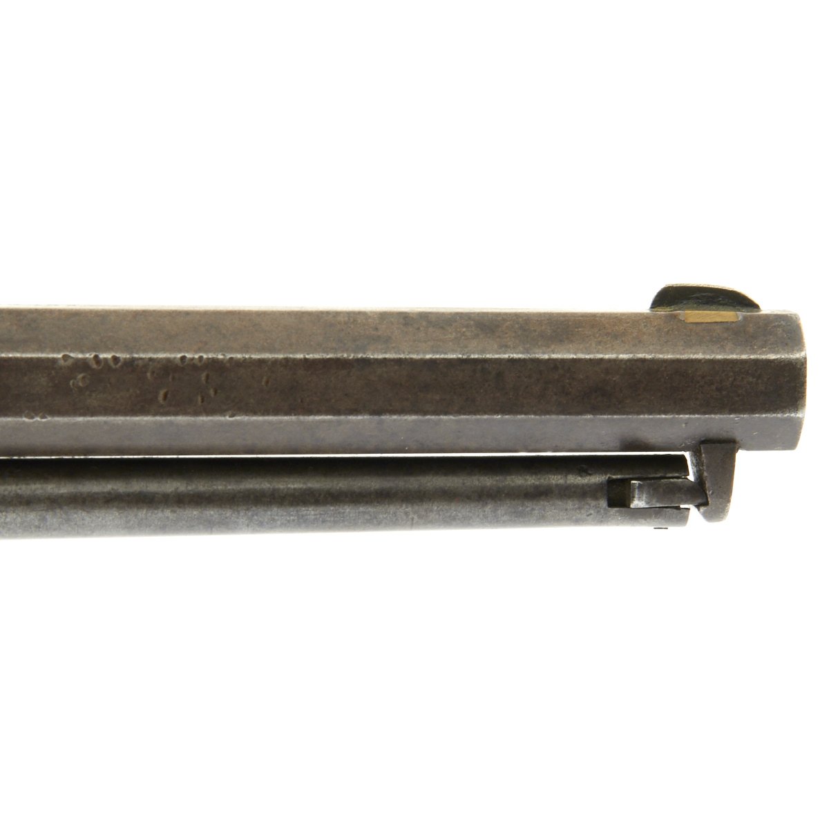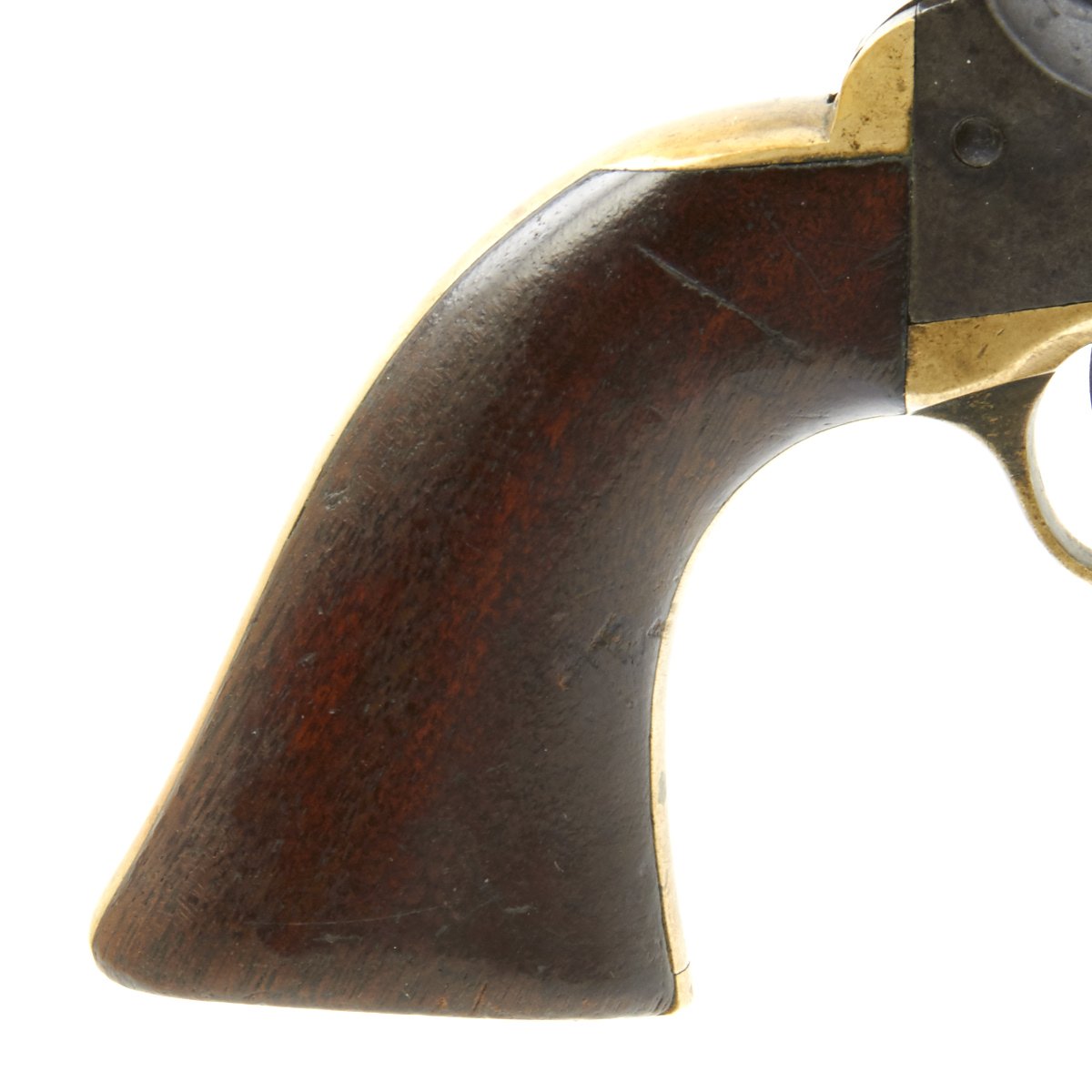 This very nice example is in choice condition, and has matching serial numbers 147868 on all parts including barrel, frame, grip, trigger guard and cylinder (marked 7868)! There is also most of the original "Naval Engagement" engraving on the cylinder! The water, ships, and sails are all there and easily visible. It's very rare to see one in this condition!