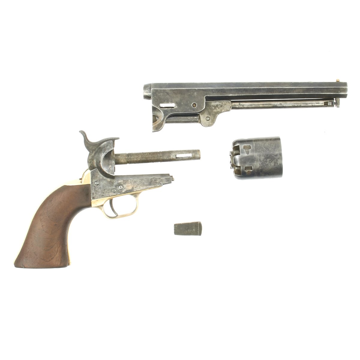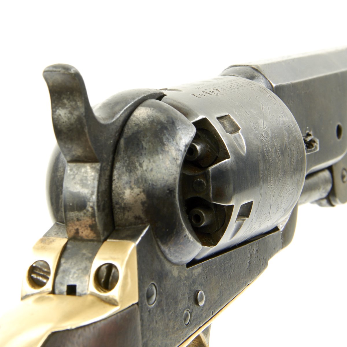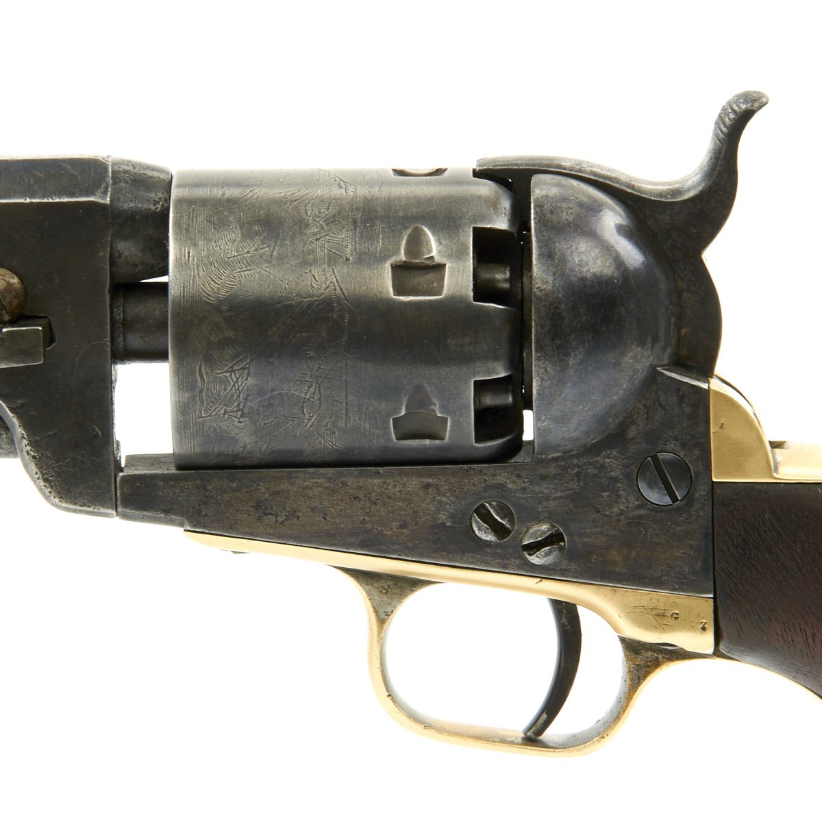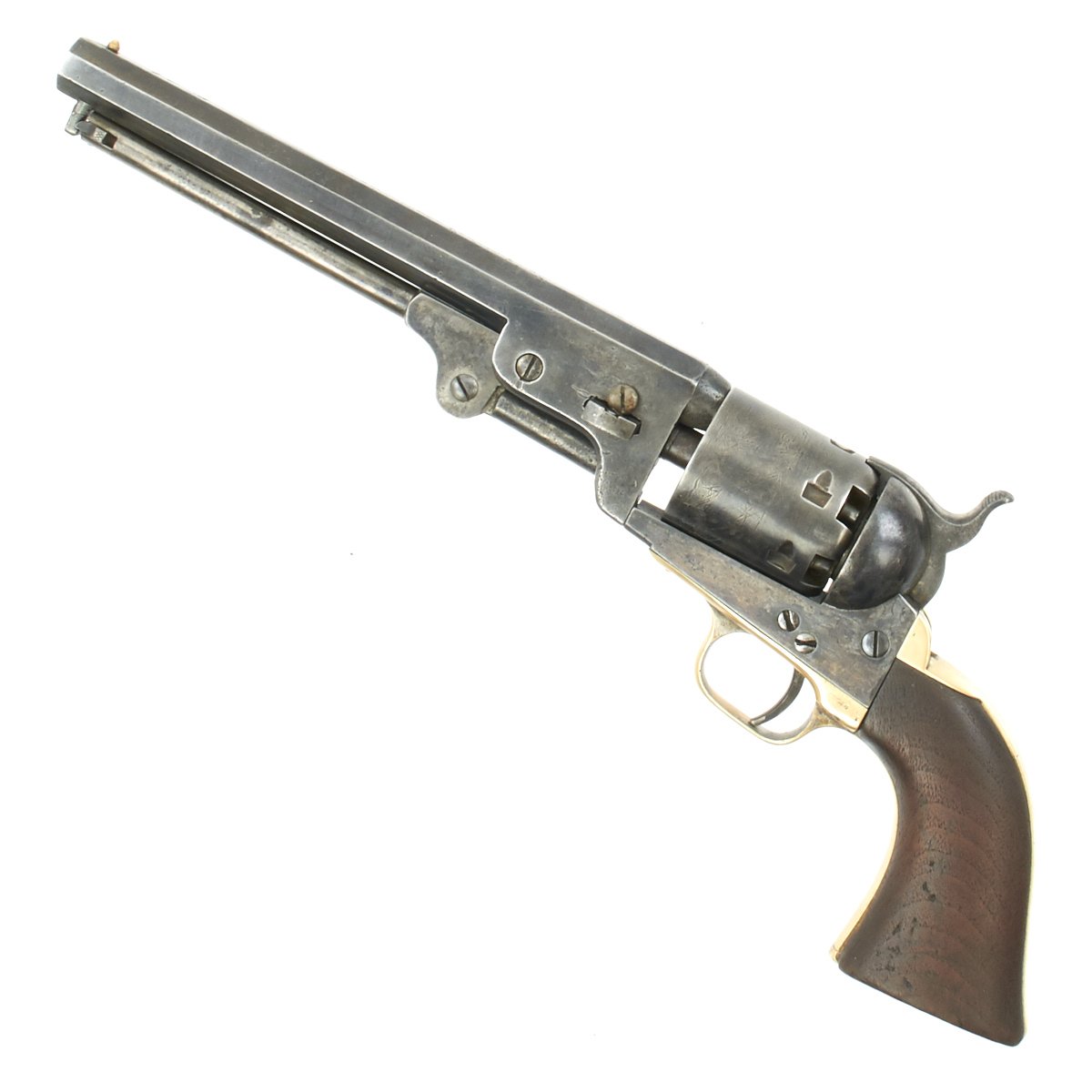 Original Item: Only One Available. The Colt Navy Model 1851 Percussion Revolver in .36 caliber was widely used by both sides in the U.S. Civil War. The Colt Revolving Belt Pistol of Naval Caliber (i.e., .36 cal), later known as the Colt 1851 Navy or Navy Revolver, is a cap and ball revolver that was designed by Samuel Colt between 1847 and 1850. Colt first called this Revolver Ranger model; but the designation Navy quickly took over. It remained in production until 1873, when revolvers using fixed metallic cartridges came into widespread use.