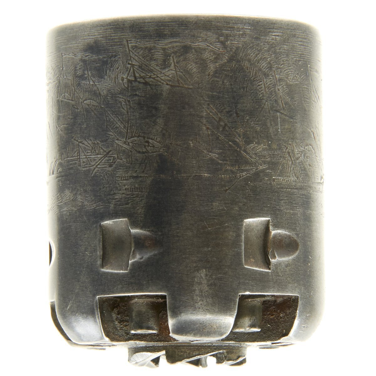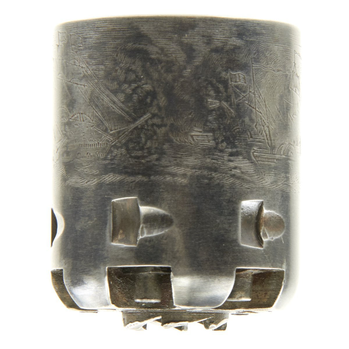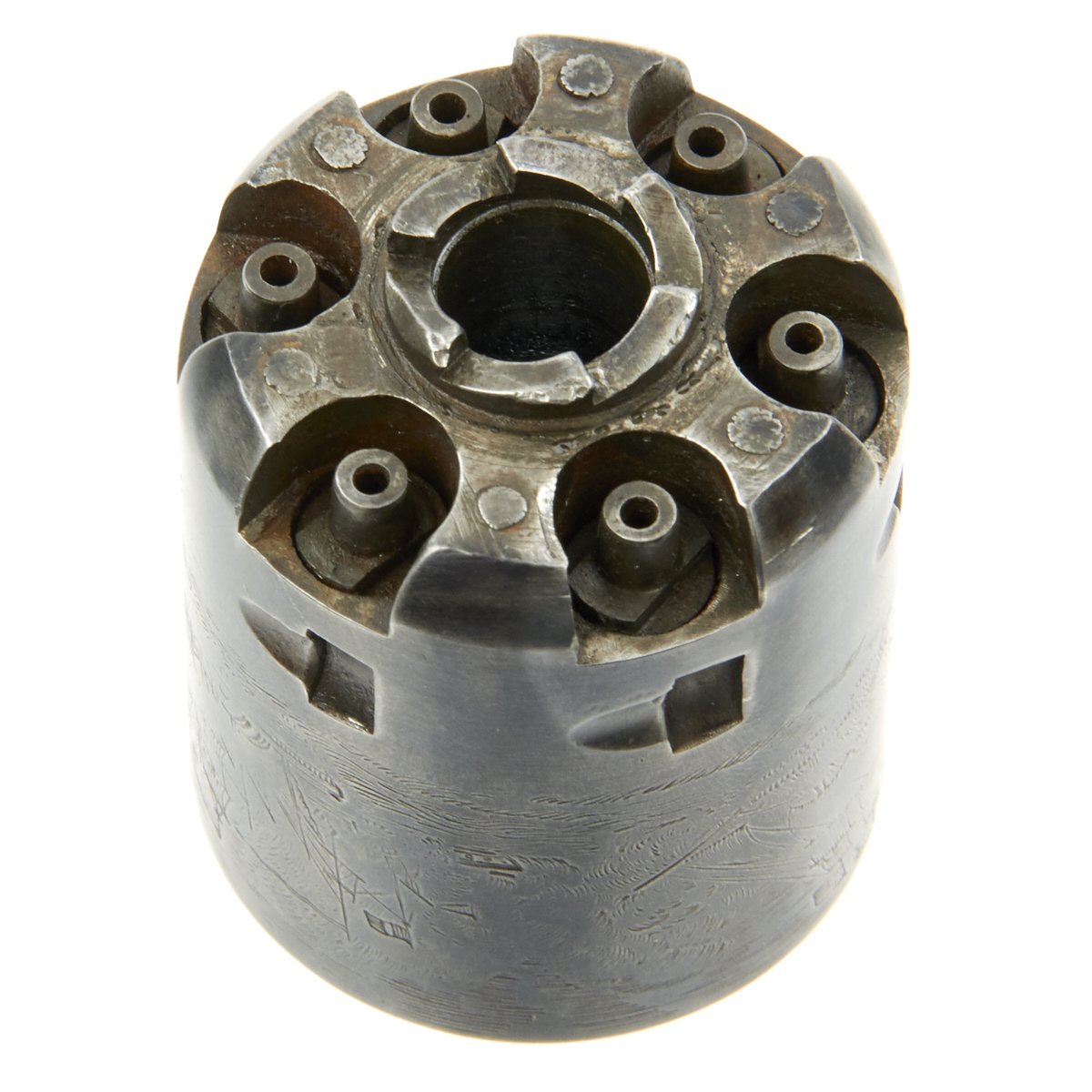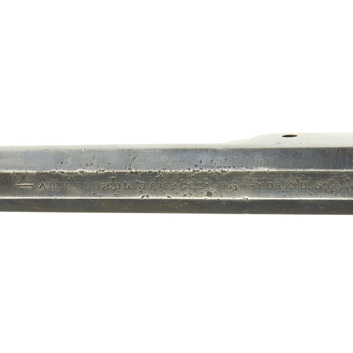 This very nice example is in choice condition, and has matching serial numbers 43561 on all parts including barrel, frame, grip, barrel wedge, trigger guard and cylinder! This indicates production in 1855, according to Colt firearms records. There is also most of the original "Naval Engagement" engraving on the cylinder! The water, ships, and sails are all there and easily visible. It's very rare to see one in this condition!