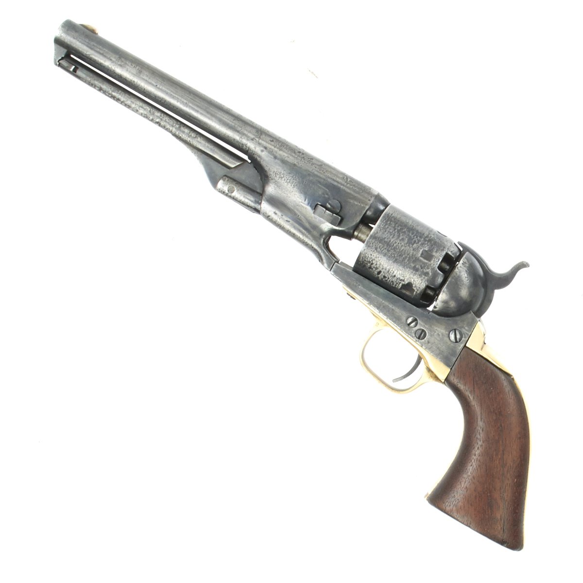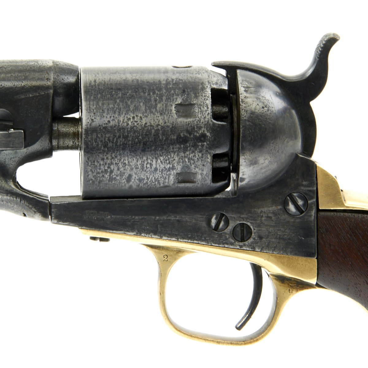 Original item: Only One Available. This is a nice condition example of a Colt Navy percussion revolver, manufactured in 1863. The 1861 Navy Revolvers have always been hard to find, being much overshadowed by the famous Colt 1851 Navy Model. The 1851 had a 36 caliber Octagonal barrel, and many thousands saw service in the Civil War. The 1861 Navy Model was also in 36 caliber but the barrel was modeled after the 1860 Colt Army model, being totally round. Easier and more economical to produce, the 1861 was designed to replace the model 1851, and should have been a great success. However the 1851 model was so well established that production continued long after the Civil War had ended.