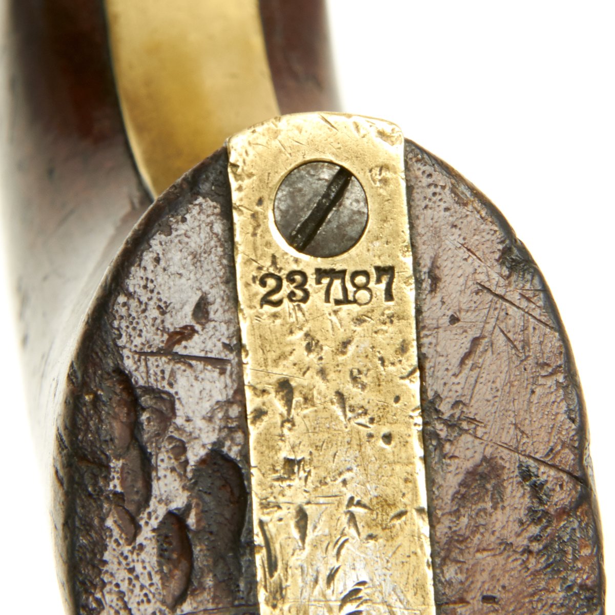 The colt "Pocket Percussion" Model 1849 revolvers in .31cal are essentially scaled down versions of the larger Navy Model 1851 in .36cal, and were developed concurrently. The serial Number 237187 can be found on all major parts and indicates the year of manufacture as 1863, meaning this Colt revolver falls right into the U.S. Civil War. All major components show clear serial number, including the barrel and loading lever, which have a shortened number.
