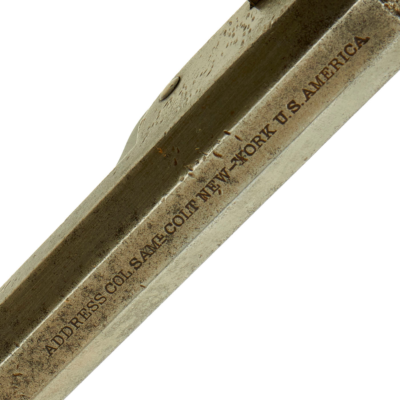 The Colt New York single line address is still crisp and fully legible across the top of the octagonal barrel -