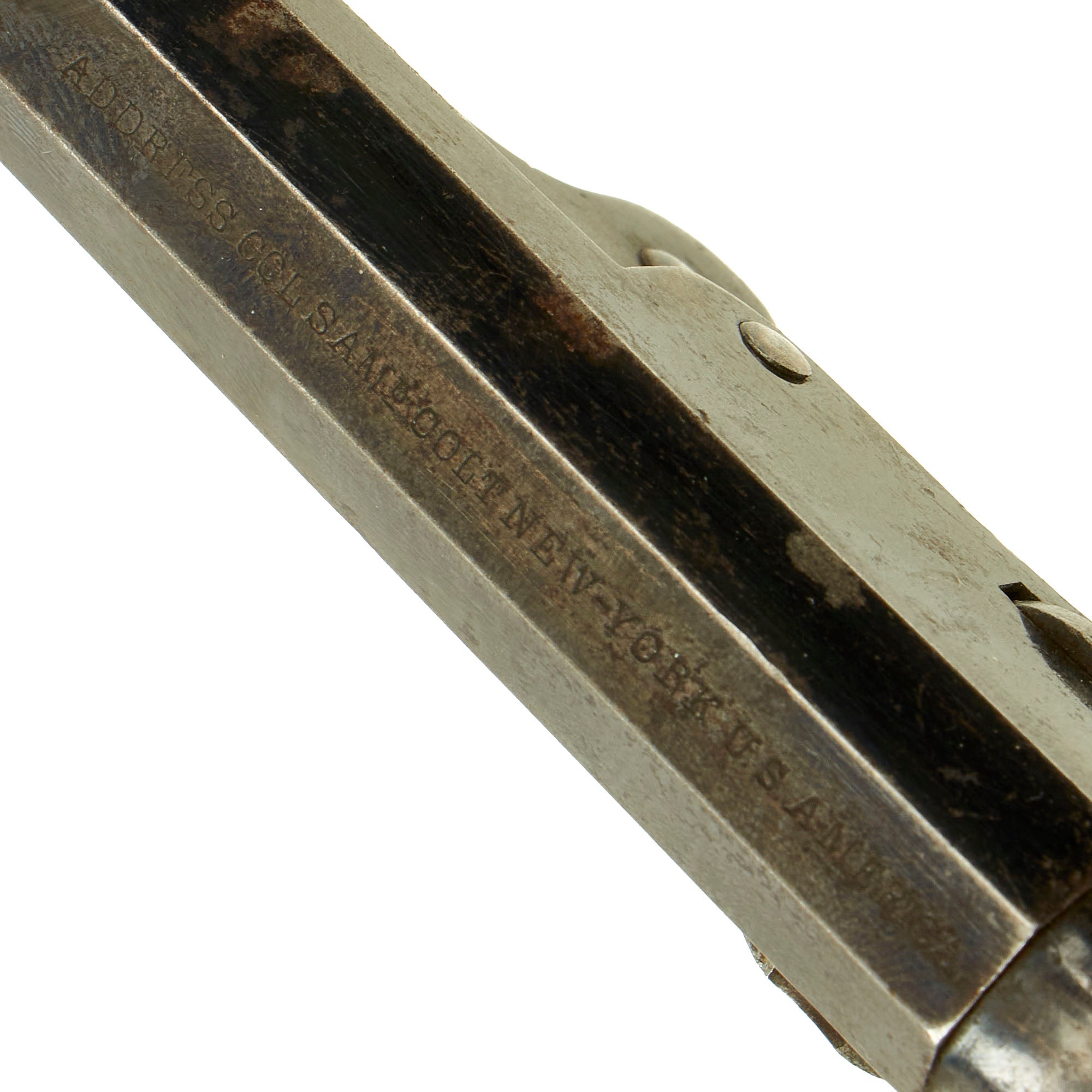 The Colt New York single line address is still crisp and fully legible across the top of the octagonal barrel -