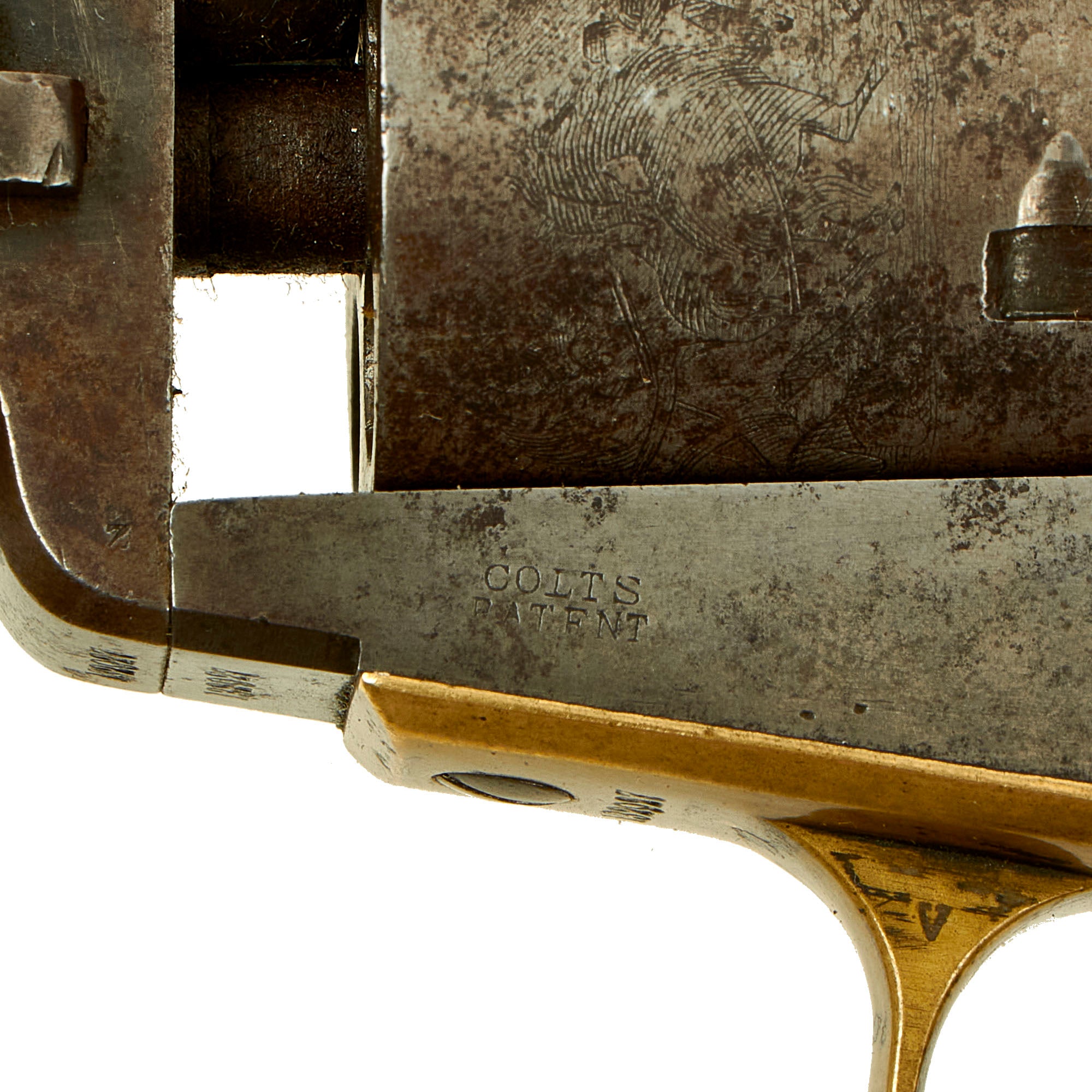 Unlike most we see, there is still about 40% of the original "Stagecoach Robbery" cylinder scene engraving, with some areas still fully visible. We can also still faintly see the COLT'S PATENT marking above the serial number on the cylinder. Often we see these with the scene & markings completely removed from the cylinder, so this is a real treat!