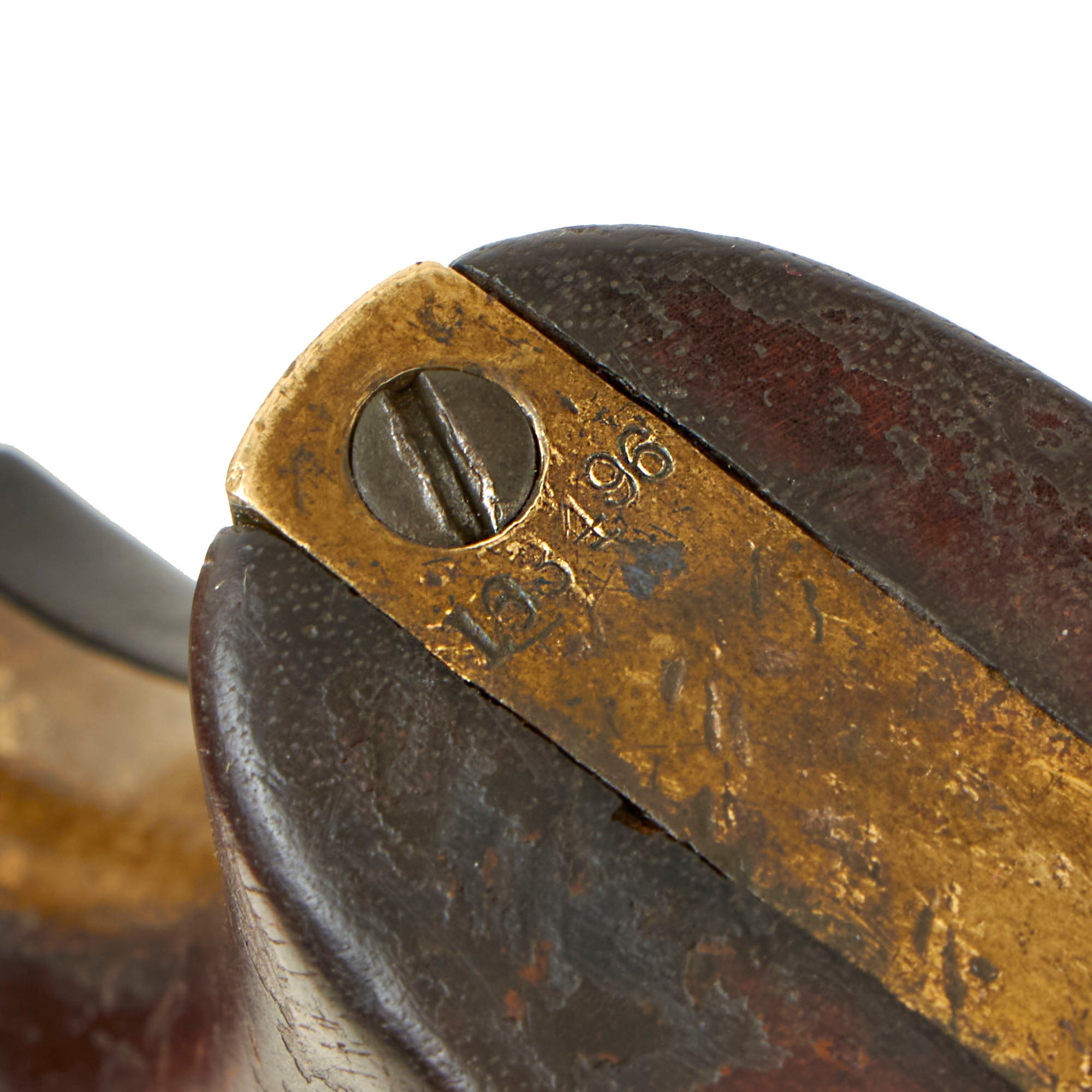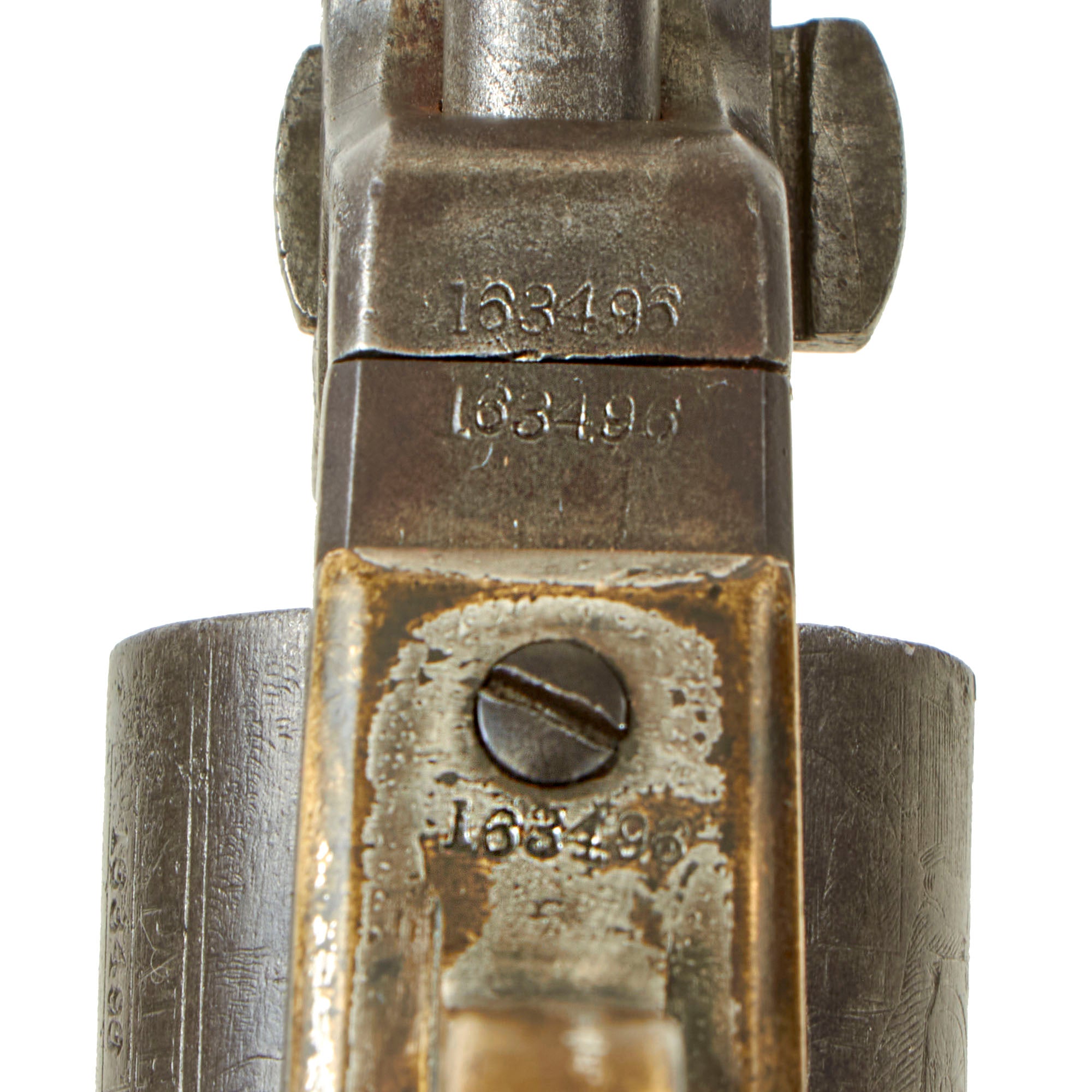 Original Item: Only One Available. The Colt "Pocket Percussion" Model 1849 revolvers in .31cal are essentially scaled down versions of the larger Navy Model 1851 in .36cal, and were developed concurrently. This is a lovely example, made just before the start of the U.S. Civil War. This very nice example features Serial Number 163496 on the barrel, frame, cylinder, trigger guard, and grip frame, with shortened number 63496 on the barrel wedge and 3496 on the loading rammer. Only the arbor pin looks to be an unmarked replacement, which makes this a very nice "MOSTLY MATCHING" example of the M1849 Pocket revolver, and it's a good one!