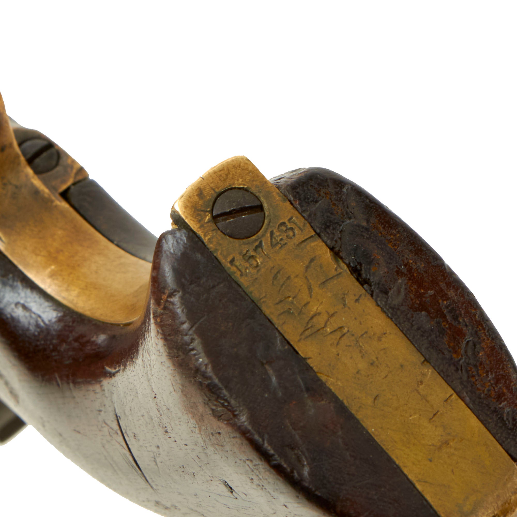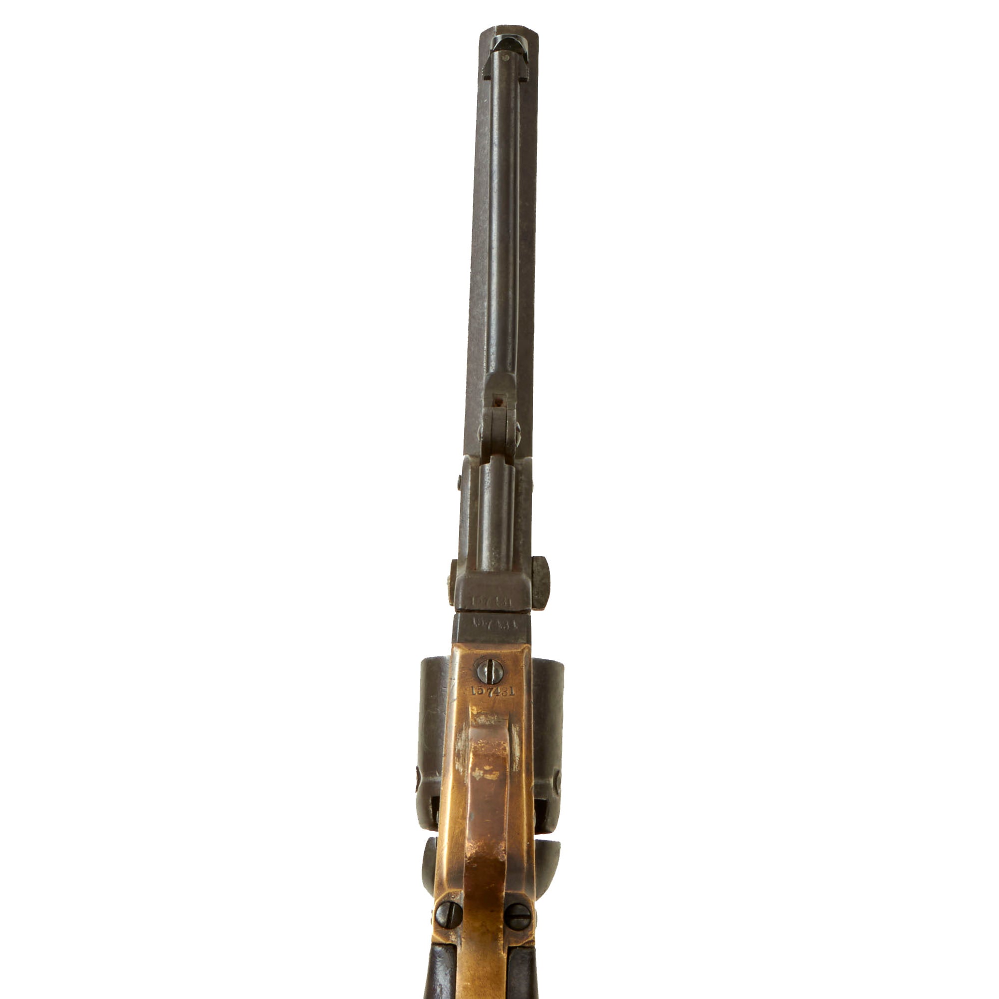 Original Item: Only One Available. The Colt "Pocket Percussion" Model 1849 revolvers in .31cal are essentially scaled down versions of the larger Navy Model 1851 in .36cal, and were developed concurrently. This is a lovely service used example, made just before the start of the U.S. Civil War. This very nice example features Serial Number 157431 on the barrel, frame, cylinder, trigger guard, and grip frame, with shortened number 57431 on the barrel wedge and 7431 on the arbor pin and loading rammer. This makes this a very desirable "ALL MATCHING" example of the M1849 Pocket revolver, without any parts swapped out over the years!