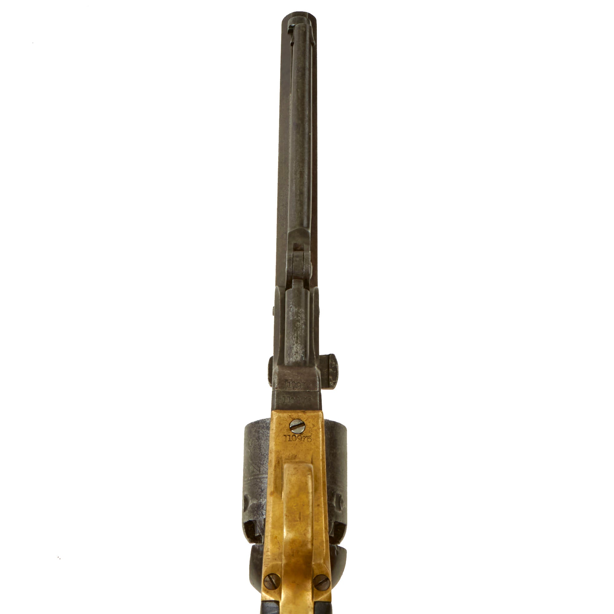 This lovely example features a standard 7 1/2" barrel, and is marked with serial number 110976 on the barrel, cylinder, frame, grip frame, and trigger guard. The cylinder arbor pin and loading rammer are both marked with shortened number 0976, while the barrel wedge is marked with 10976. This makes this a very desirable "ALL MATCHING" example of the M1851 Navy revolver, without any major parts swapped out over the years! Colt records indicate that this revolver was produced in 1861, right at the onset of the Civil War, so it almost certainly saw service during the conflict, possibly on either side.