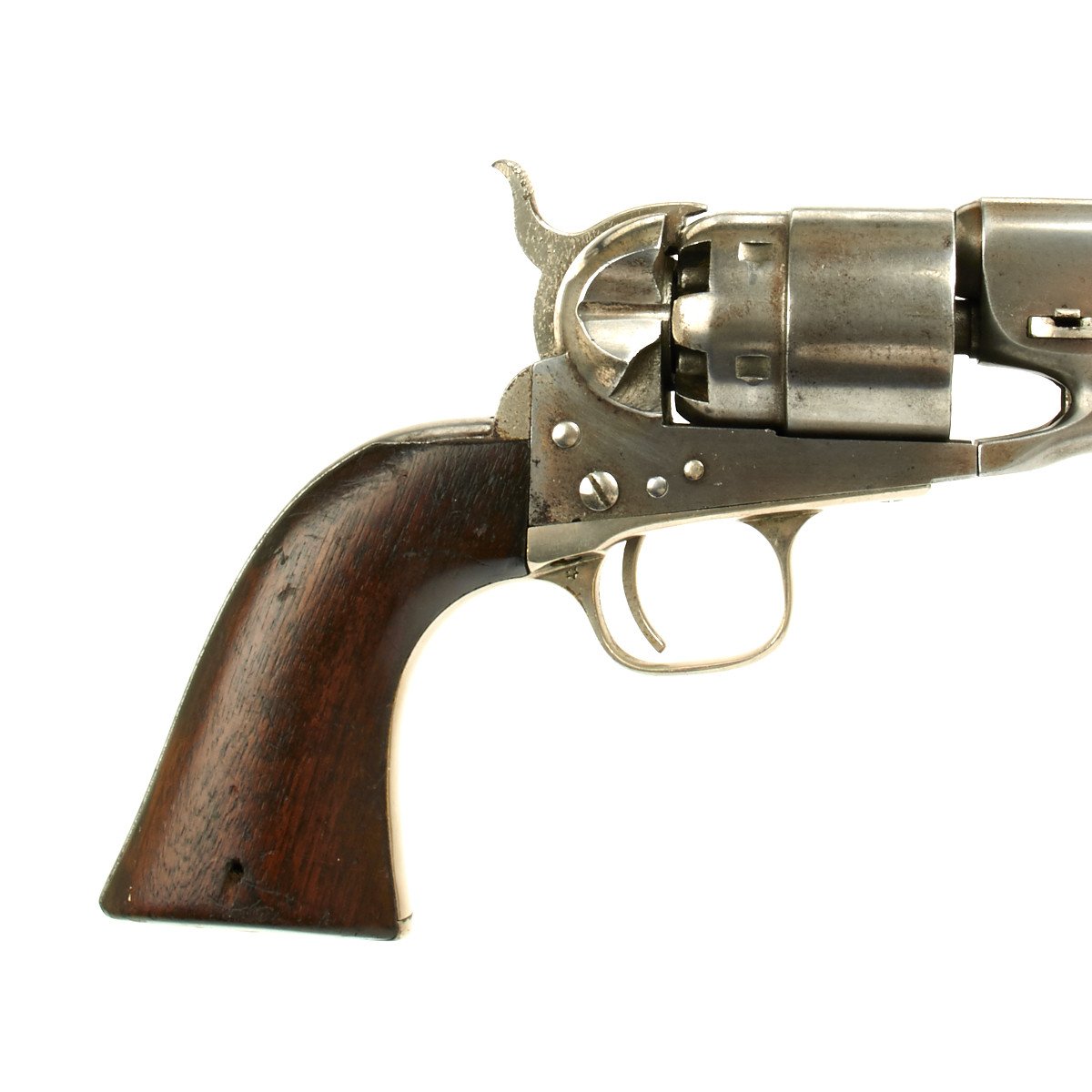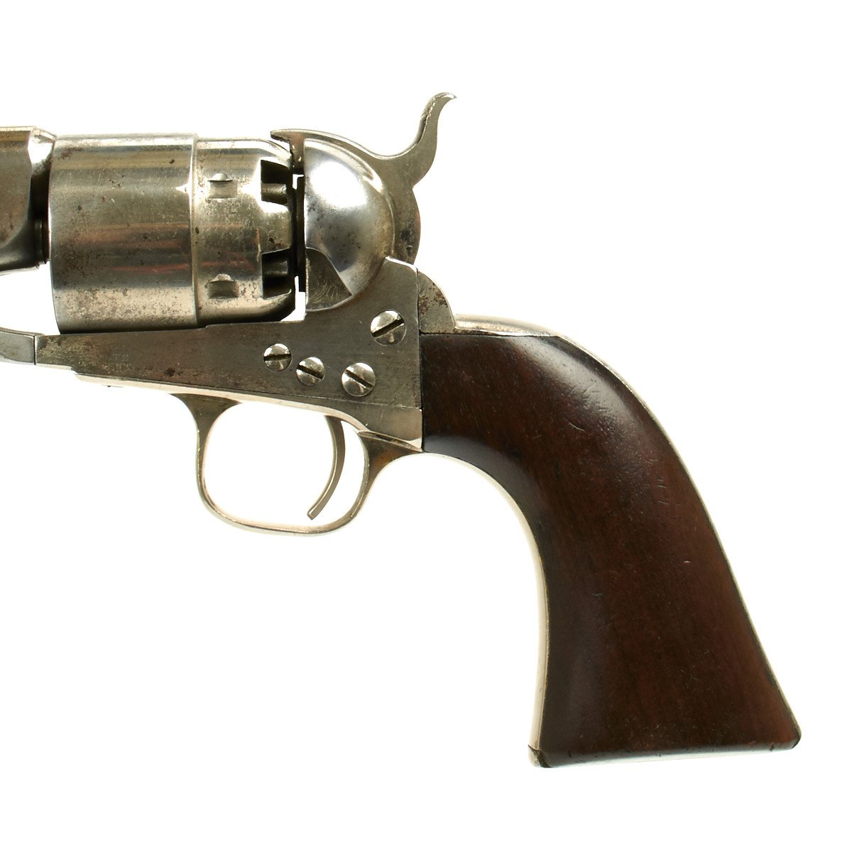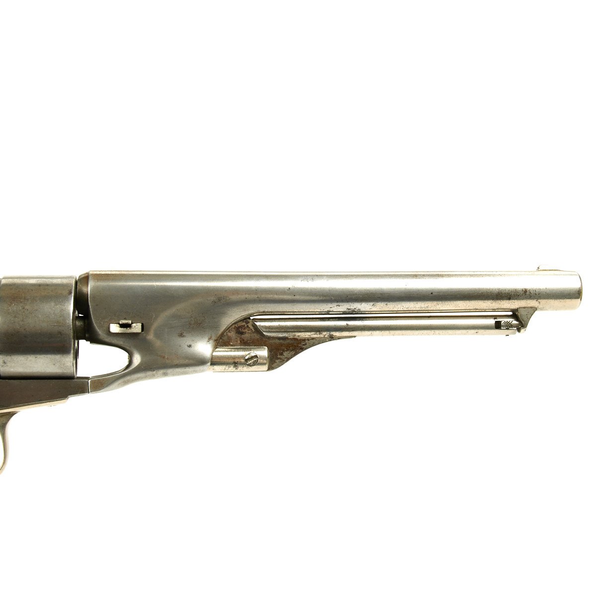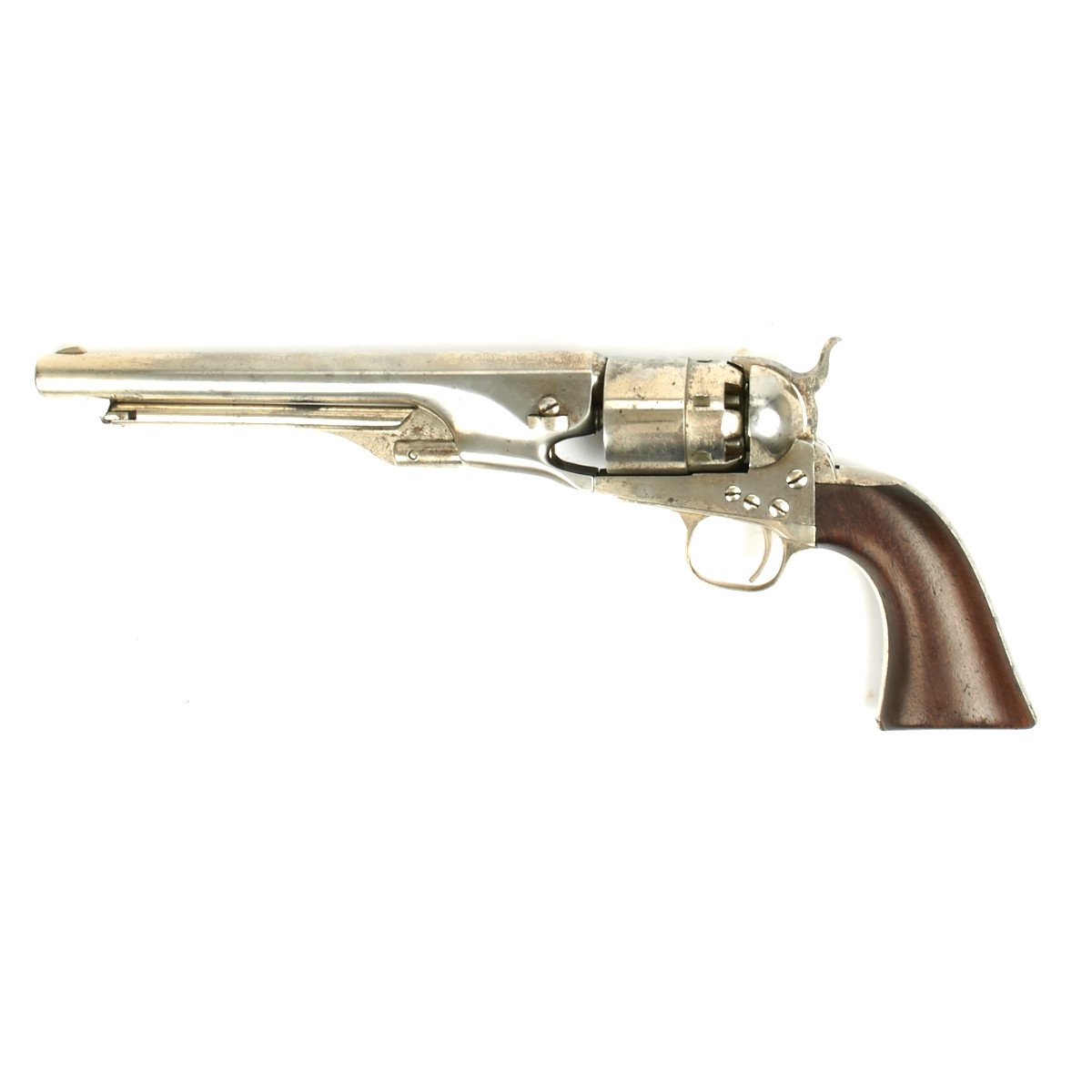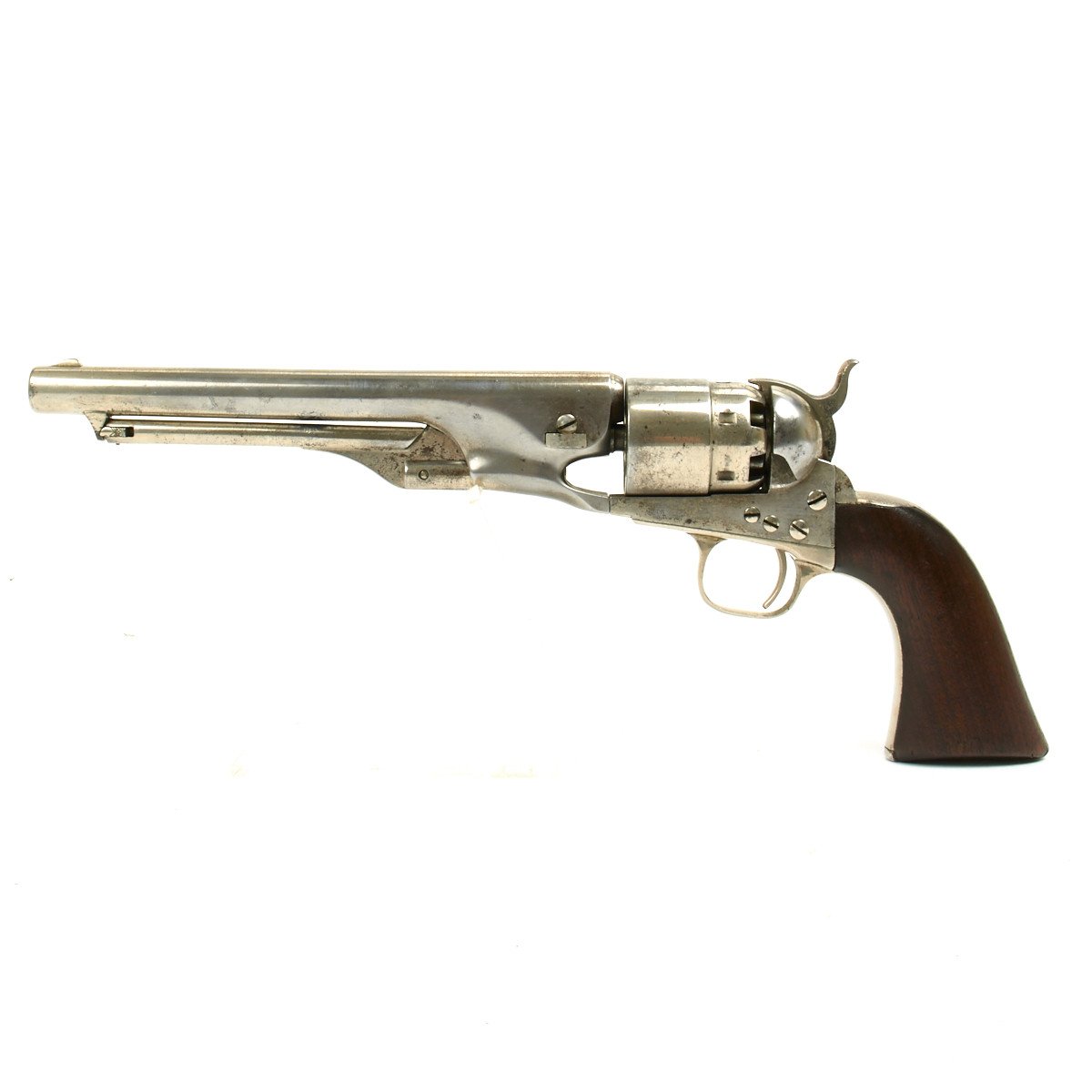 Original Item: Only One Available. This handsome factory nickle plate percussion cap and ball sidearm is an early, original Civil War Model 1860 Army revolver in excellent condition overall. The Colt specimen is one of some 200,000 M1860 Army revolvers made from 1860 through 1873 and was the successor type to the larger Colt Third Model Dragoon horse pistol. The government-issued Colt Army 44 was the major sidearm in use by US troops during the Civil War.