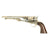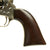 The unfluted cylinder was 'rebated,' meaning that the rear of the cylinder was turned to a smaller diameter than the front. The barrel was rounded and smoothed into the frame, as was the Navy Model. The frame, hammer, and rammer lever were case-hardened, the remainder blued; grips were of one-piece walnut; and the trigger guard and front grip strap were of brass while the backstrap was blued."